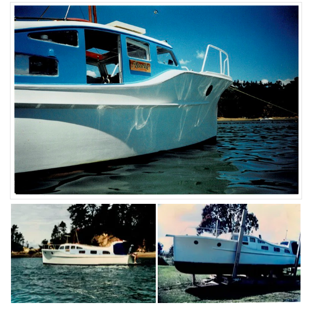 Records show in May 1980 she was sold to a Waipu farmer, Arthur Terry. Colin & Annie Mewburn have owned her since May 2004, having bought her off Arthur Terry, who was in hi 80’s at the time. The Mewburn’s motored her down to Whangaparaoa from One Tree Point Whangarei, where Terry had kept her. Terry told Colin M the Ford had 1000 hours on it when he got her in 1980. Home these days is the Wade River. (photos ex Colin Mewburn, Rod Steadman & Ken Ricketts)
