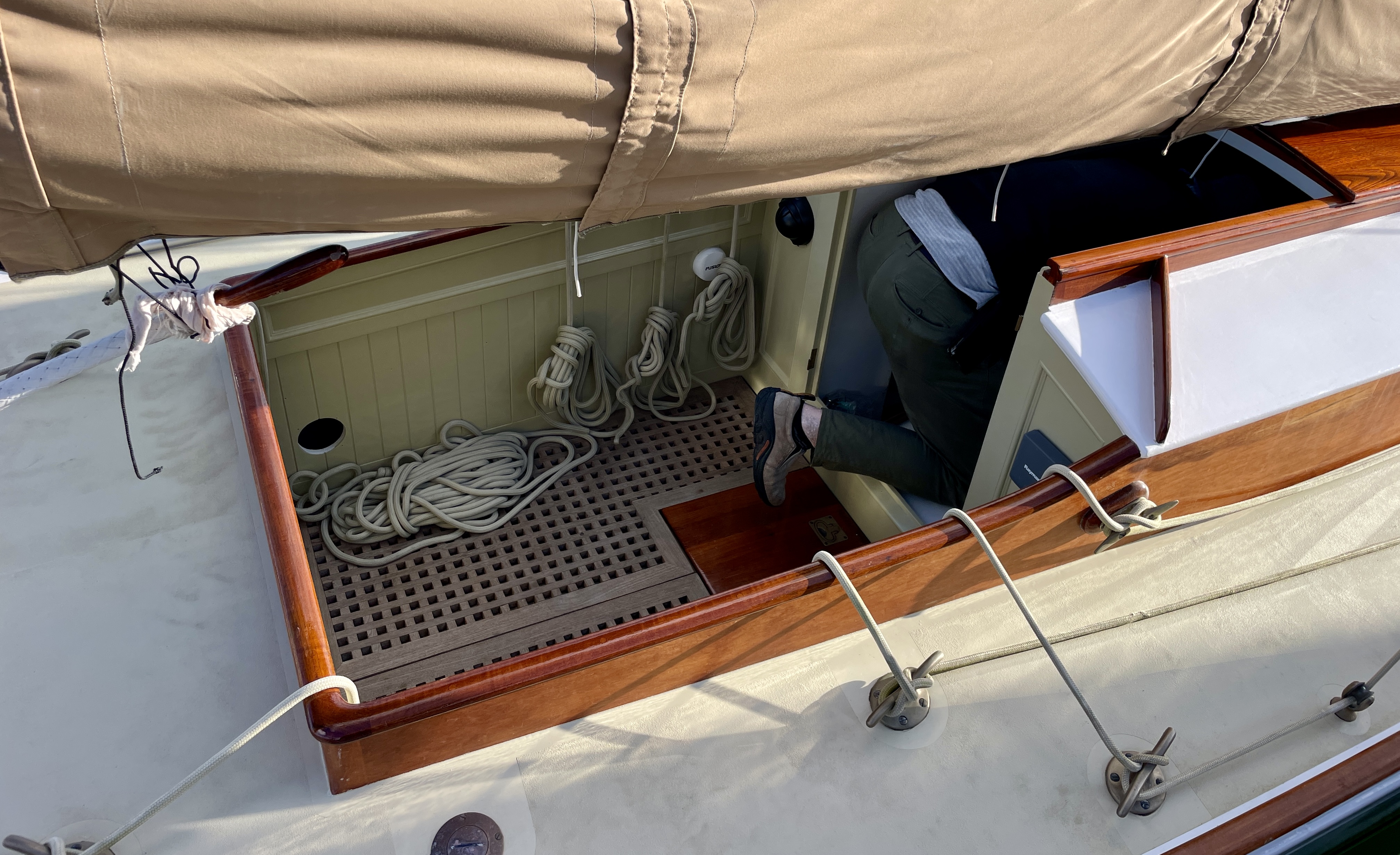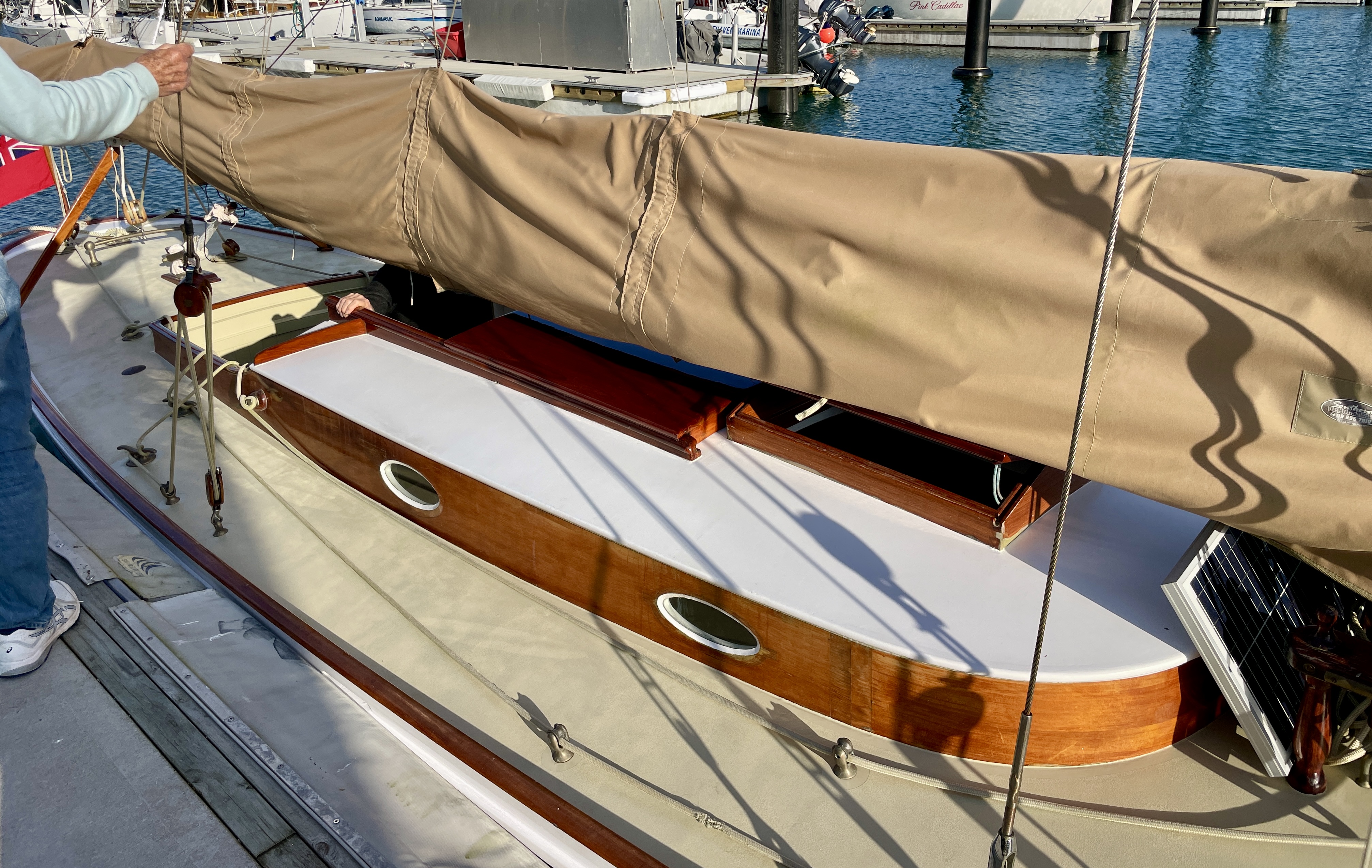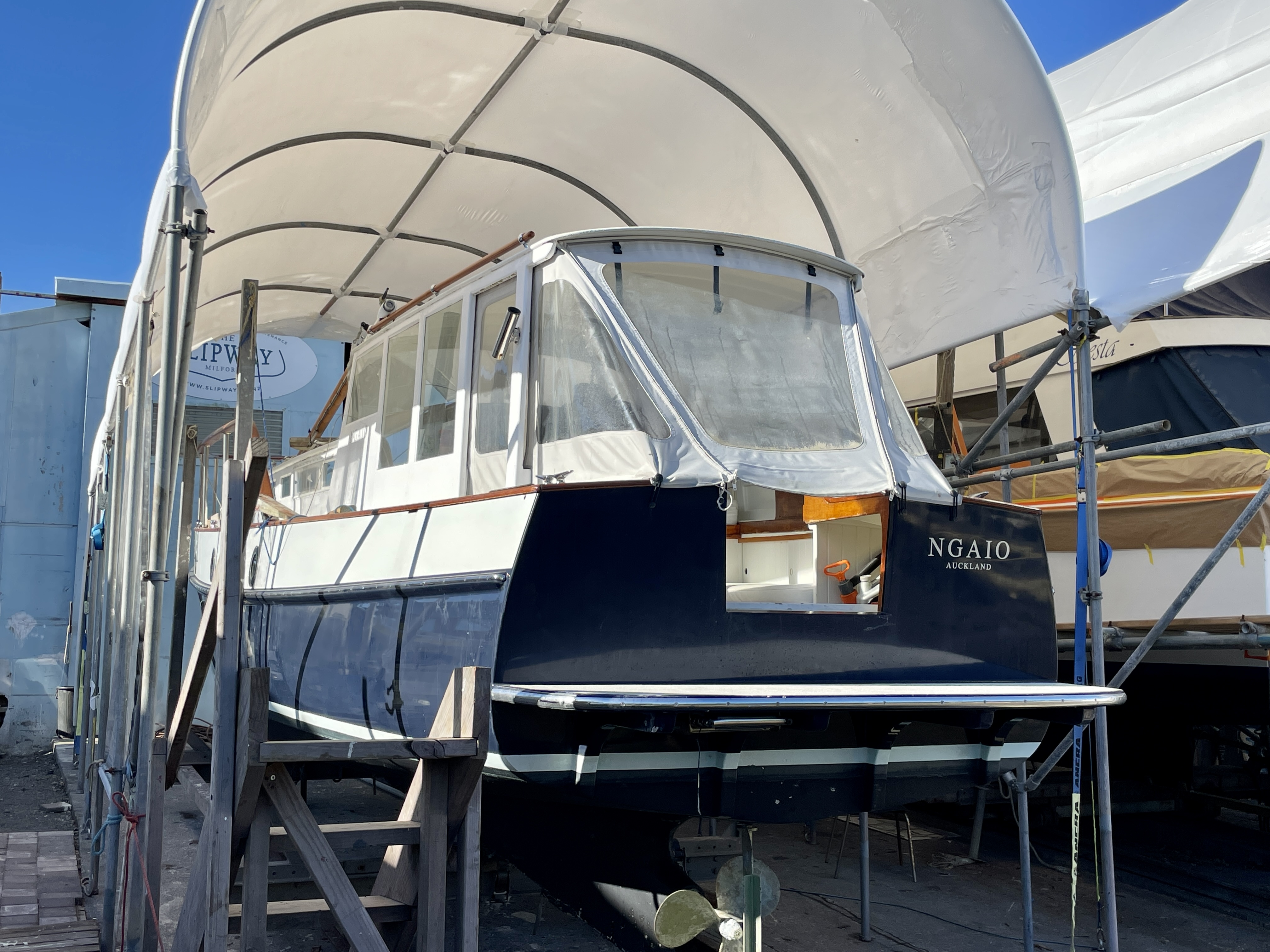 Over recent years Jan has undertaken what we call a rolling restoration – and the centenarian has never looked better. BUT – there’s my better and Jans better, so currently NGAIO is undergoing a major refit to return her helm / cockpit area closer to as-built allowing for some creature (height) comforts.