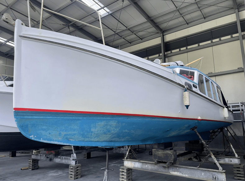 Artisan classic boatbuilder Paul Tingey started on the project this week and no time was wasted in removing her existing ’structure’. Given the presentation of the existing structure, photos below, most of us would have been very happy as is, but not Jan and we admire her for commissioning the work and look forward to the re-launch.