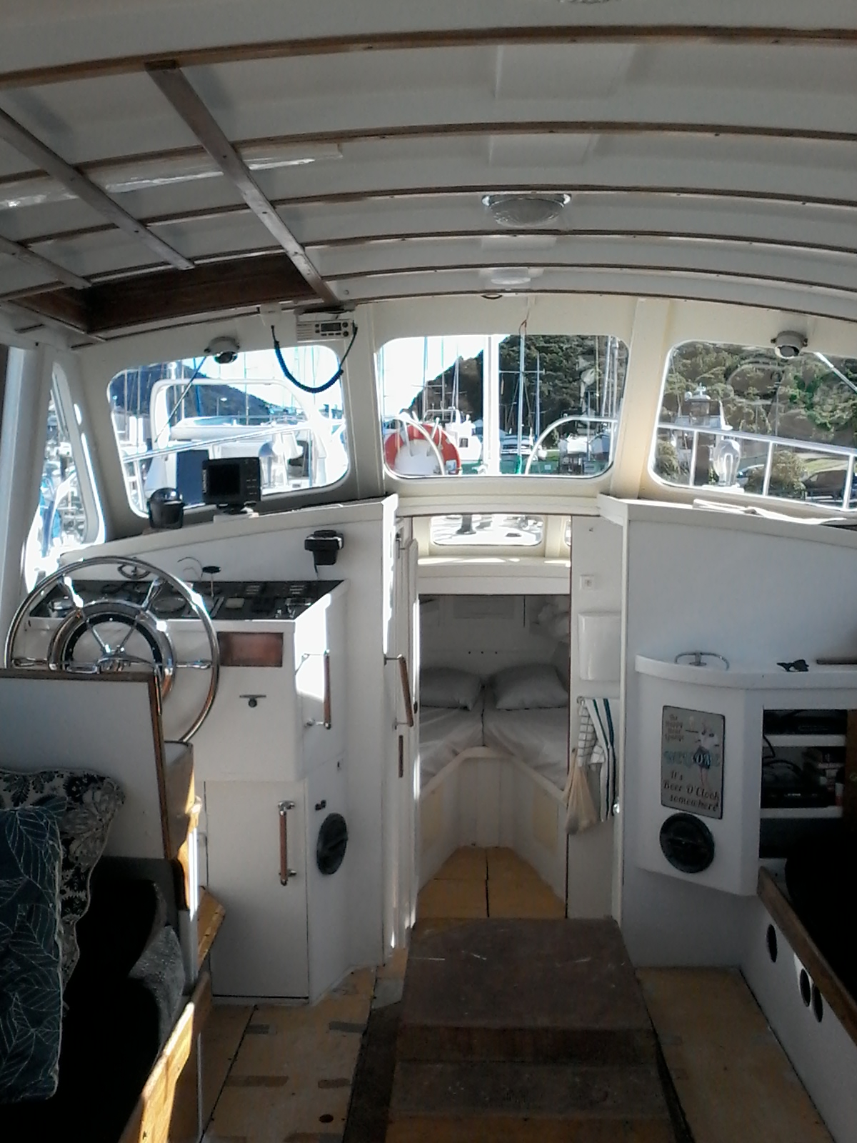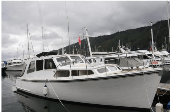 The only other pleasure craft was a Leyland Cub installed in the 30 foot SAGA, by owner/builder, Kings College master, Mr Val Maxwell.