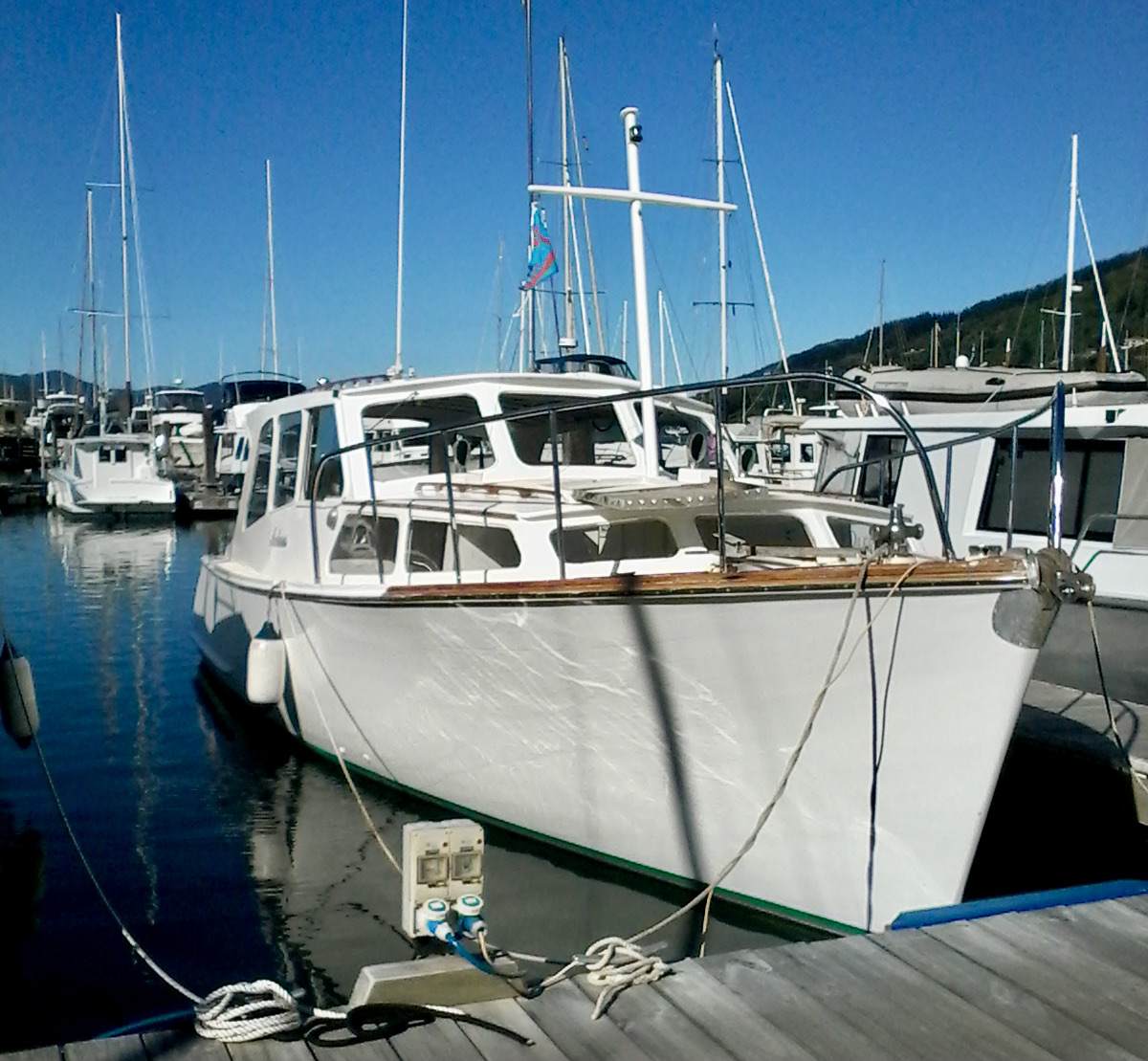 The only boat with these engines, is the first 40 ft Vindex to be built, designed by Jim Young, & built by Orams, of 2 skins of Kauri, in Whangarei, in 1972.