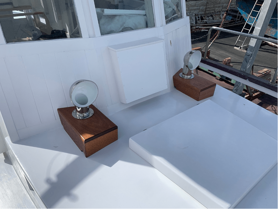 To celebrate I made some bling for her. New nav light and dorade boxes.