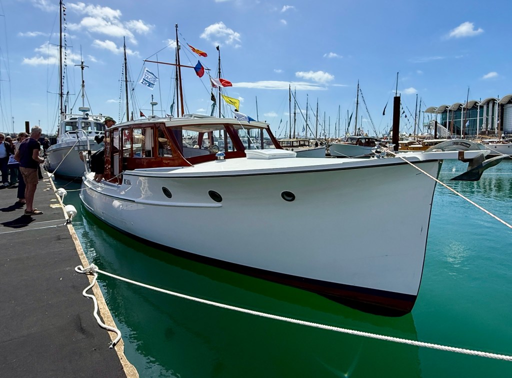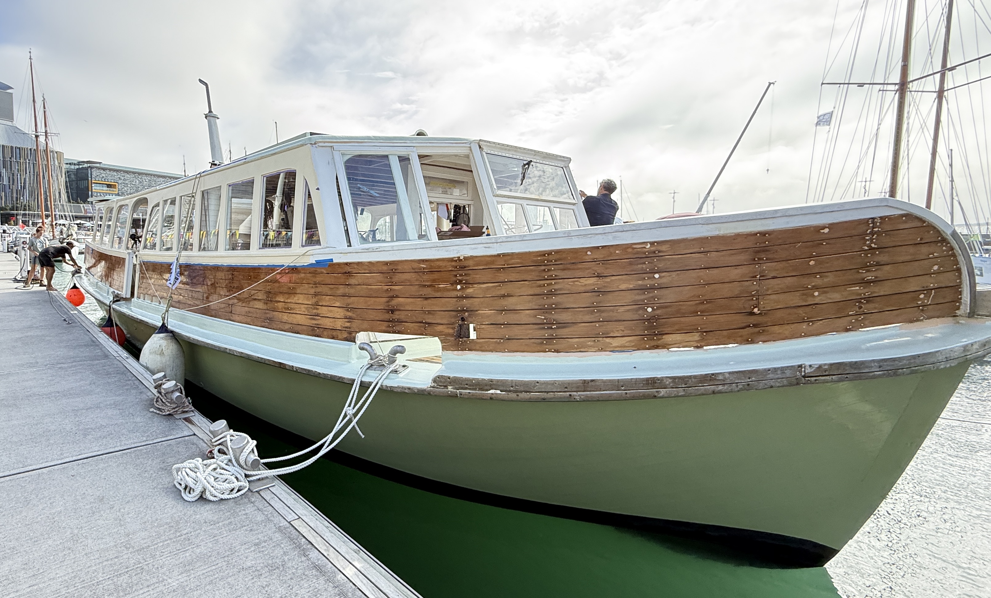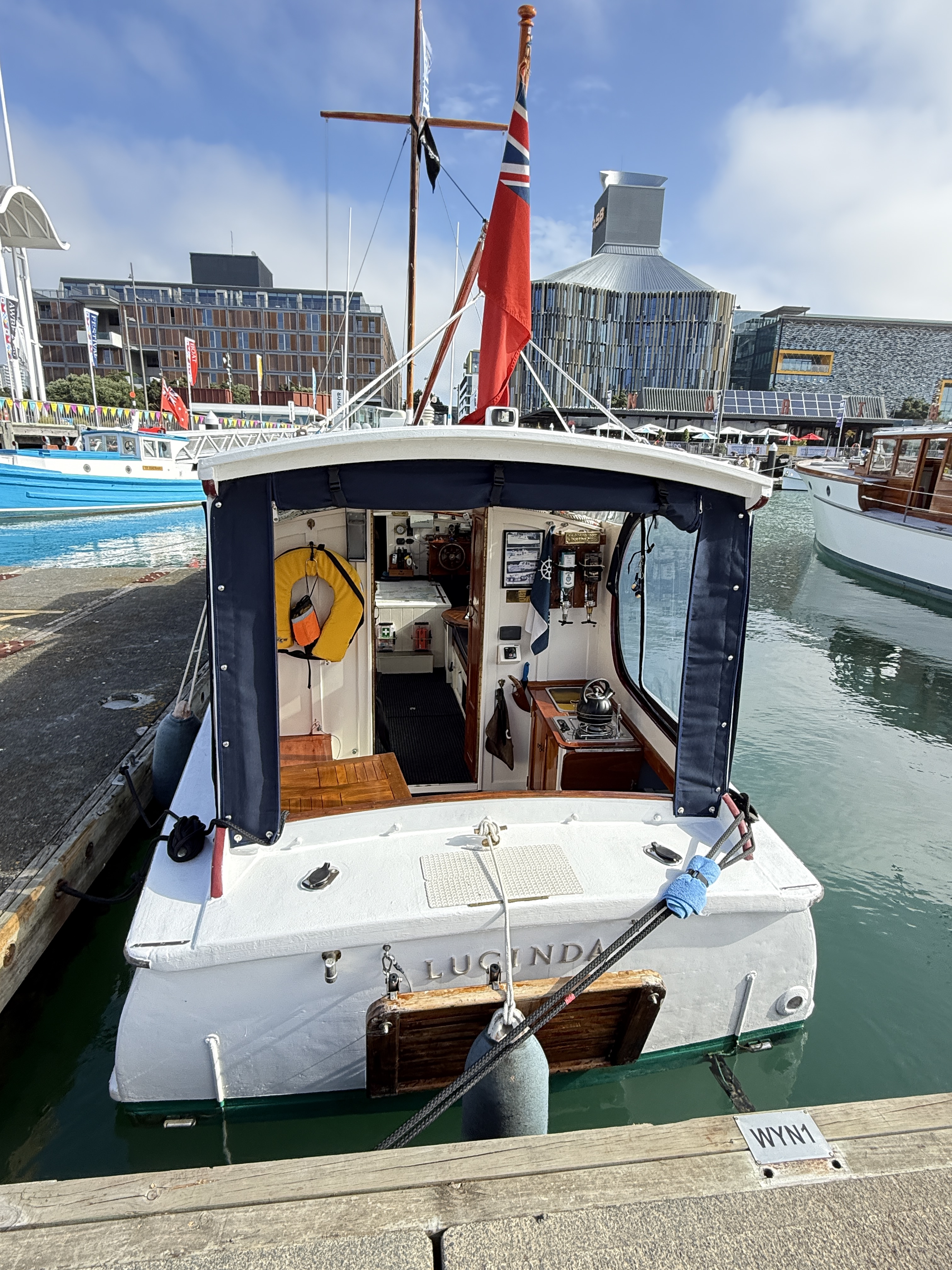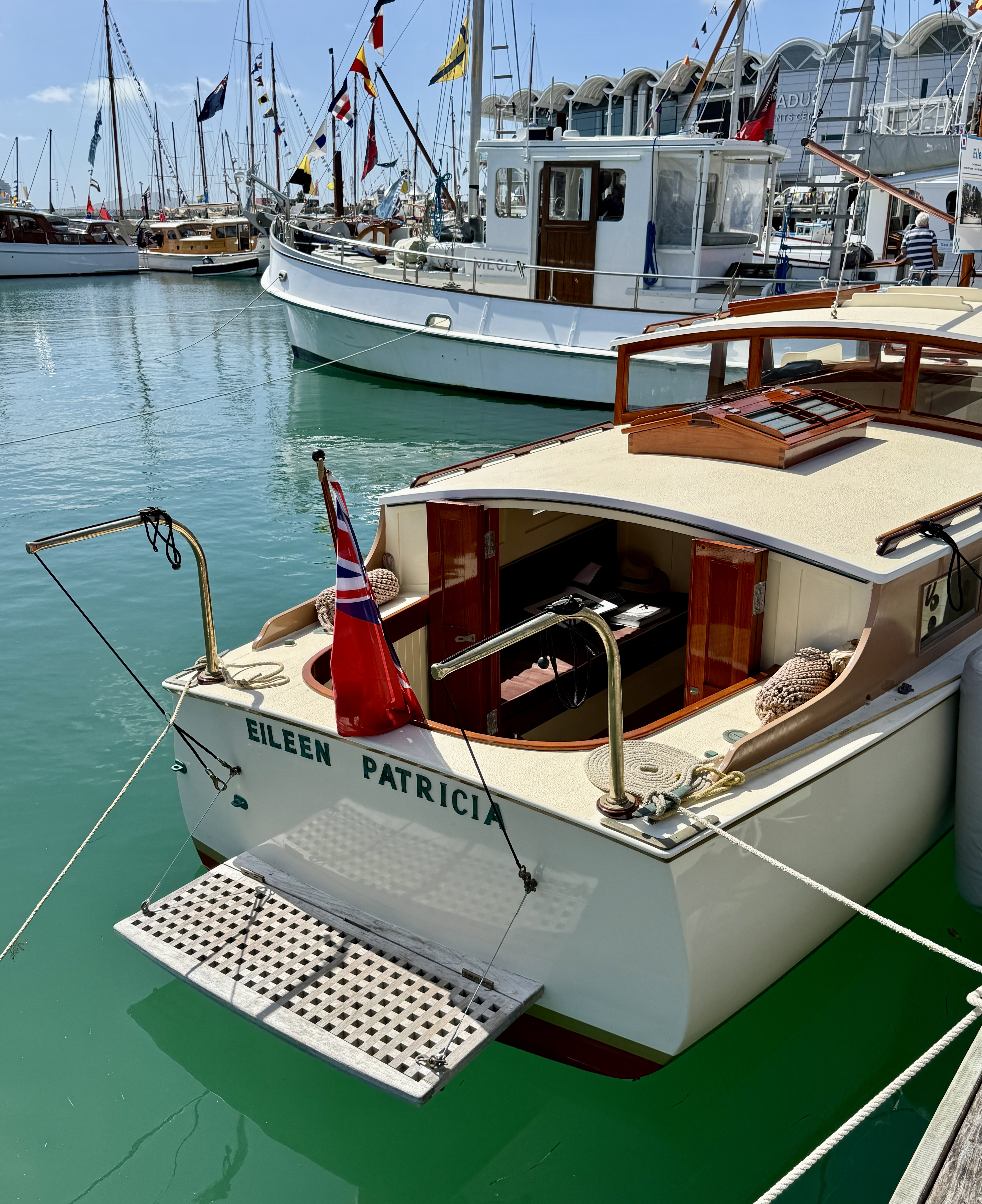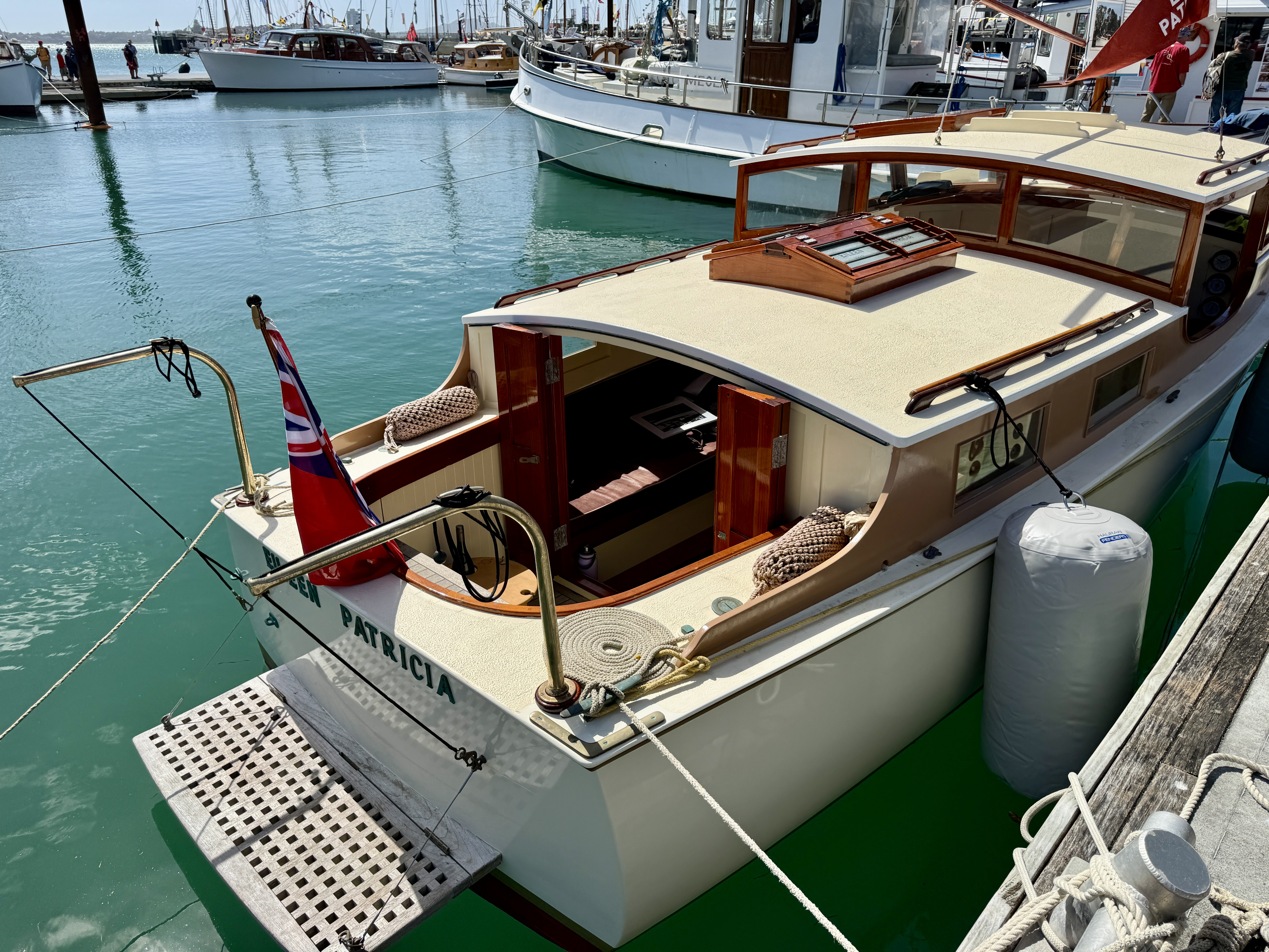 The 1938 Colin Wild designed and built motor launch. Over the last five years she’s been undergoing a rolling restoration, and every time I see her she looks better than the last.
