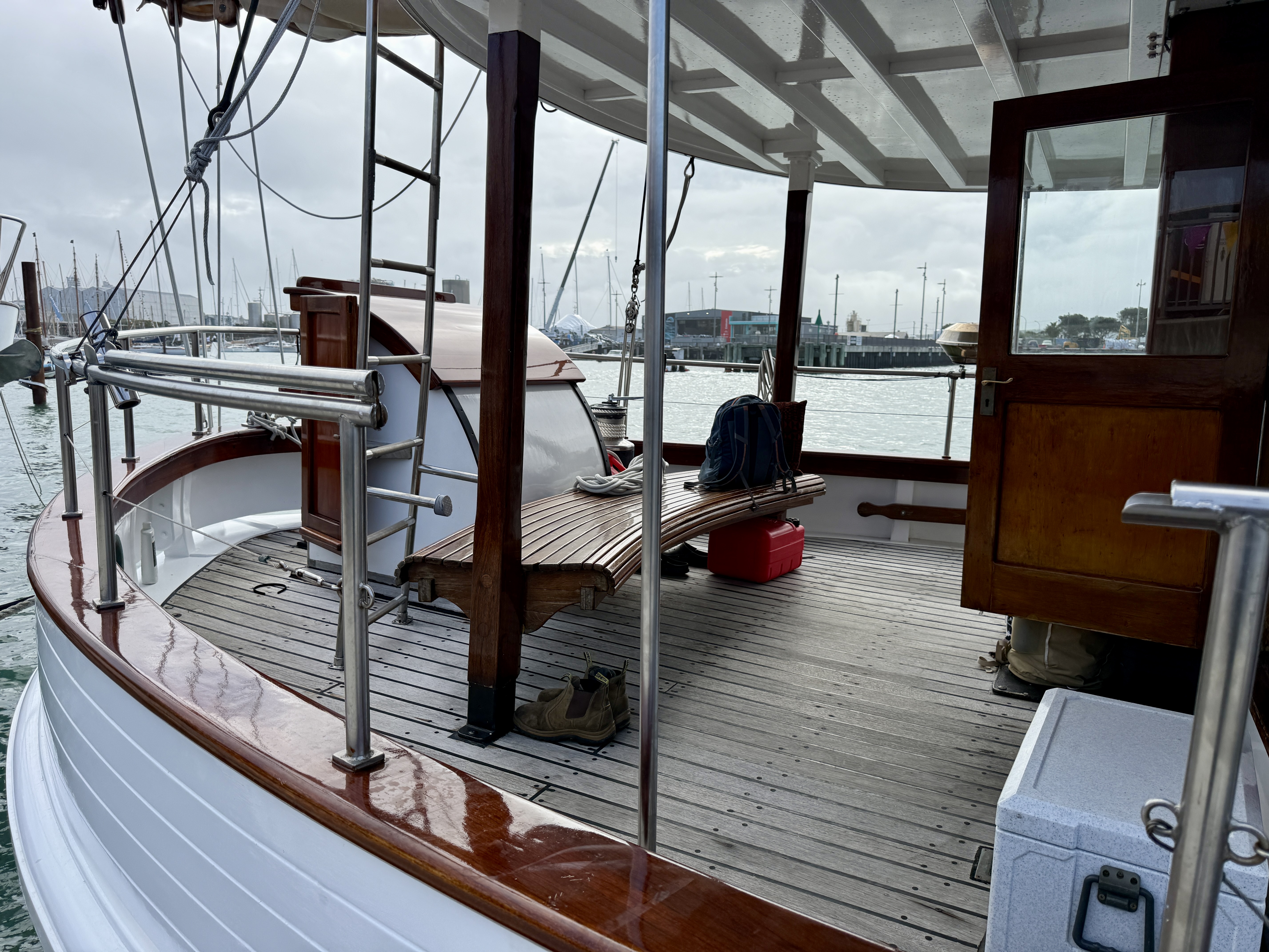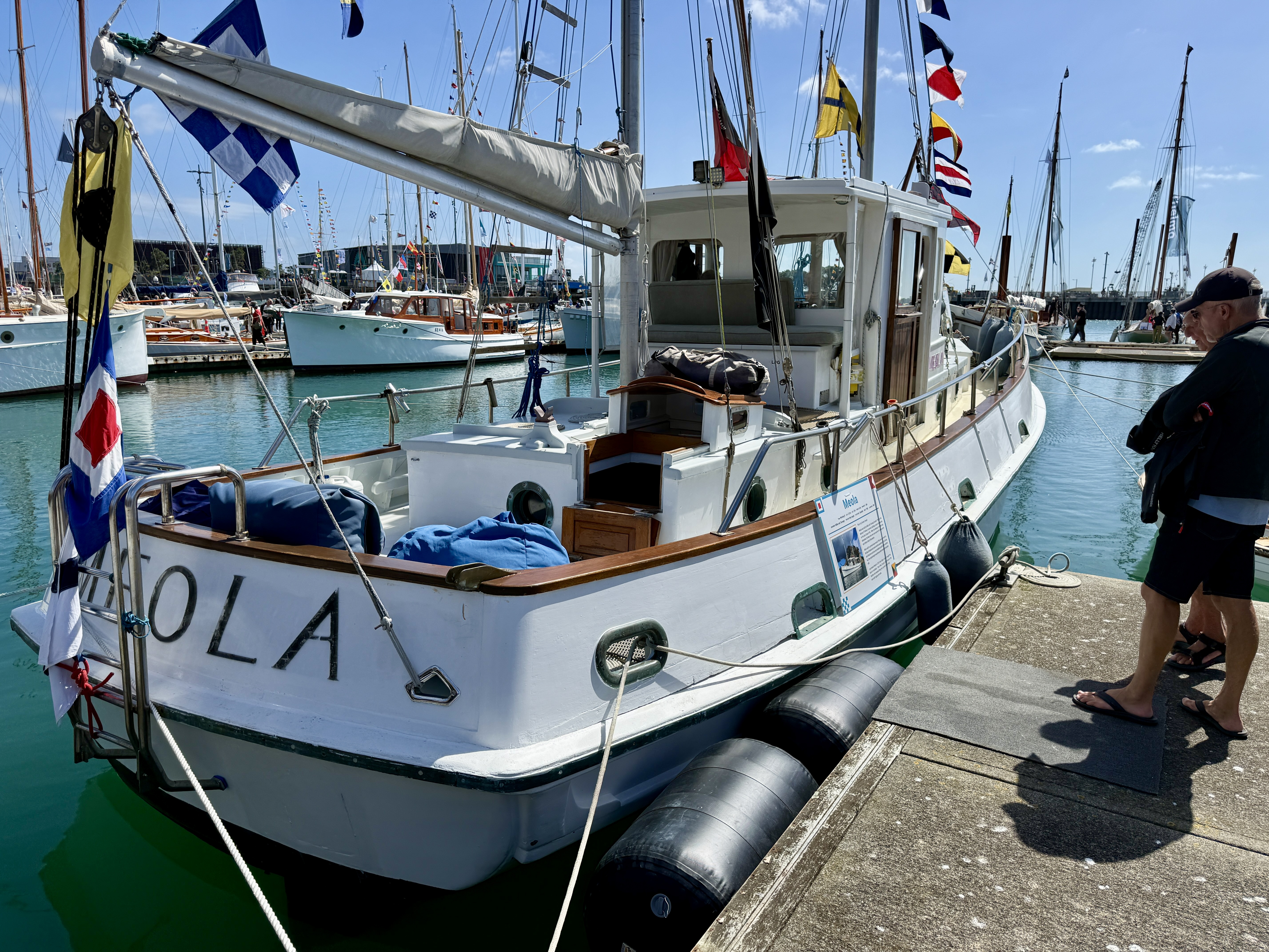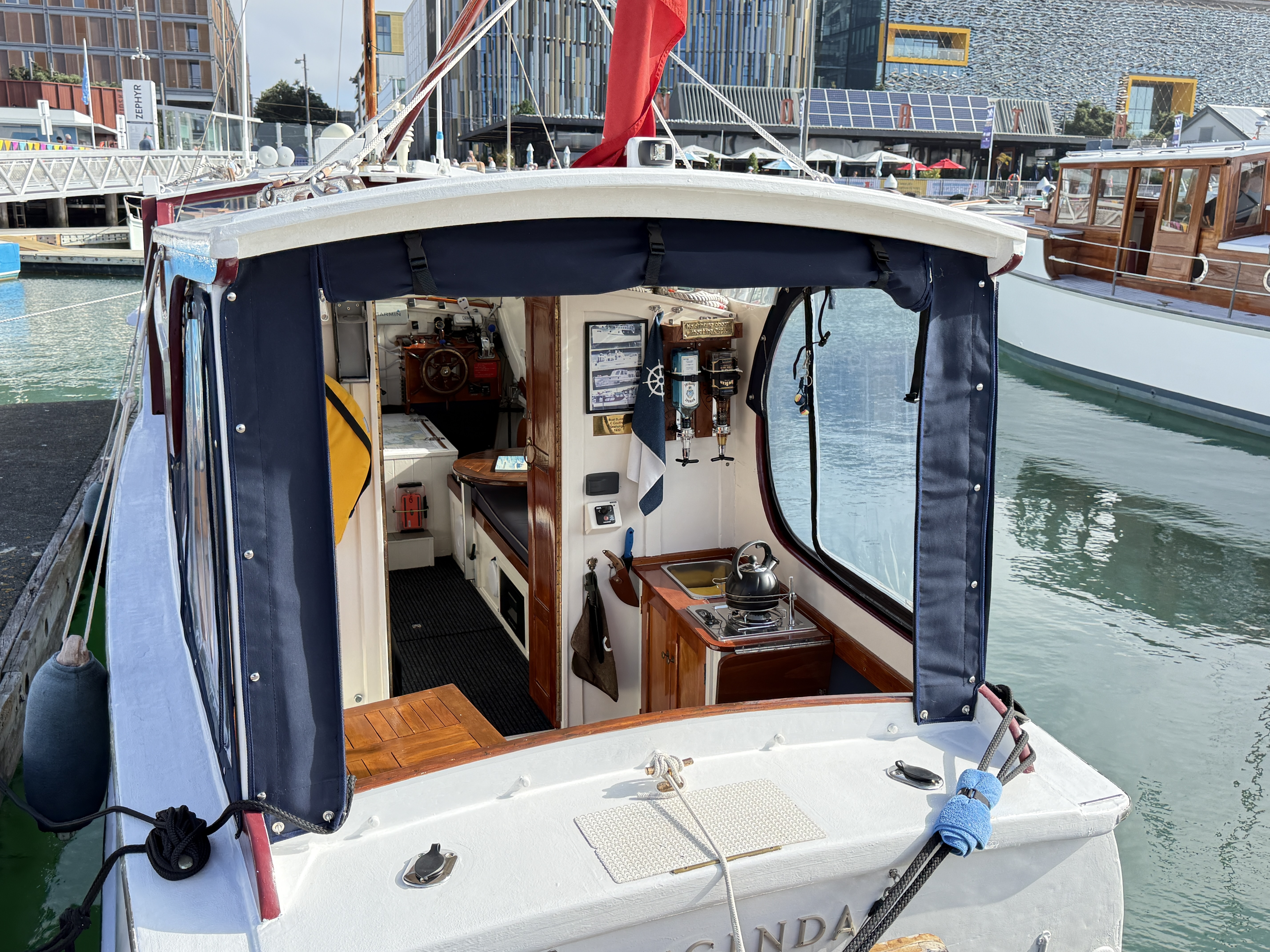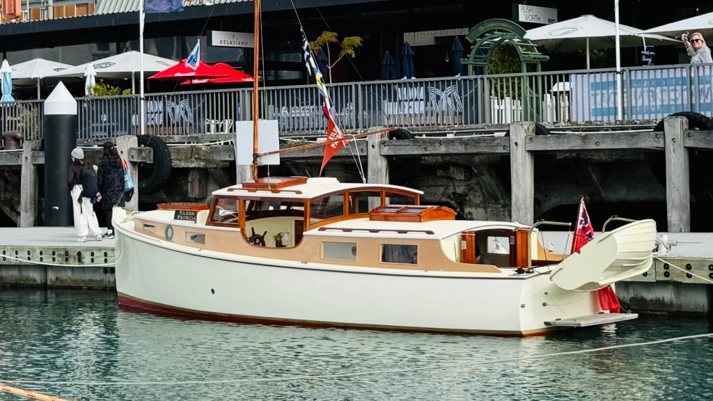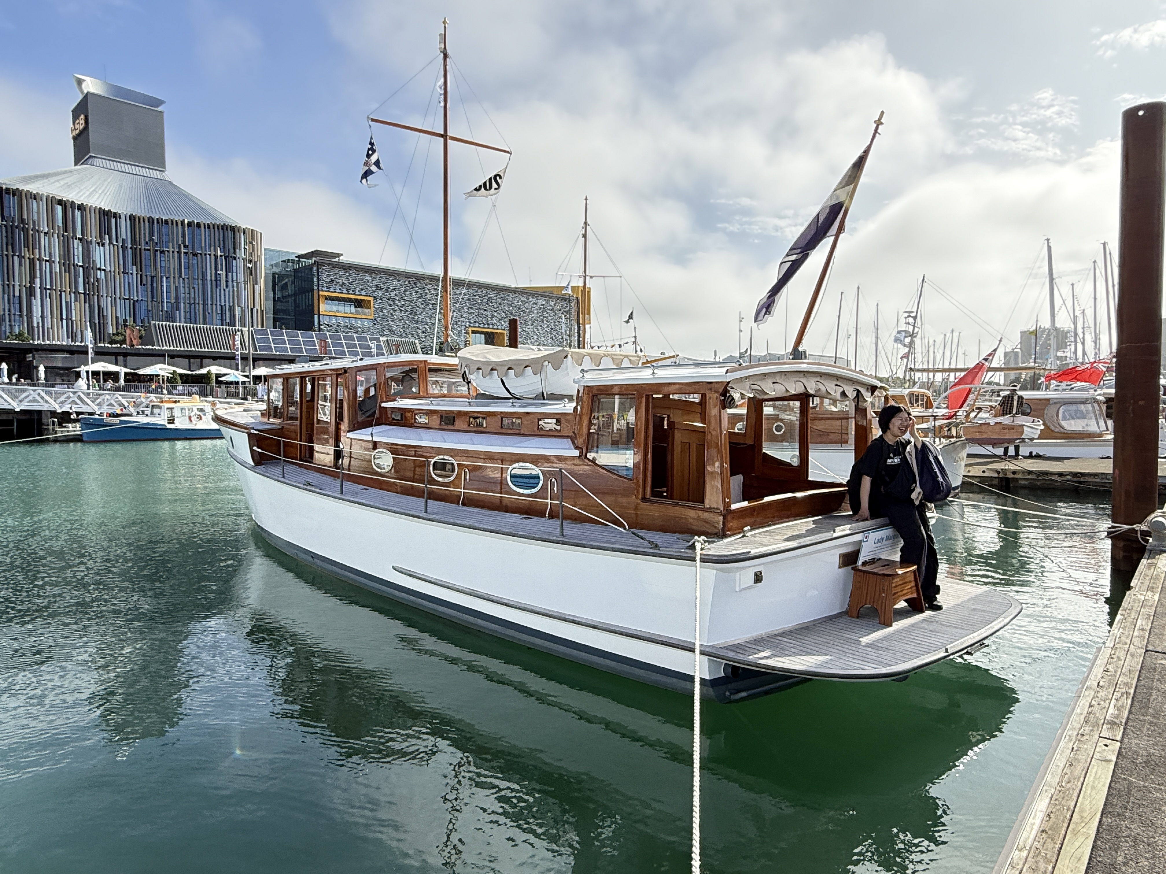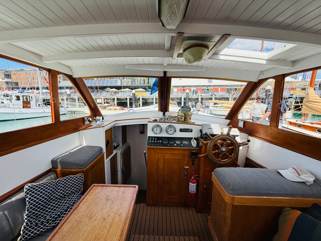 The 1938 Colin Wild designed and built motor launch. Over the last five years she’s been undergoing a rolling restoration, and every time I see her she looks better than the last.