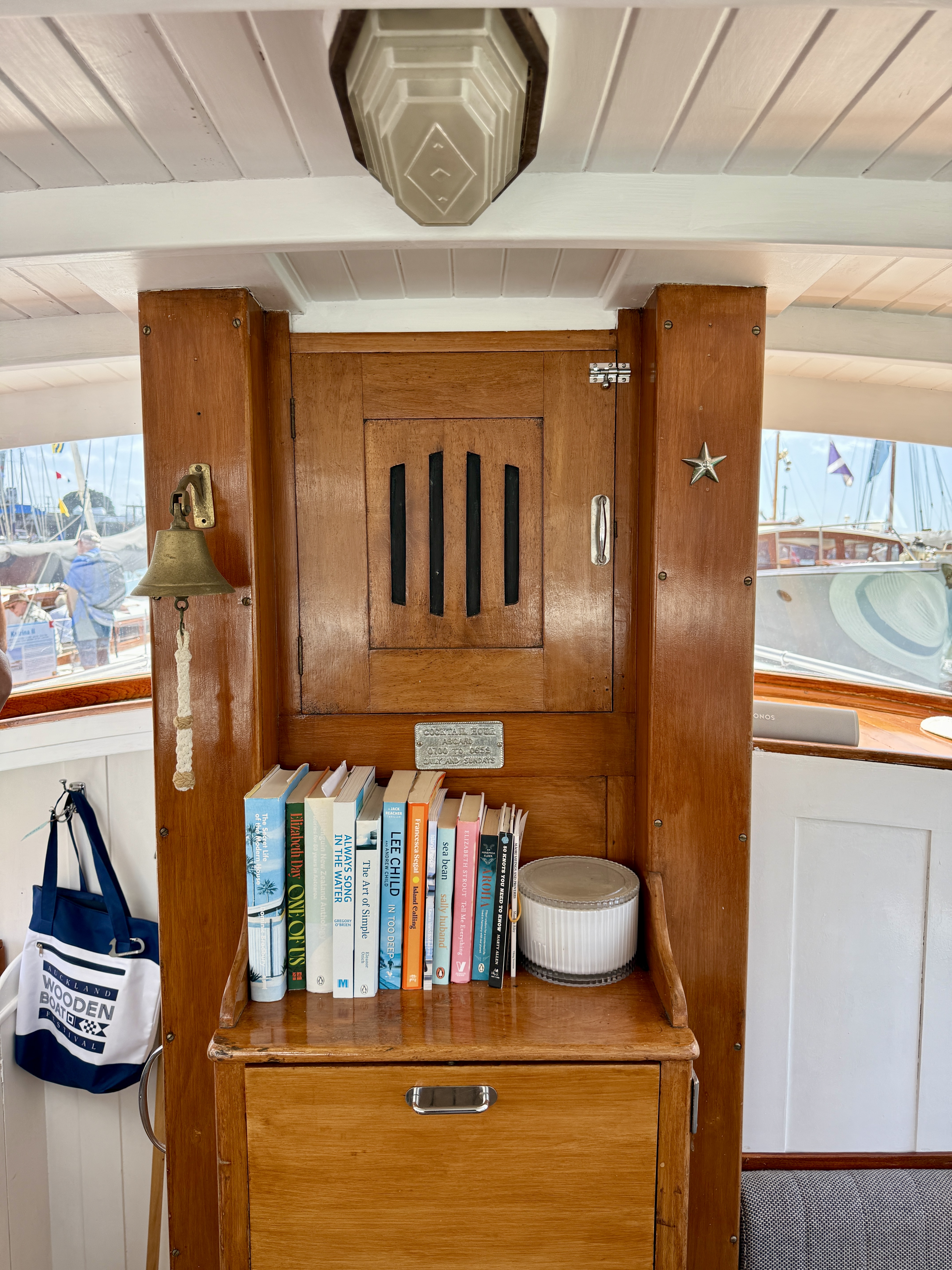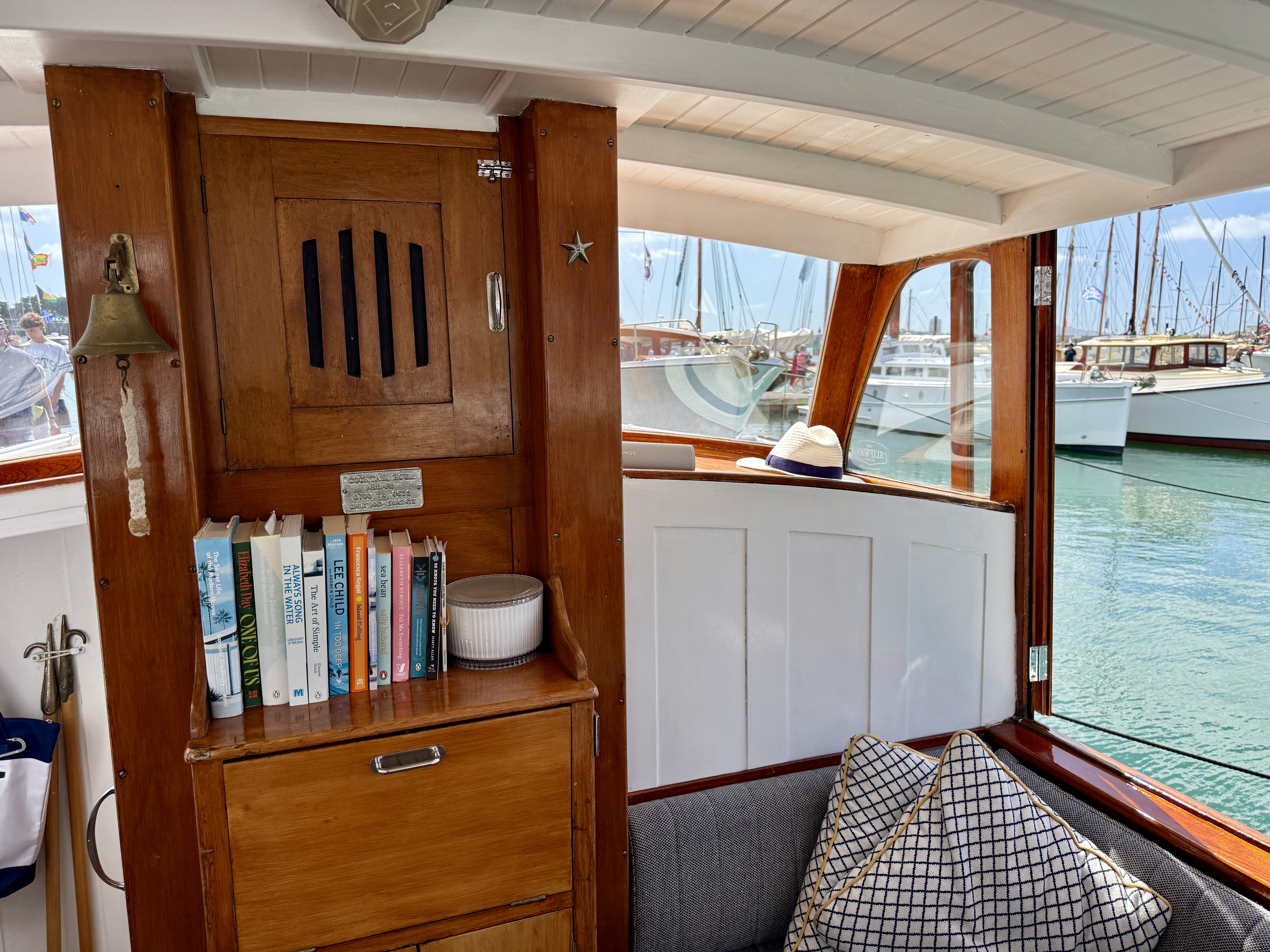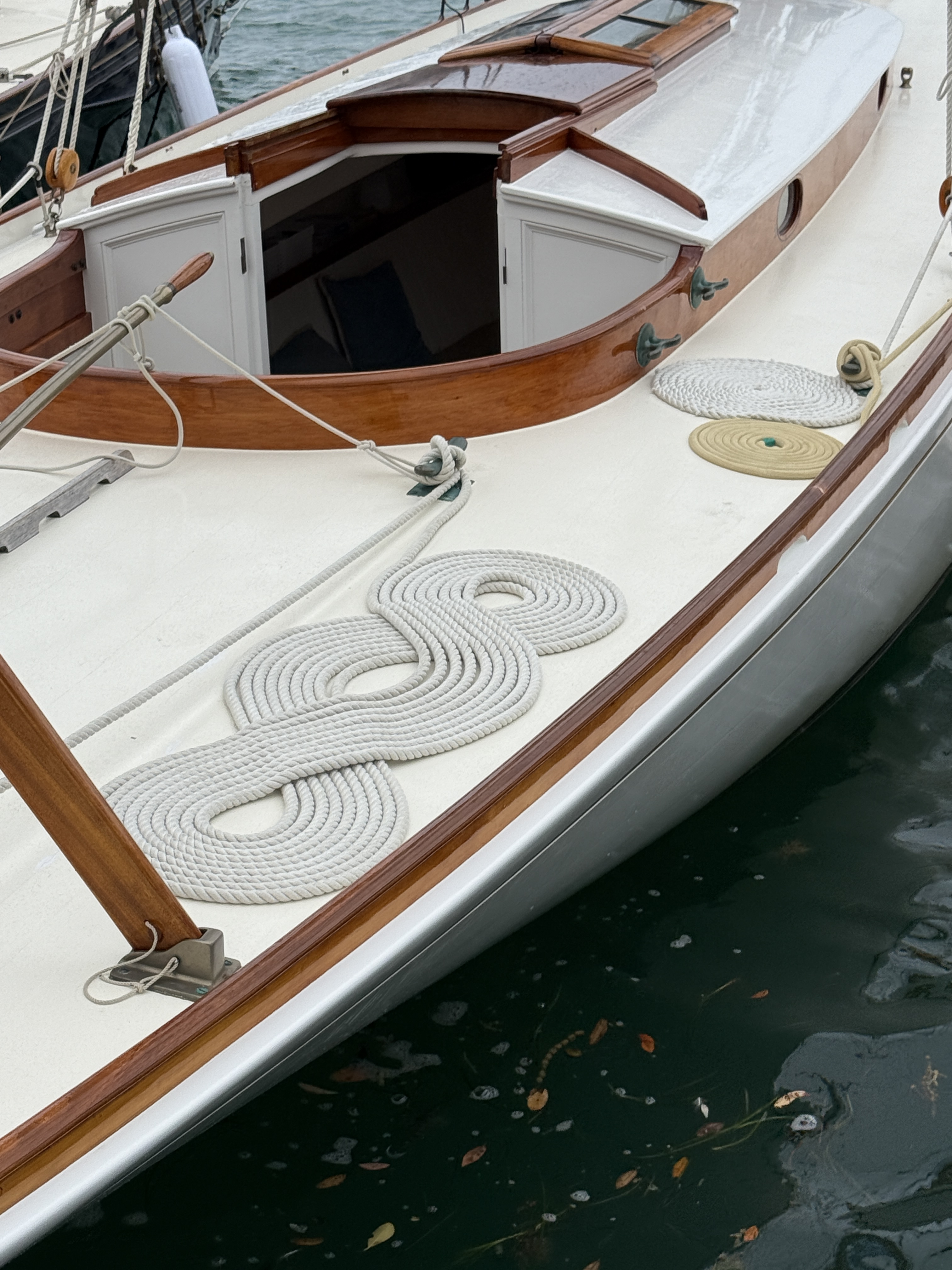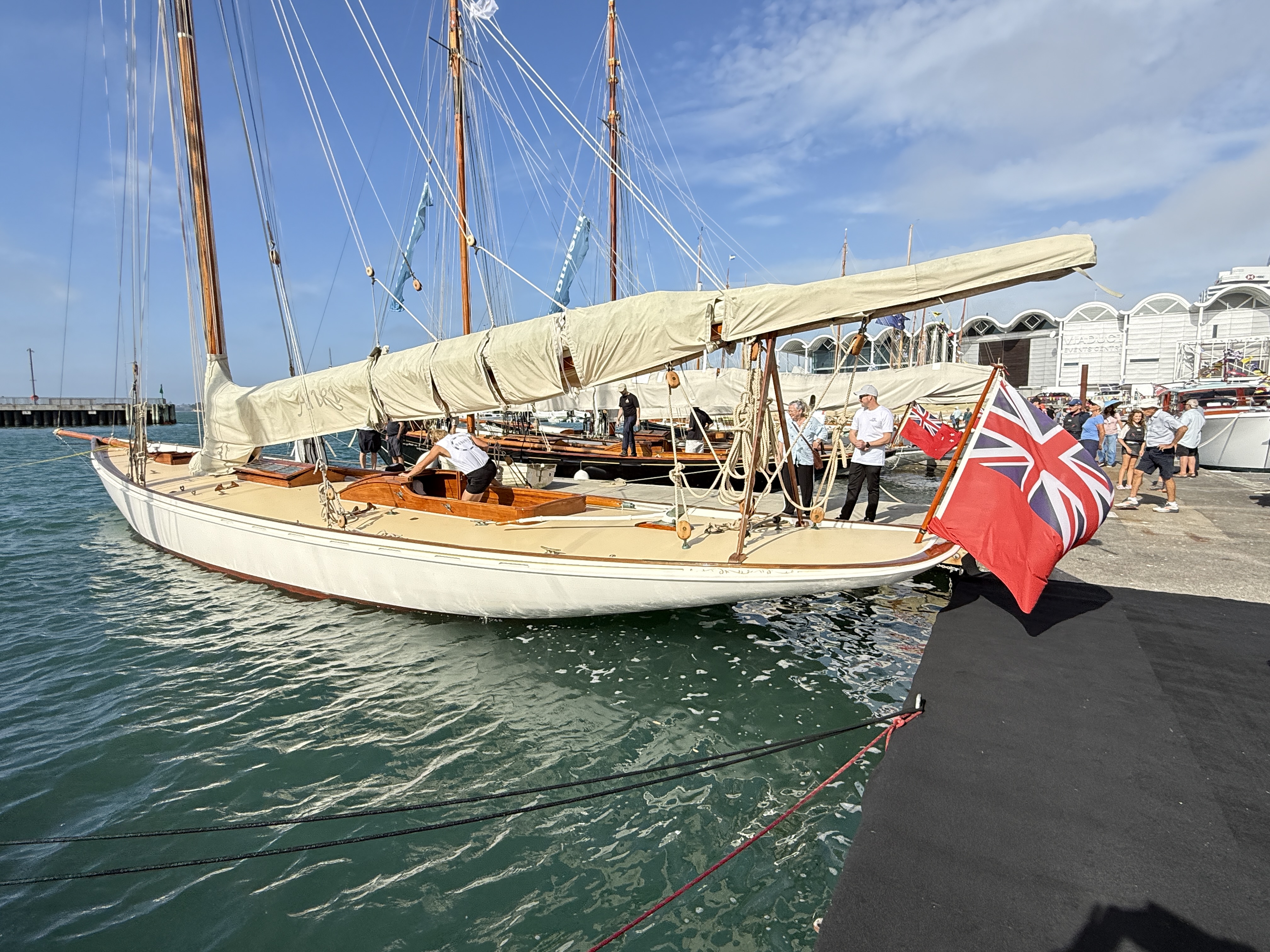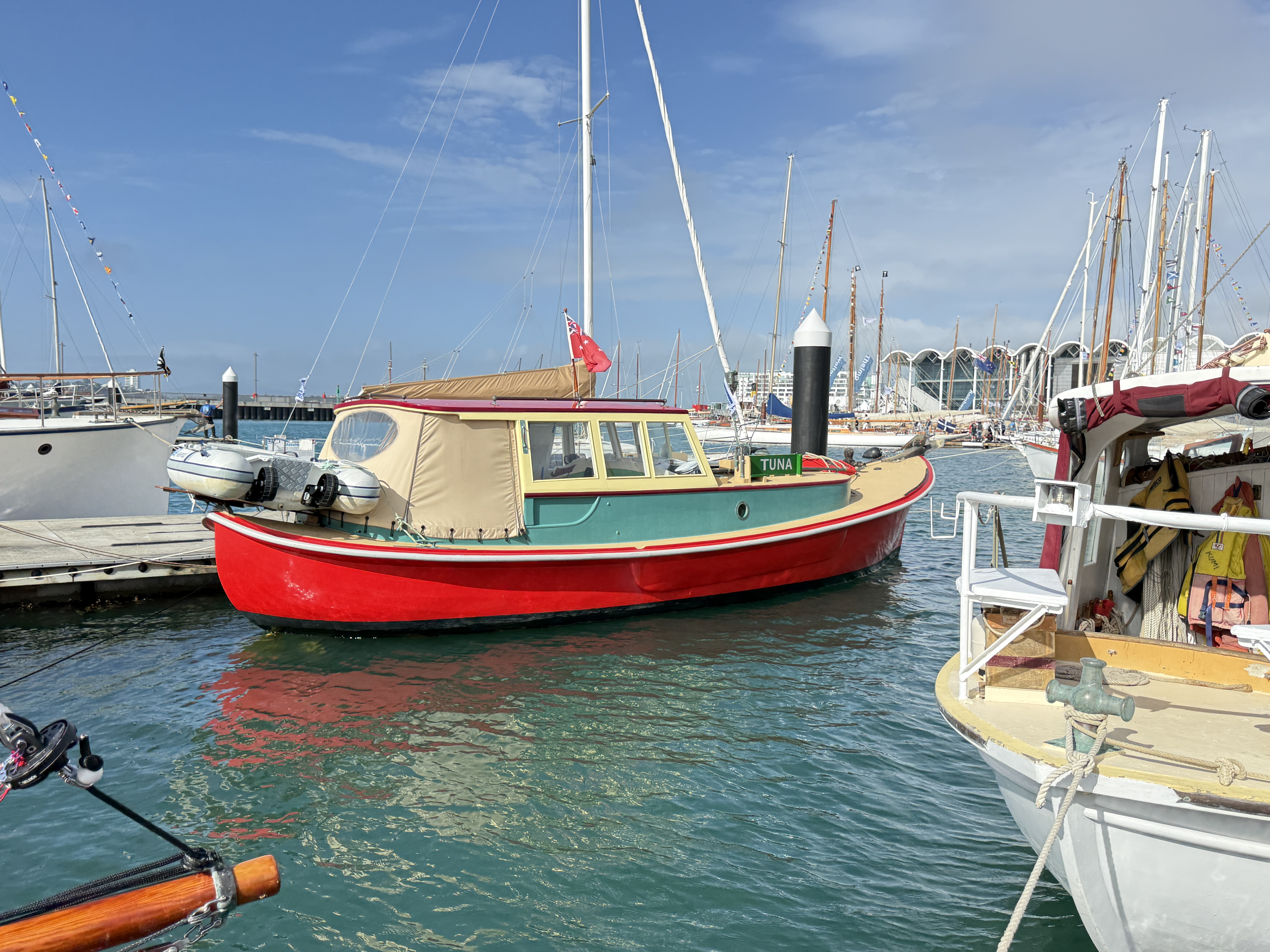 The 1938 Colin Wild designed and built motor launch. Over the last five years she’s been undergoing a rolling restoration, and every time I see her she looks better than the last.