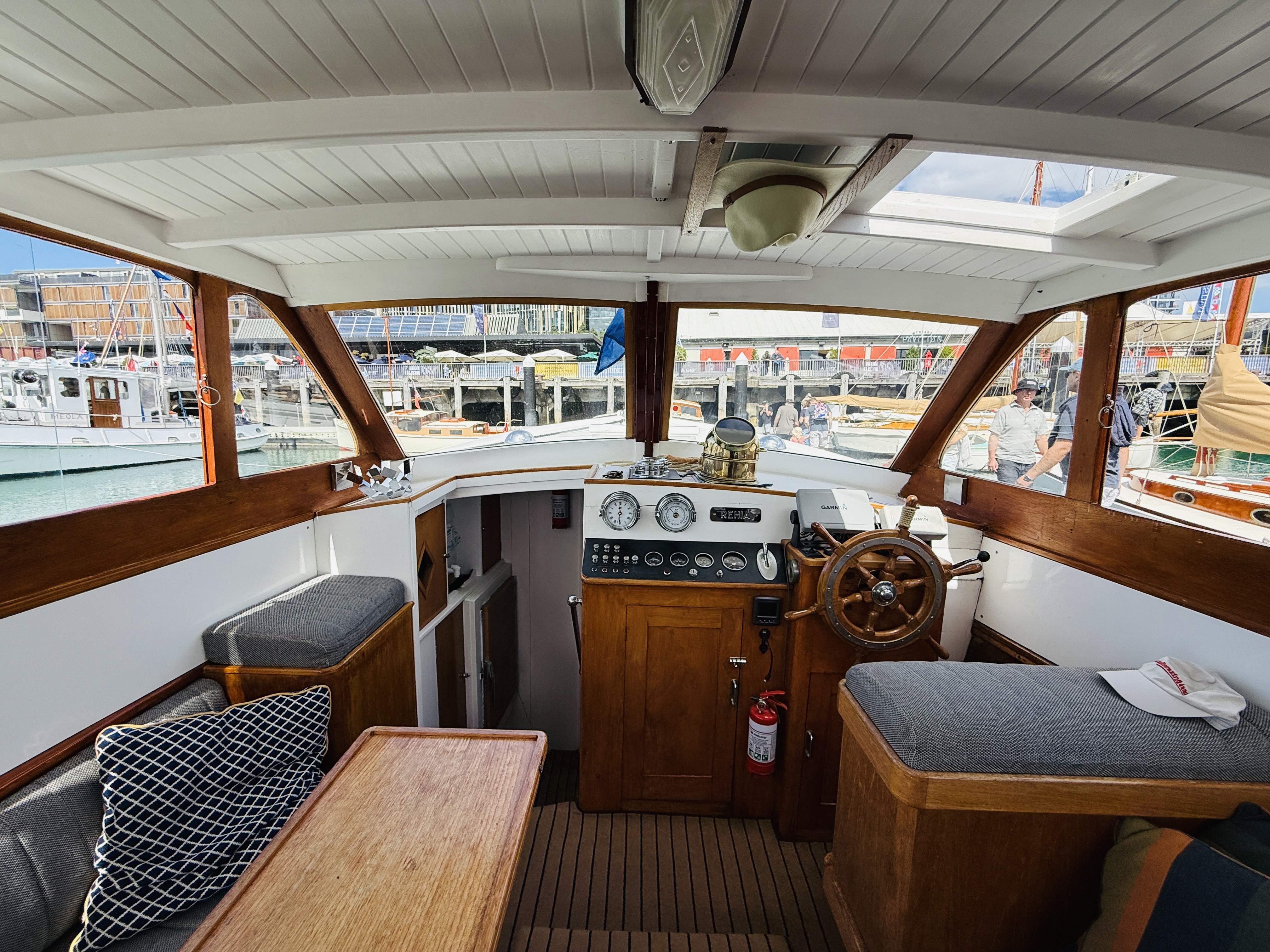 The 1938 Colin Wild designed and built motor launch. Over the last five years she’s been undergoing a rolling restoration, and every time I see her she looks better than the last.