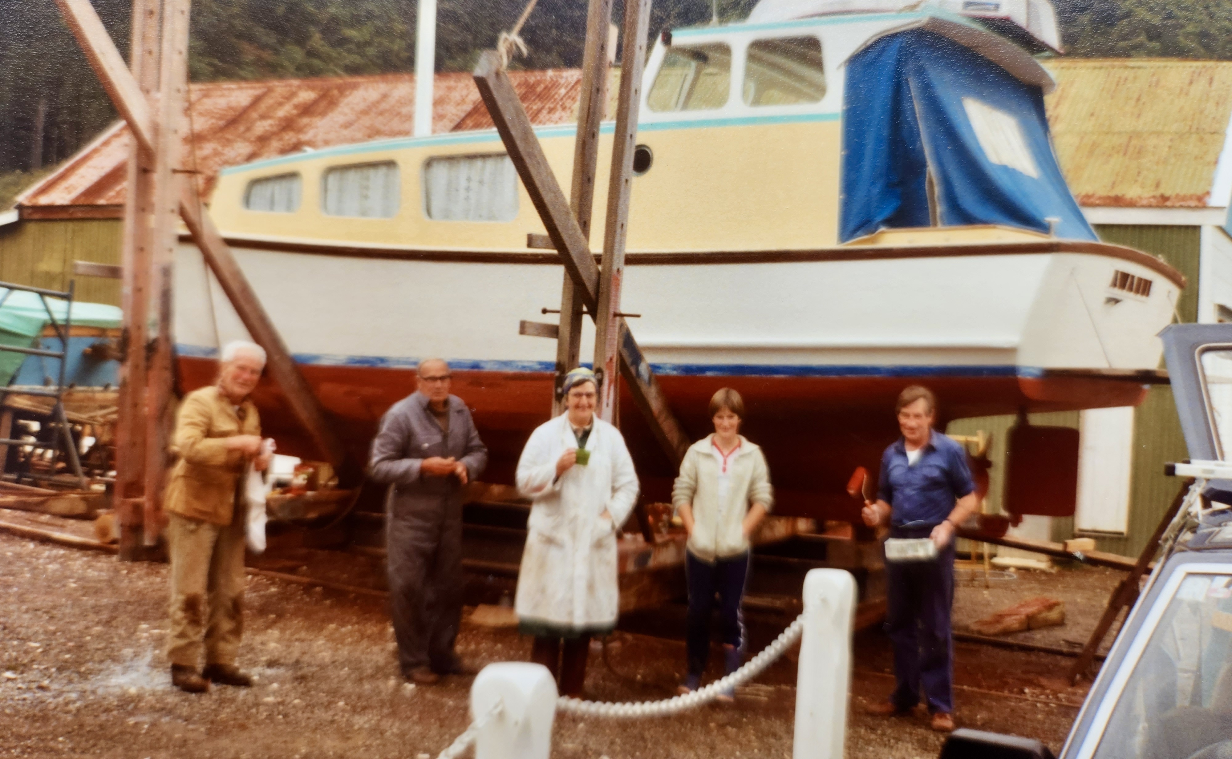 As a result of the photo (see below) of the classic 40’ wooden launch – MARISTELLA, built in 1936 by Sam Ford, appearing at the recent Classic Woodys Boat Show at OBC – WW was contacted by Katherine Armstrong. Katherine’s parents Roy and Daphine Bridge were previous owners of MARISTELLA.