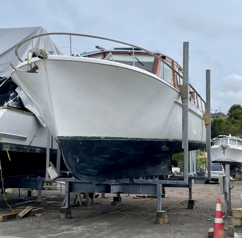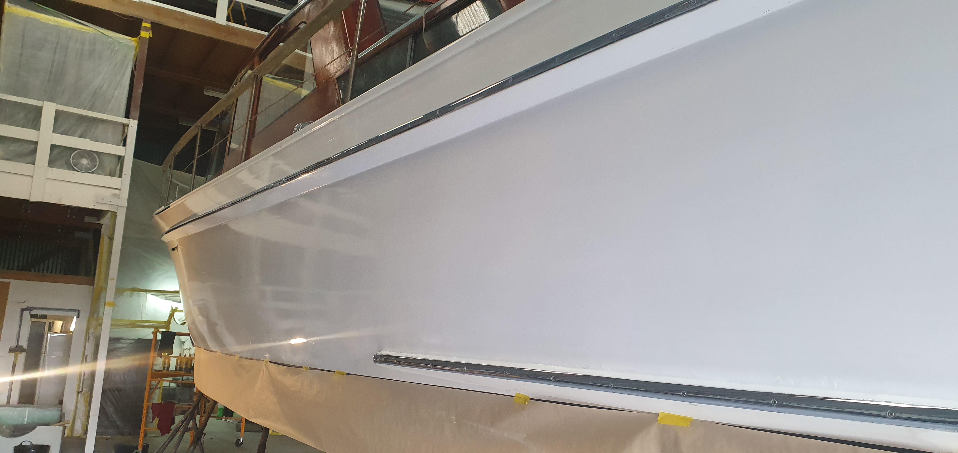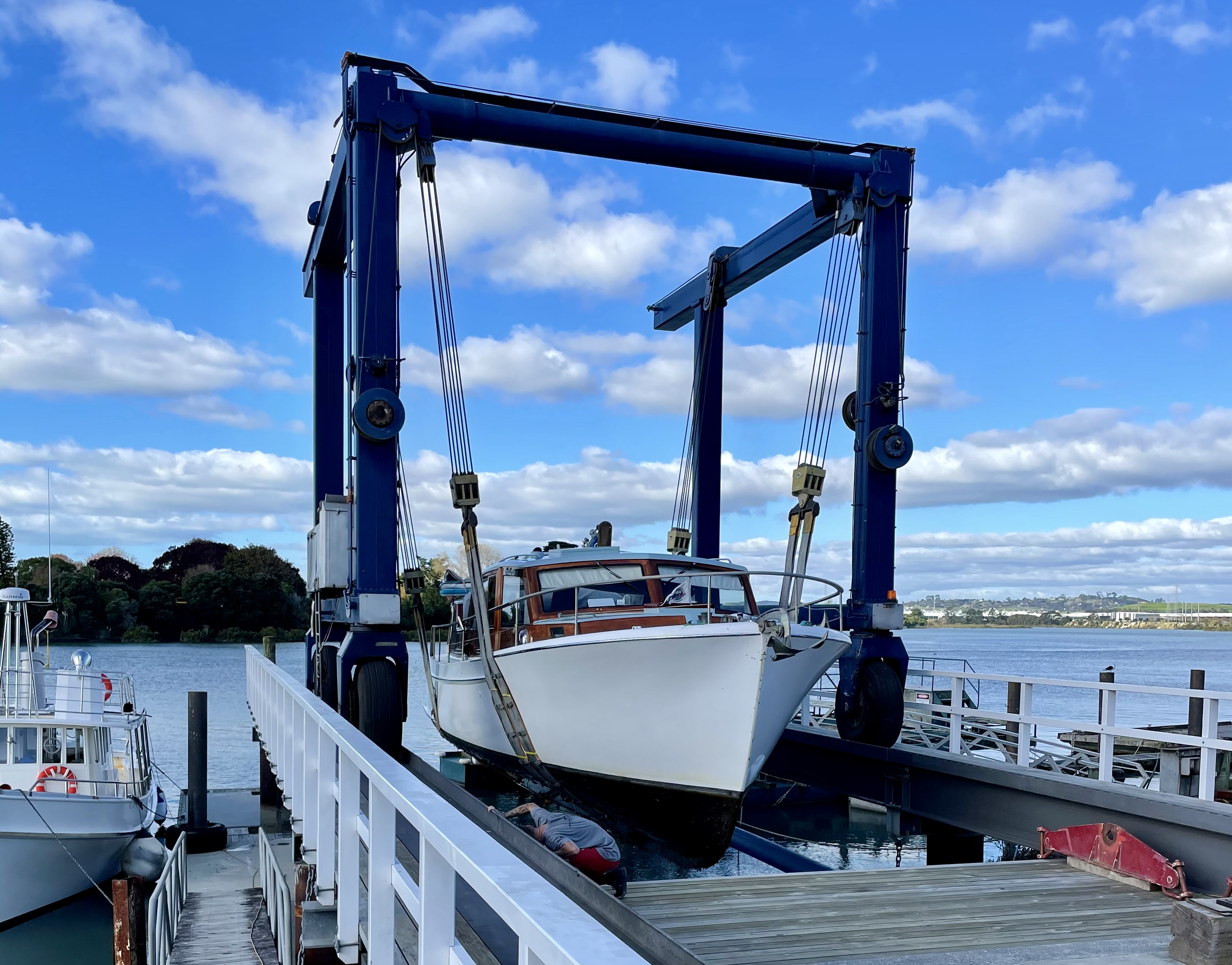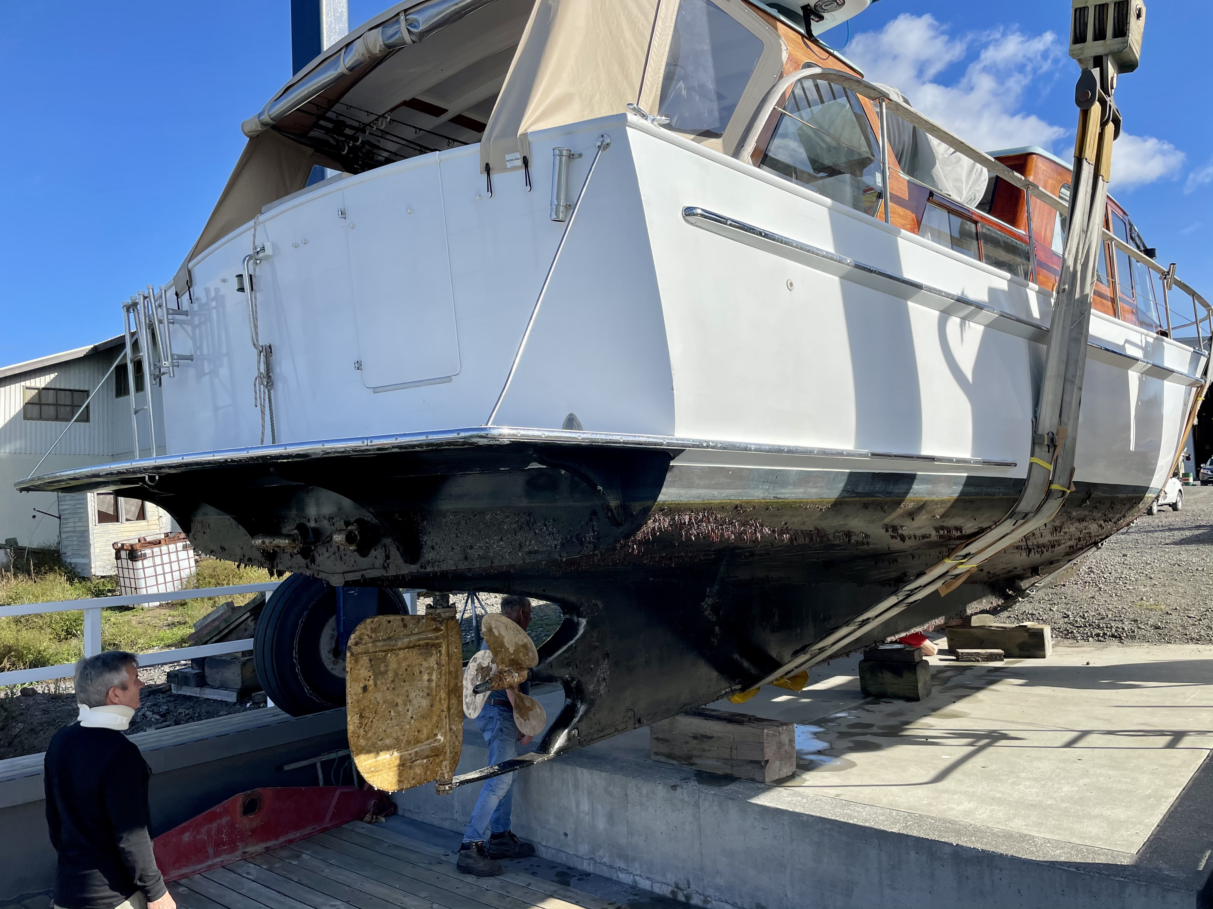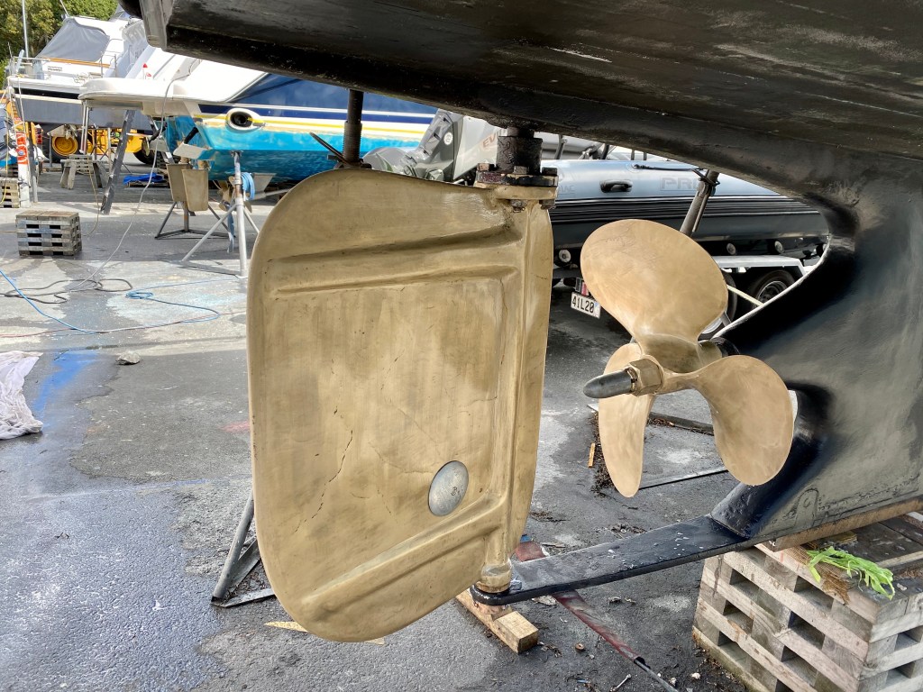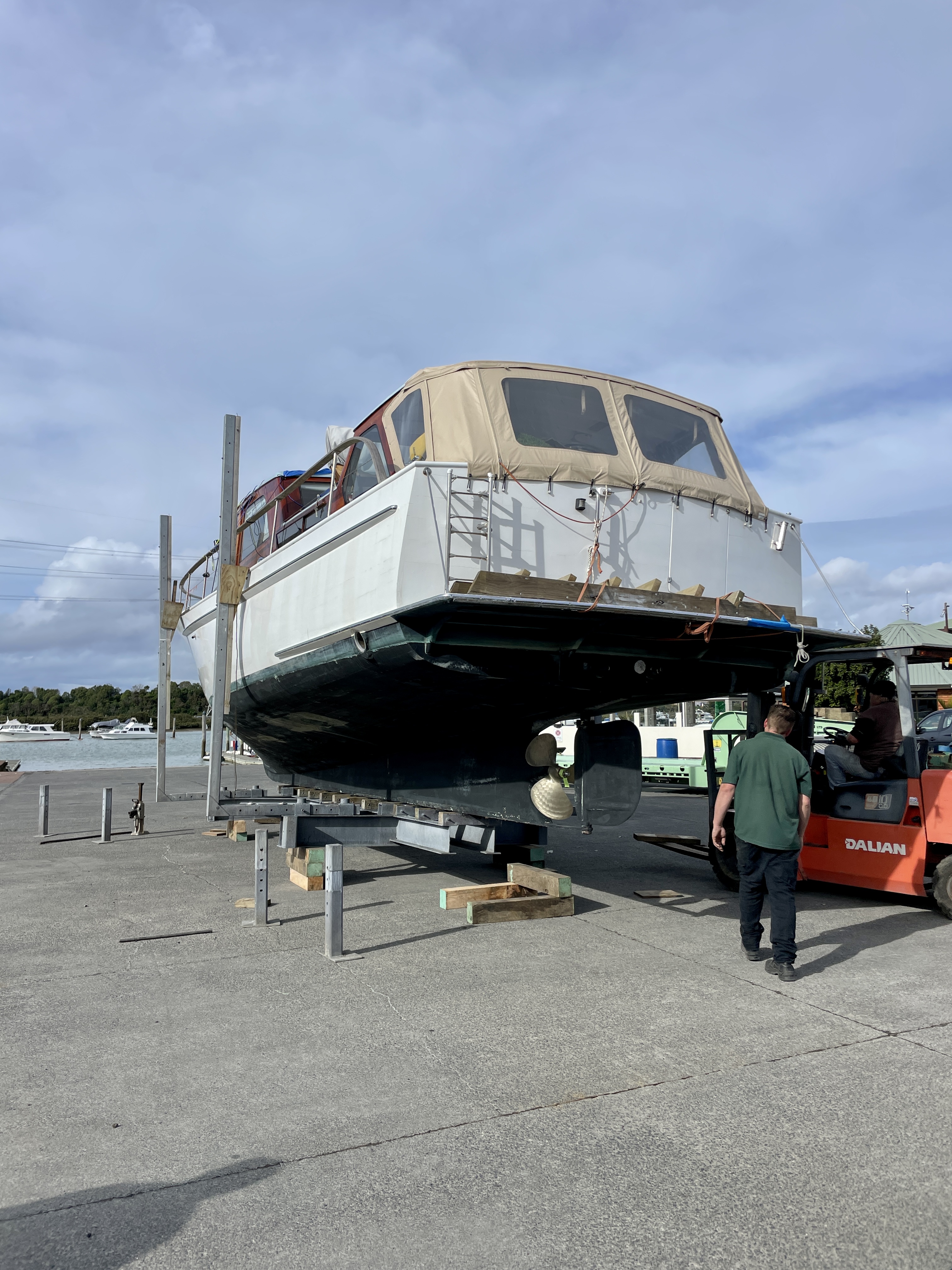 Around The Yards – Centaurus Angus Roger’s 42’ 1967 1968 Bailey & Sons built launch – Centaurus has been tucked away over winter in a shed up the Tamaki River getting a serious serving of TLC to her hull. I understand that there was an accumulation of old anti-fouling removed, back to bare wood, and the process started again. Looks very impressive and back in the water later this week, Just in time for the Woody Riverhead Tavern lunch cruise on the 20th June.