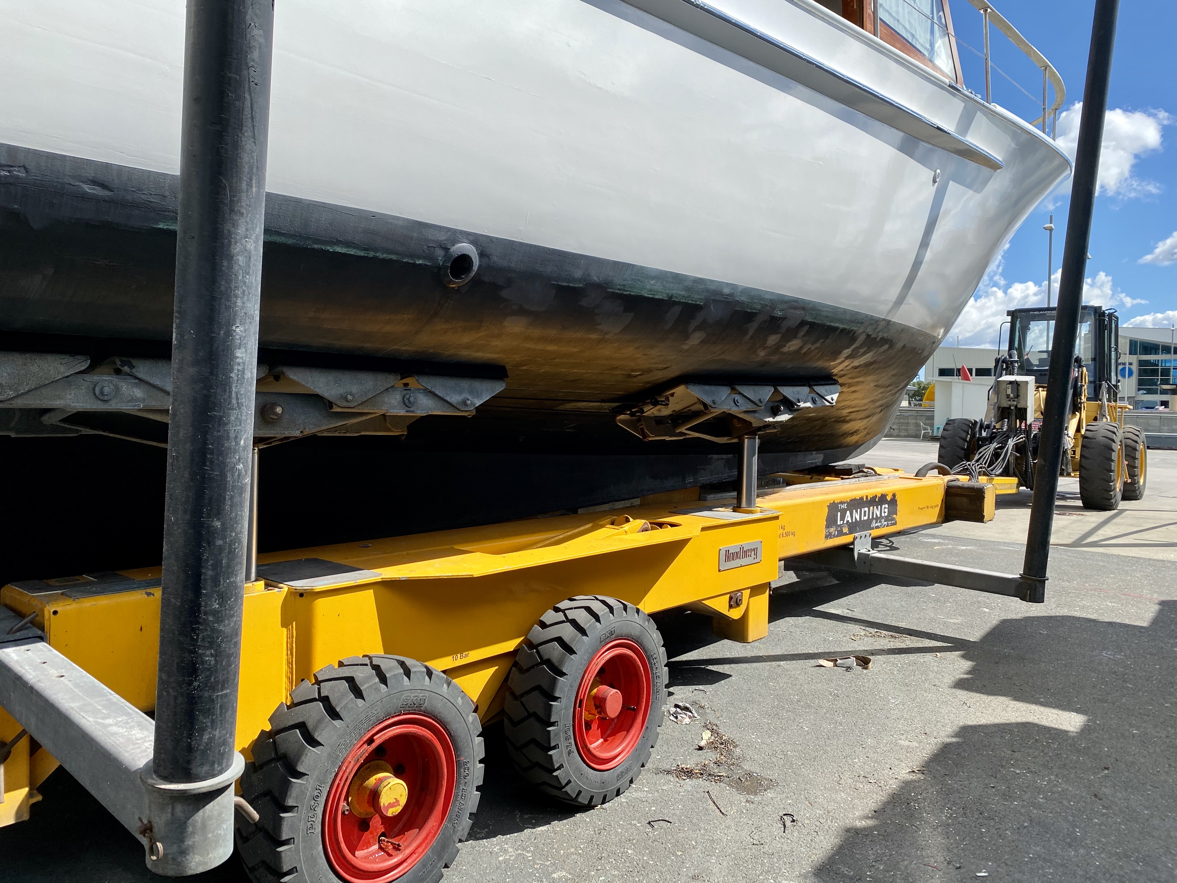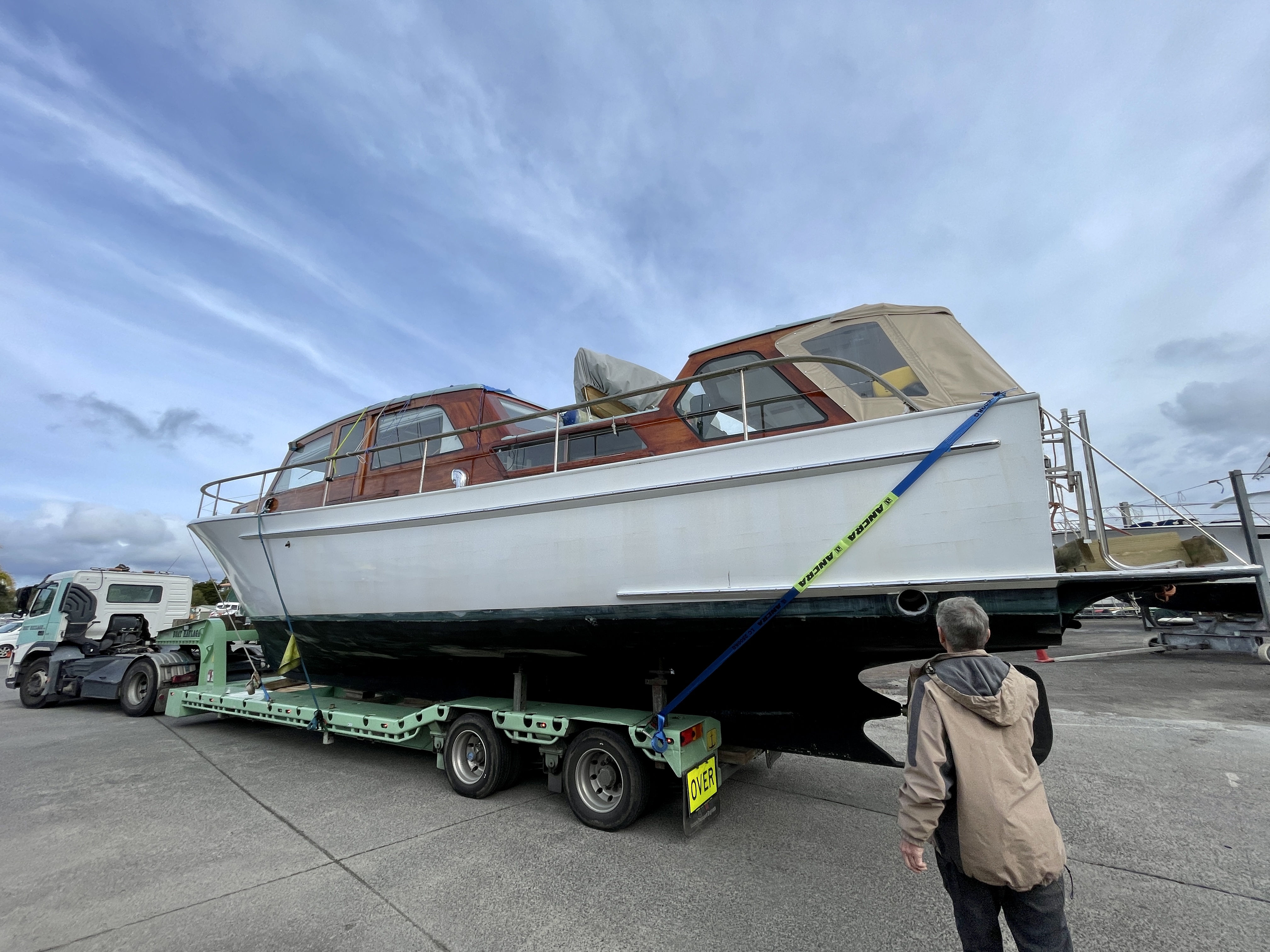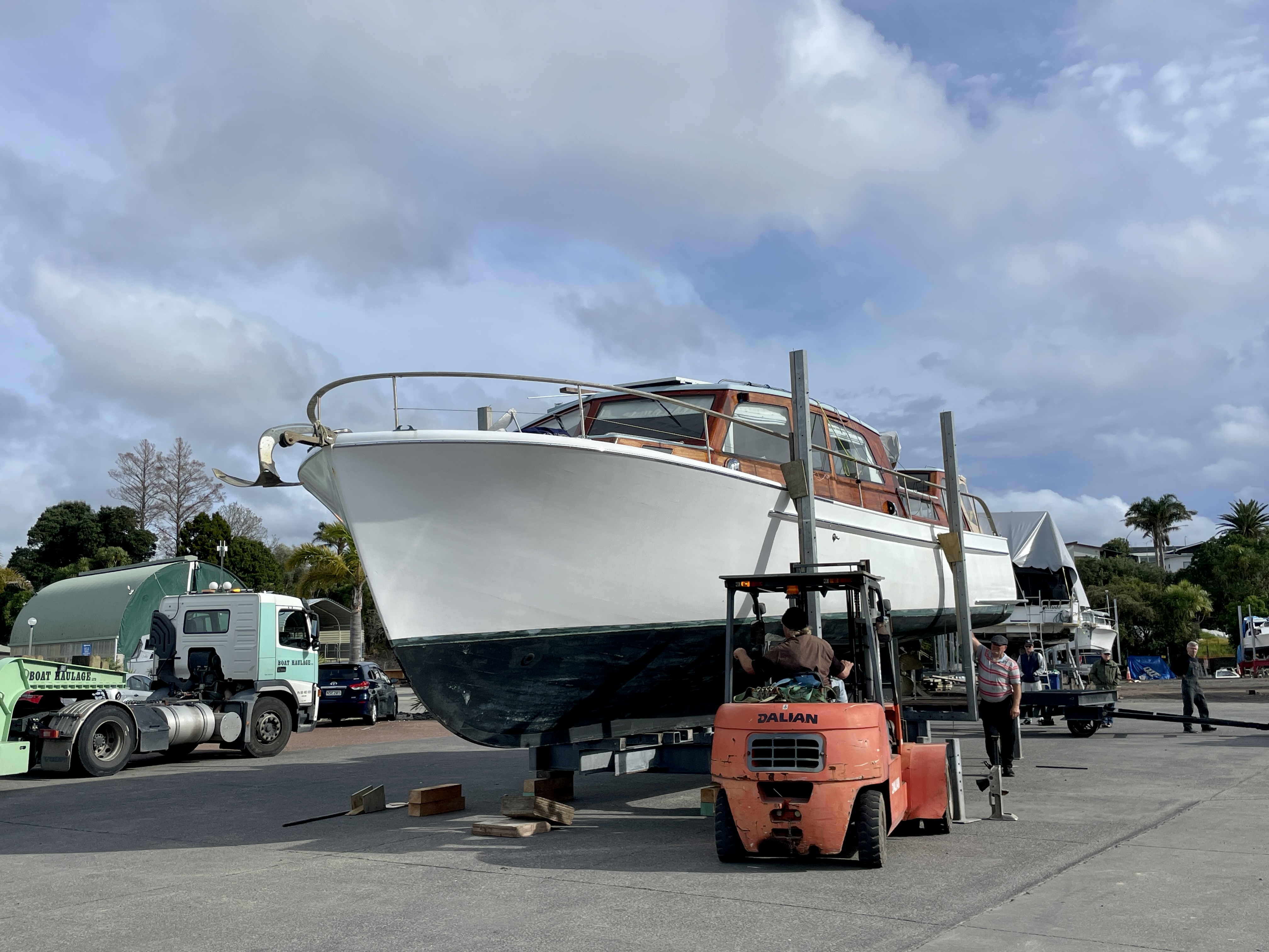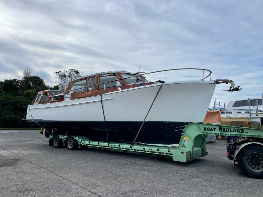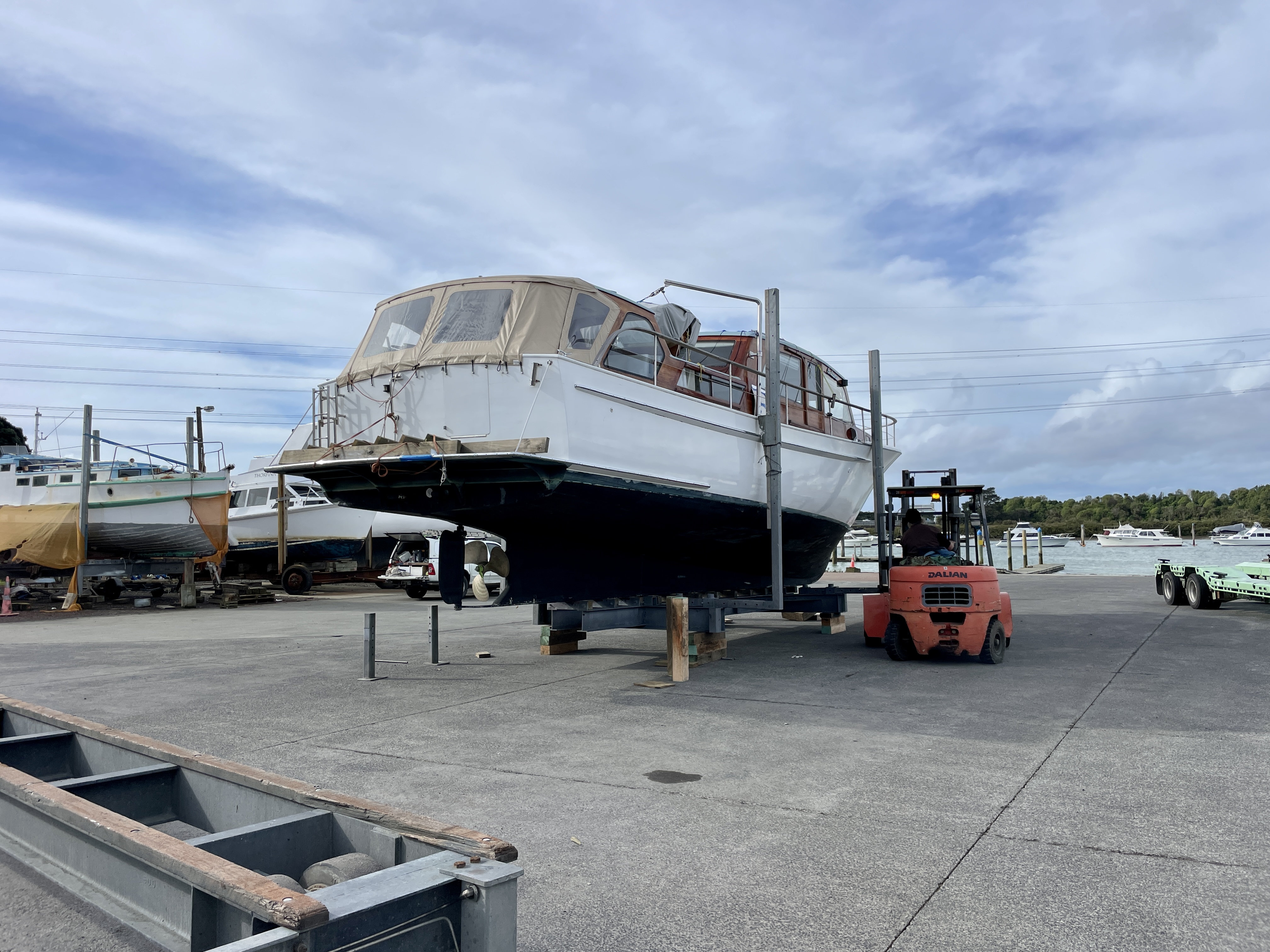 SAD – Angus Roger’s 1967/8 Baileys & Sons built launch – Centaurus left The Landing at Okahu Bay hardstand on Aucklands waterfront on a transporter – why sad?, because she was the last boat left hauled out at the Orakei Hardstand, looks like Scott Milne and his Auckland Council cronies have done a clandestine stocktake i.e. the haul out facility has been closed down and the area no longer available to rate paying Auckland boaties.