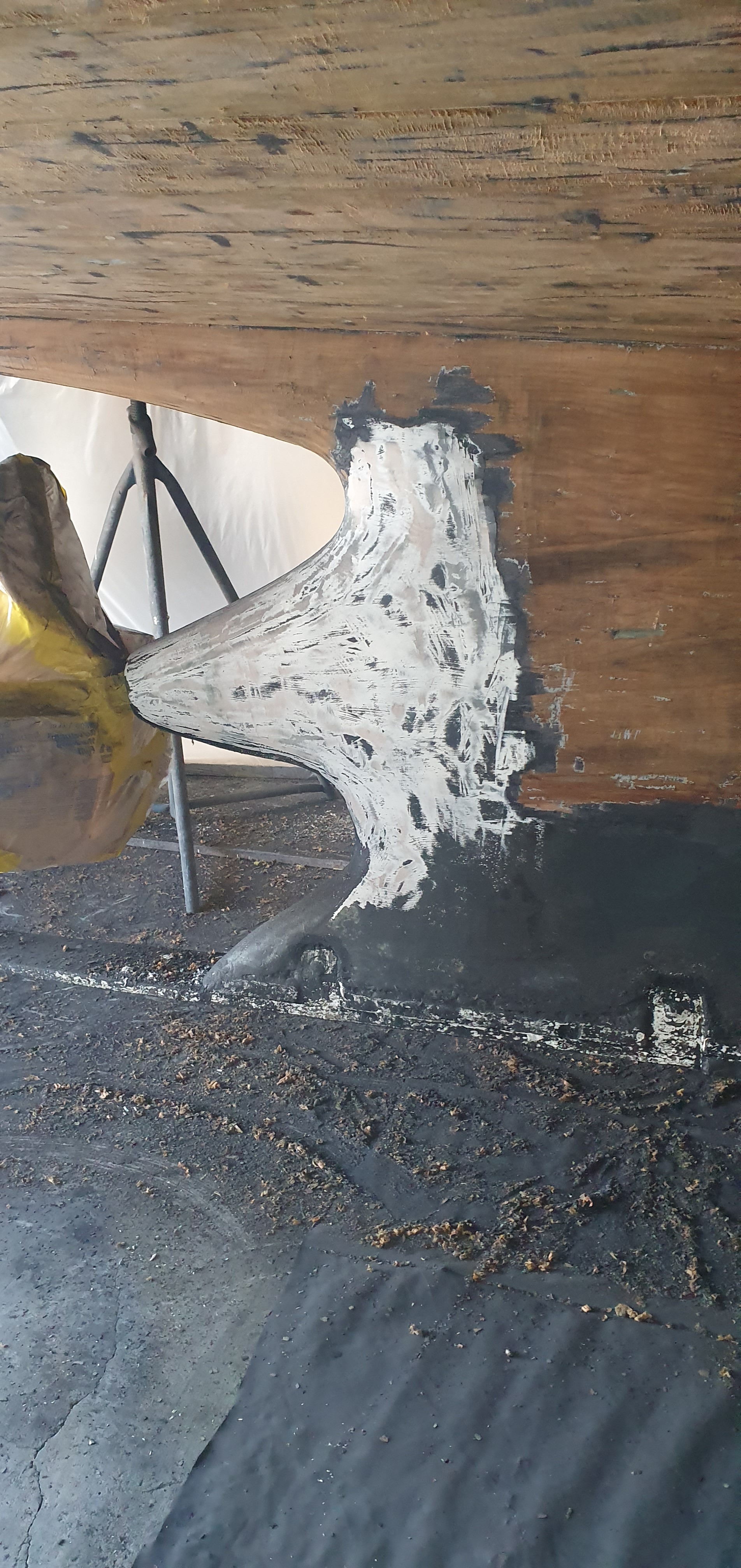 Centaurus is a very big woody – 42’ long with a 13’ beam and built like a brick outhouse – 1.25” kauri carvel planked.