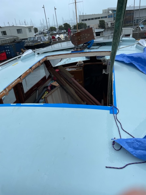 Angus has built sister beams and bearers which will get glued to the removed part of the roof and then screwed back onto the beams and bearers and fibreglass taped on top once the new John Deere 175hp (@2400 rpm) engine is installed so as to create a soft closure that will only require cutting the fibreglass and removing screws in future.