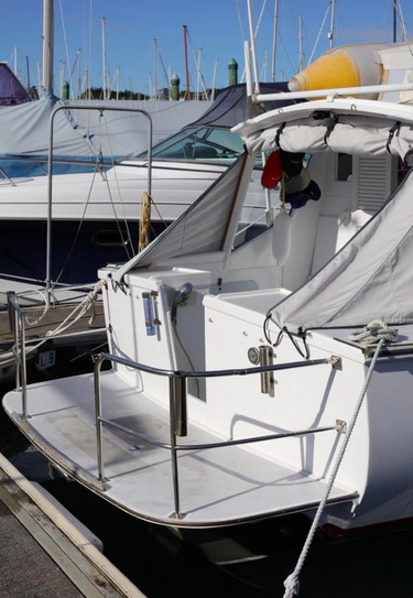 Last week I was contacted by her owners who advised that a few months ago while taking her out at very low tide they hit an unmarked reef inside the OBC Bridge on the way out. The damage sustained is that as a result of the keel and prop hitting reef the drive shaft, this was pulled out of the gearbox. I’m told no water entered the boat – BUT the insurance company has written the vessel off so now it is up for sale for $12,500 as-is-where-is. Potentially the bargain of the year.