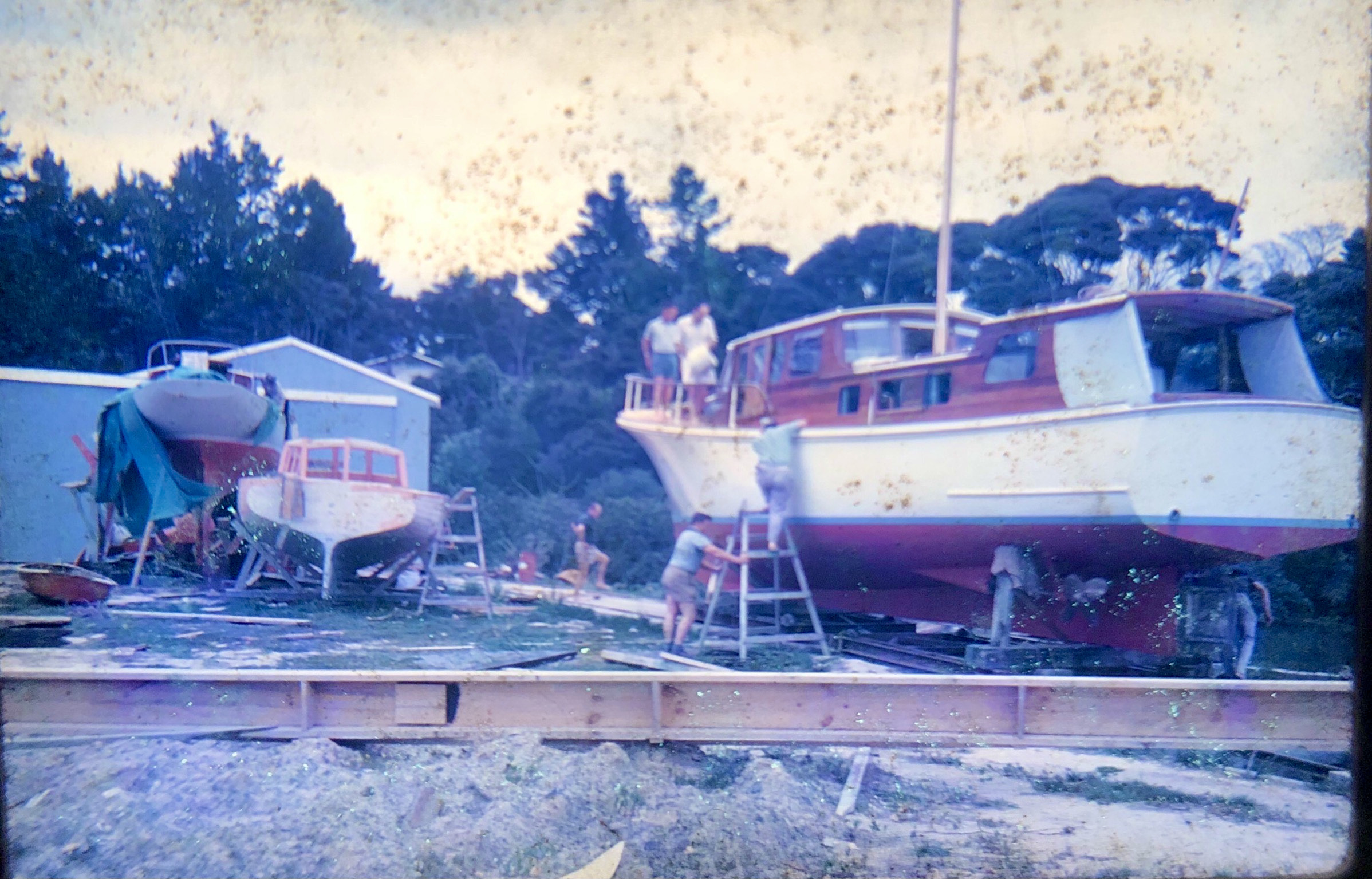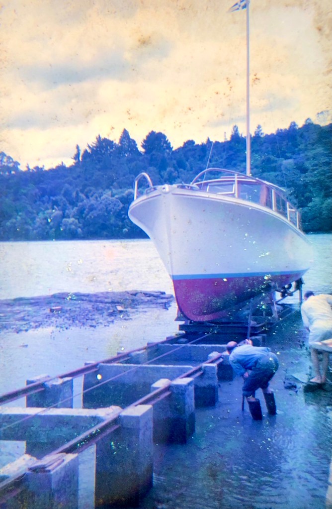 In the 2nd photo we also see the yacht Rawhiti getting her new ‘doghouse’, probably owned by Don Brooke at the time.