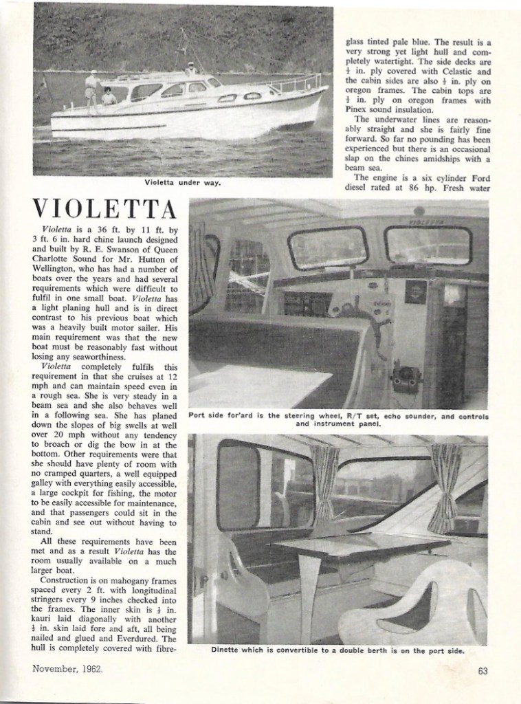 Back in April 2015, we ran a story on the Swanson designed launch Mystic, refer WW link below. At the time Simon Manning commented that Mystic was owned by Colin and Lorraine Davis of Blenheim. Simon recalls that the Davis’s bought her in Lyttleton, a few years prior. Colin’s son Carl, who is an Auckland-based teacher and also a quaified boatbuilder, has done some maintenance jobs and also some work around the transom areas during his various school holiday trips south. Simon observed that despite being on a mooring in Waikawa Bay, Marlborough, Mystic gets plenty of use. https://waitematawoodys.com/2015/04/11/mystic/
