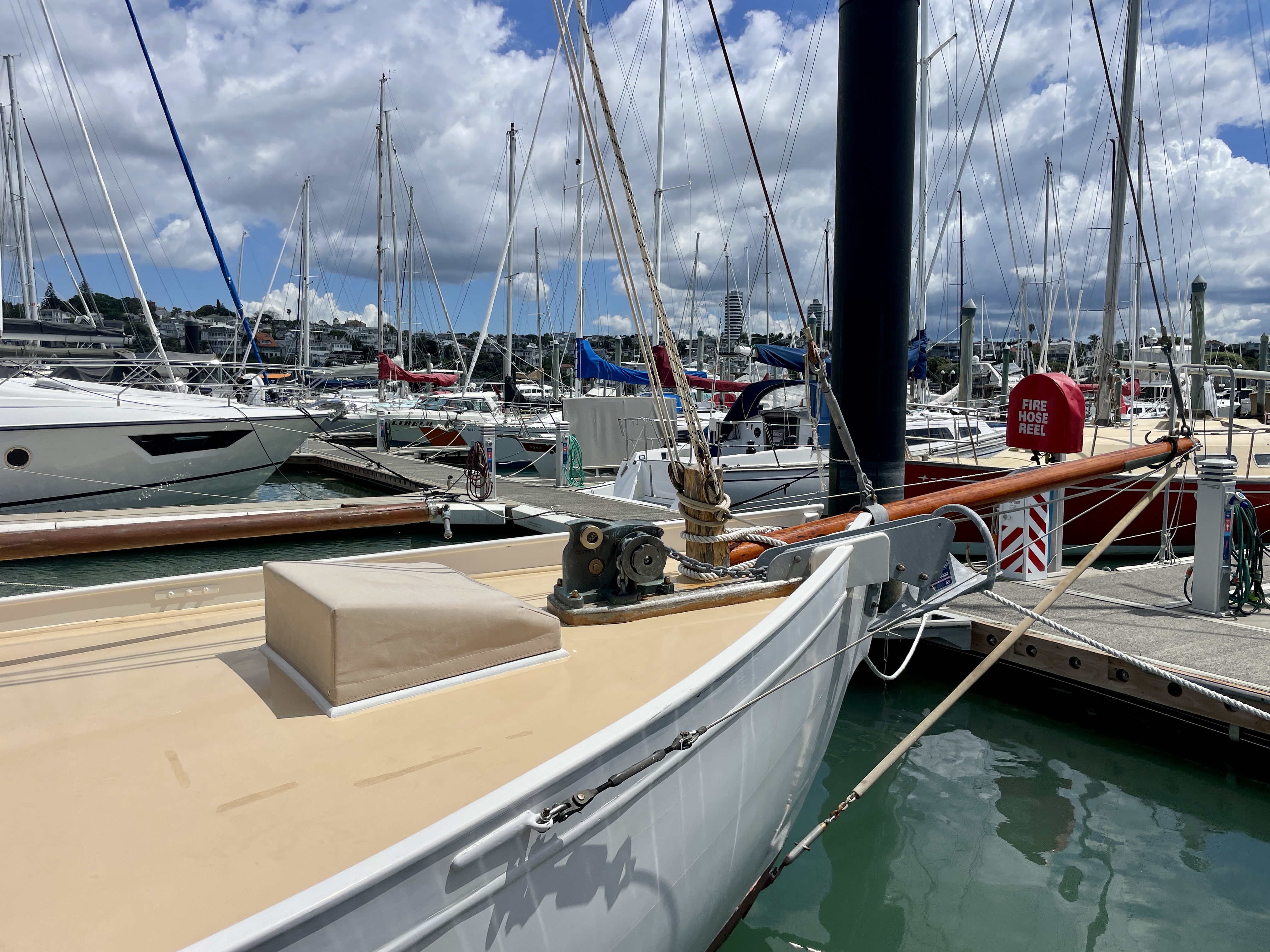 WESTHAVEN COMPETITION – Dockside chat tells me the waterfront marine community are running a sweepstake on when the classic yacht CAPLIN will leave its new berth and venture out on the Waitemata Harbour. One old salt commented that maybe its new prime position was viewed by her new owner as an ornate gift to the neighbourhood…………….. 😉