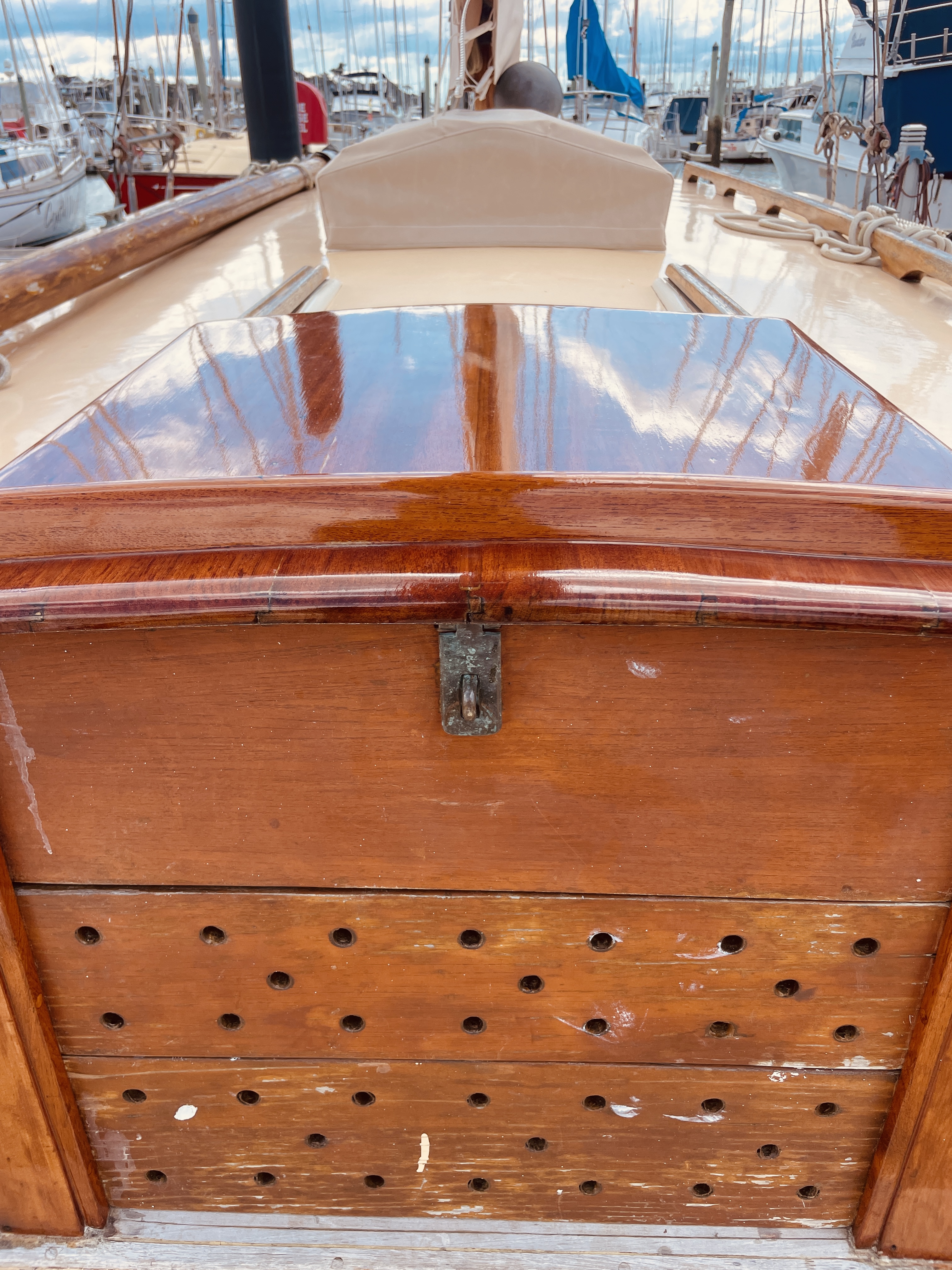 While her owners have invested significant time and funds to ensure that Caplin retains her original aura, character and pedigree, they have also carefully integrated modern systems and technology to provide peace of mind and comfort – for example – new galley, new toilet , completely rewired + panels and fittings, new bronze winch, diesel heater to name just a few.