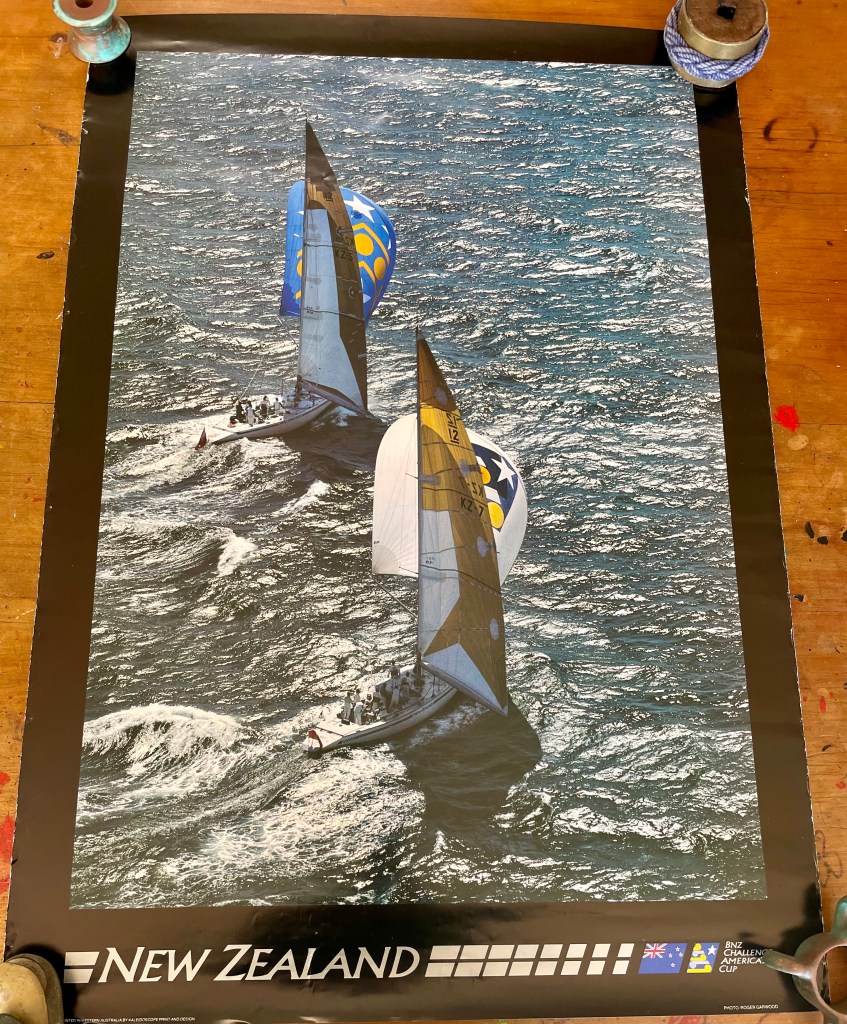 Things are getting a wee bit crazy in the household, spent way too long today looking for some long lost (I put it away for safe keeping) unframed art work. During the hunt I unearthed a tube of Americas Cup posters, all in good condition and ether A1 or A2 size and most on good quality stock. 30>35 years ago in another life, I was doing marketing for the NZ Challenge, so ‘acquired’ a few items. One day I’ll find a home for them.