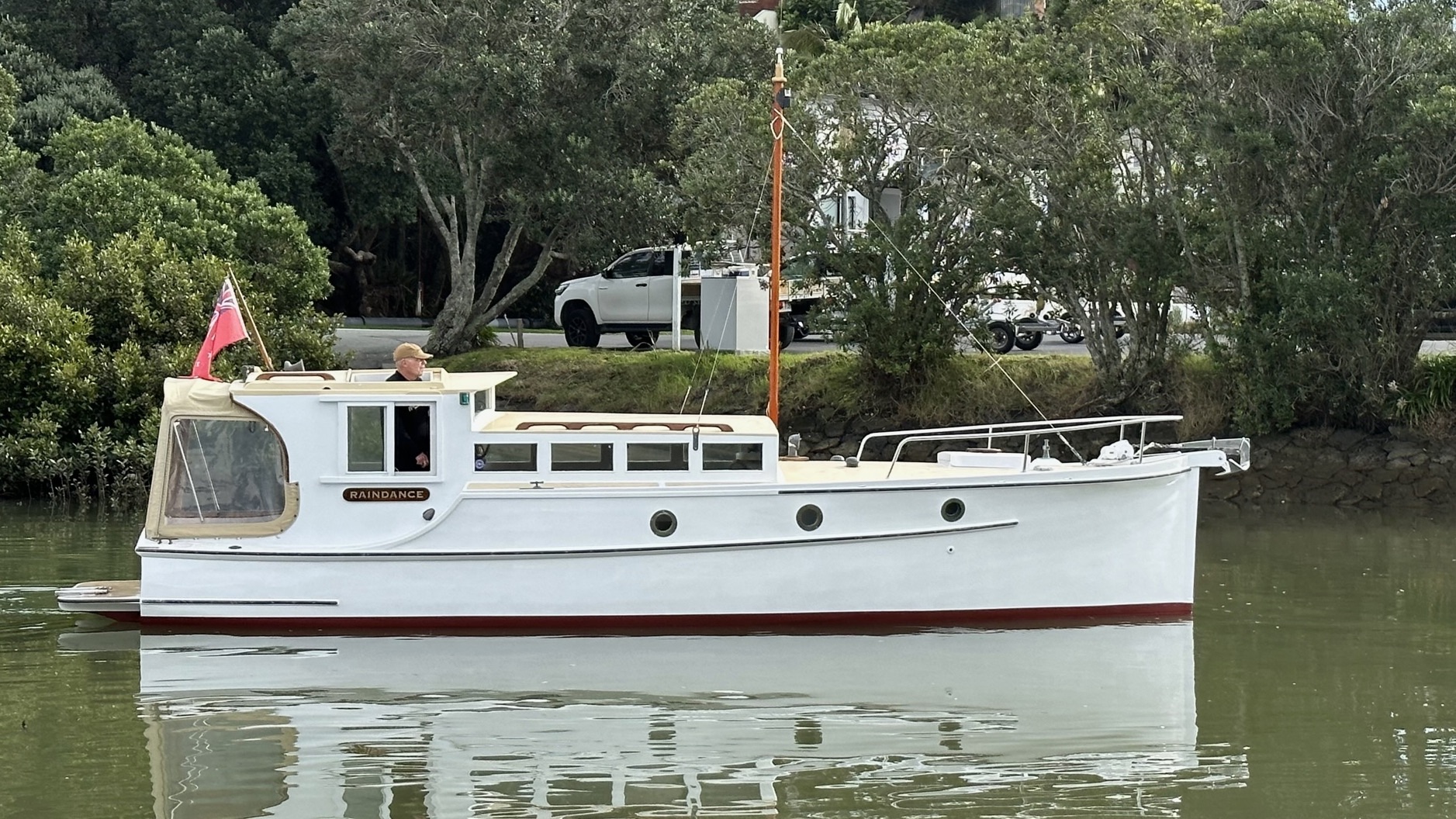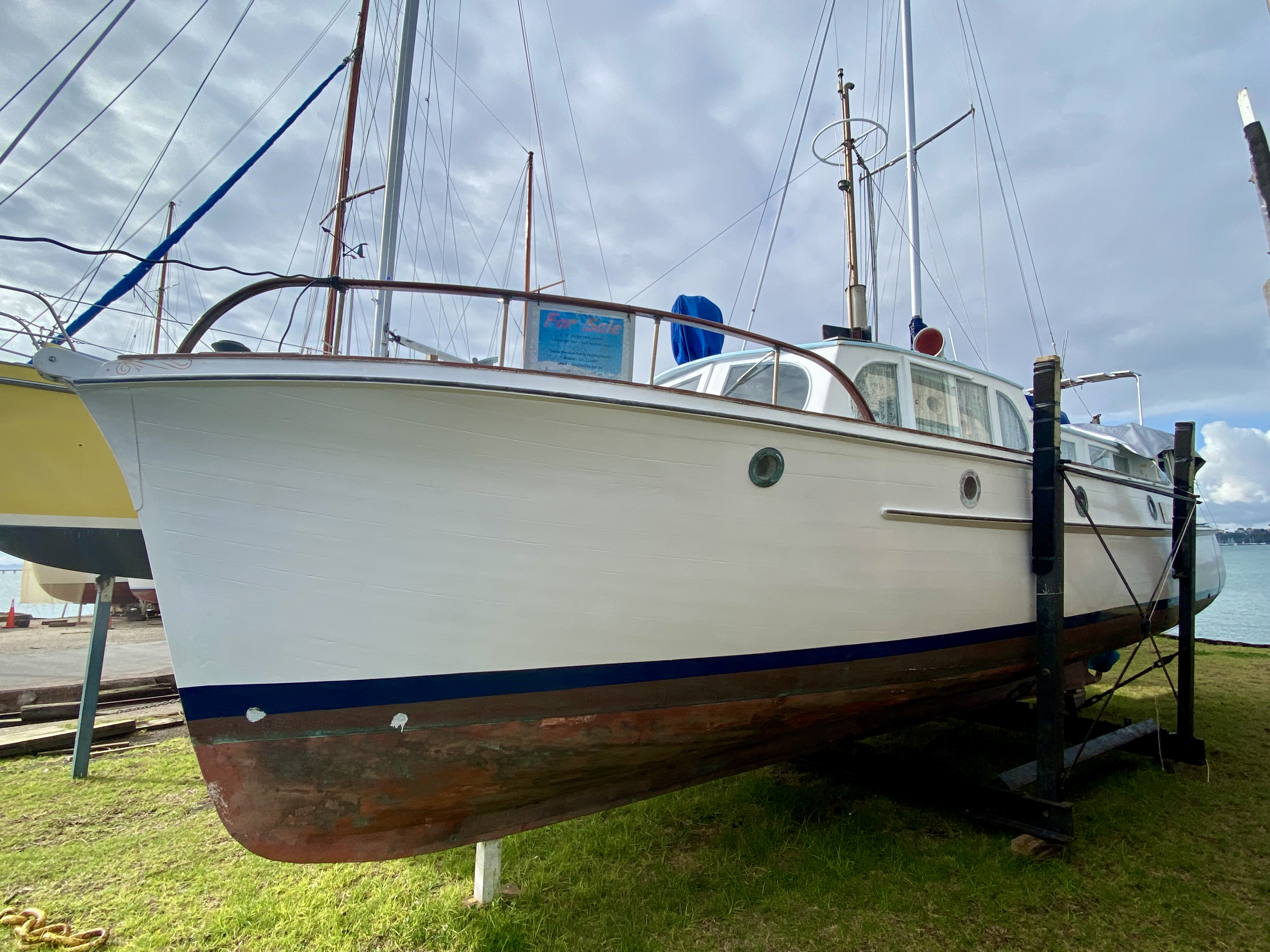 Records show in May 1980 she was sold to a Waipu farmer, Arthur Terry. Colin & Annie Mewburn have owned her since May 2004, having bought her off Arthur Terry, who was in hi 80’s at the time. The Mewburn’s motored her down to Whangaparaoa from One Tree Point Whangarei, where Terry had kept her. Terry told Colin M the Ford had 1000 hours on it when he got her in 1980. Home these days is the Wade River. (photos ex Colin Mewburn, Rod Steadman & Ken Ricketts)