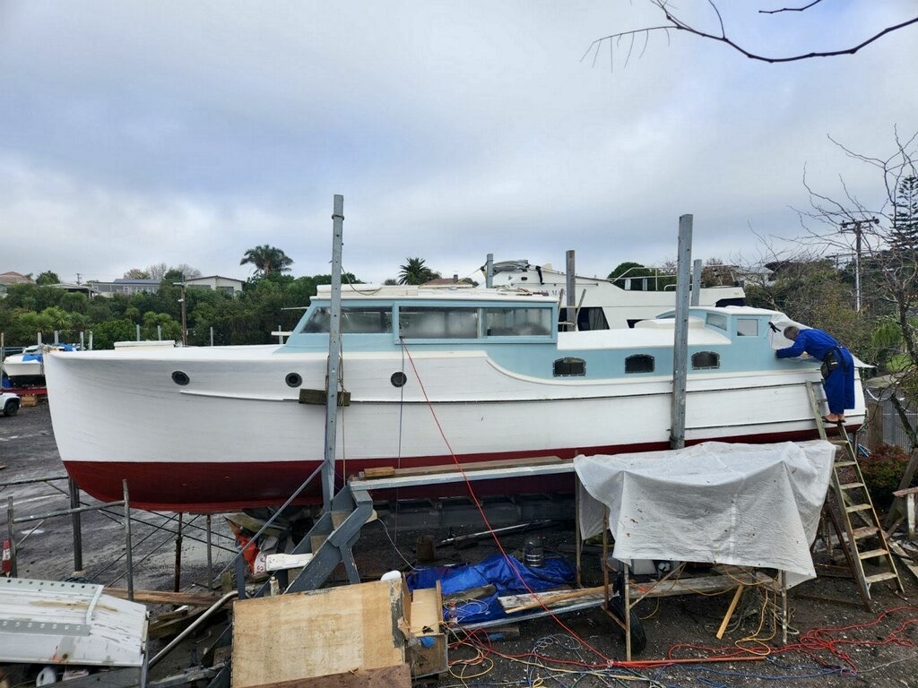 Ward House & Bob Stevenson  had their 1923 Ernie Harvey launch out recenty at Tamaki to take her underwater surface back to bare wood & treated with Chem Bar (the Altex equivalent of International Primercon), the topsides received a splash of paint as well- looking very sharp for a 90 year old.