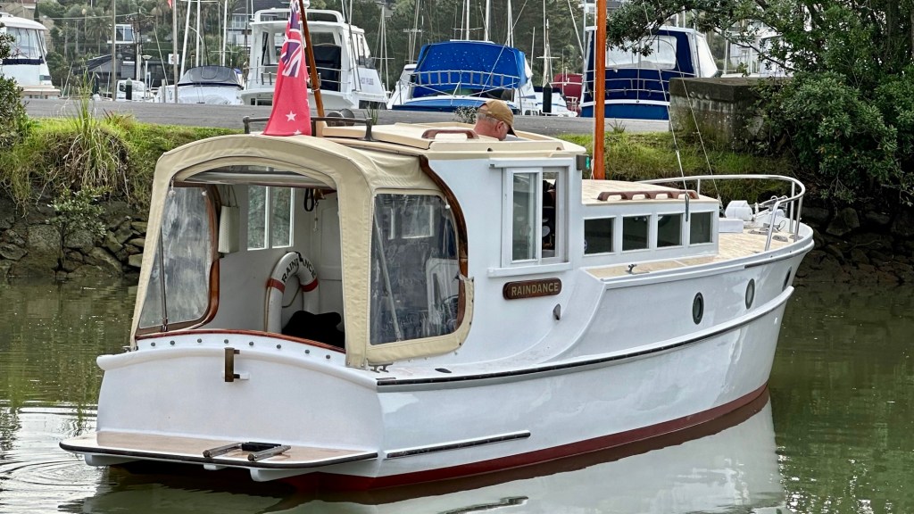 Several coming and goings mid-week – Raindance slid down the railway at the Slipway Milford. And then she passed Castaway being ‘assisted’ to the Slipway to take Raindance’s vacated spot. Probably the fastest Castaway has moved in a while 🙂 Video of Raindance ex WW cadet reporter Luca Beachman. Now if some of you are thinking – “didn’t Raindance have a paint job less than two years ago” – yes you are correct. I could say that Jason Prew and myself were never 100% happy with the colour – Snow White’ on a classic woody and that the new ‘ Mediterranean White’ is a better look, while there some truth in that, the old girl suffered some hull damage on the marina in one of the many storms Auckland has had, so that is the real reason 🙂
