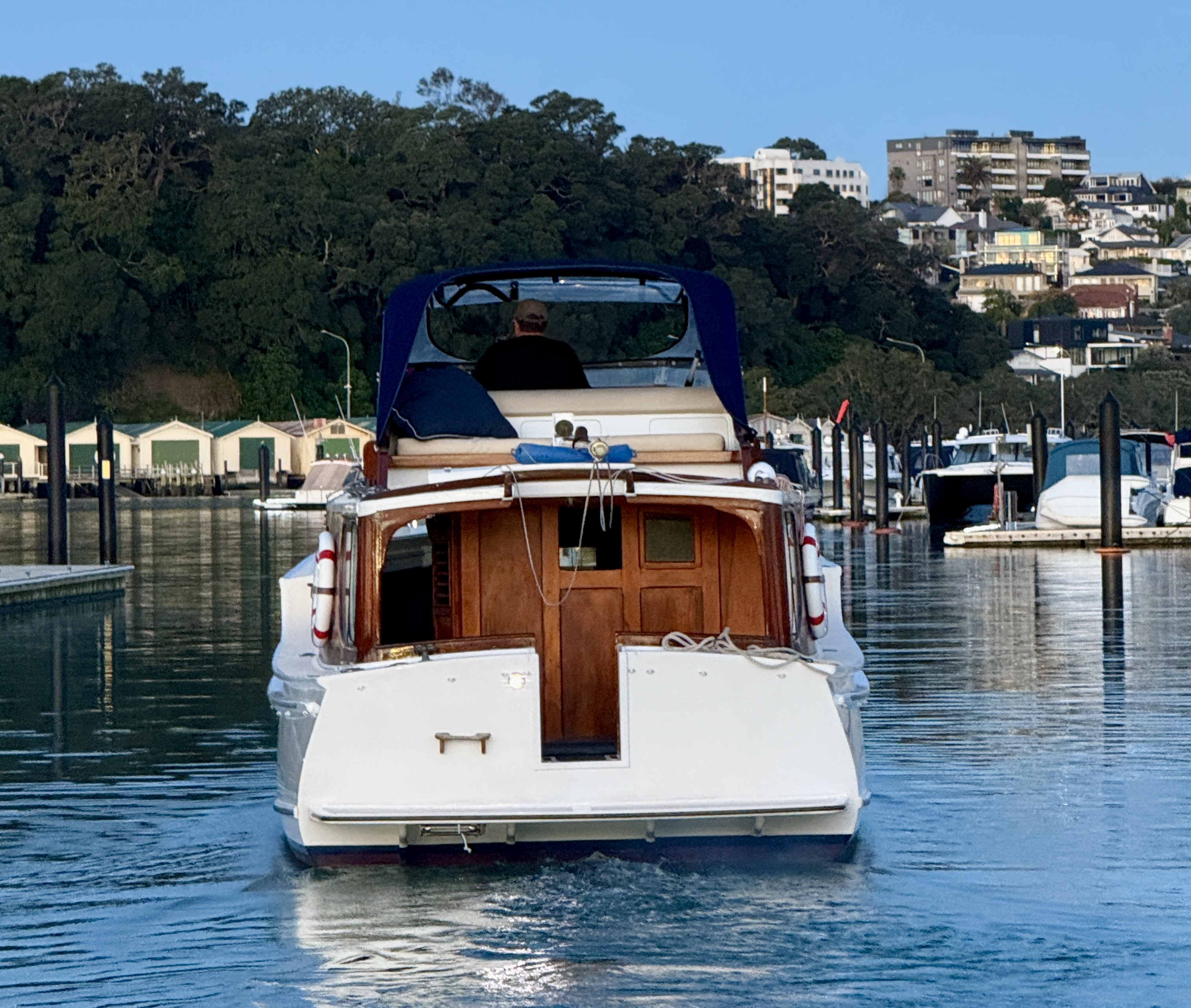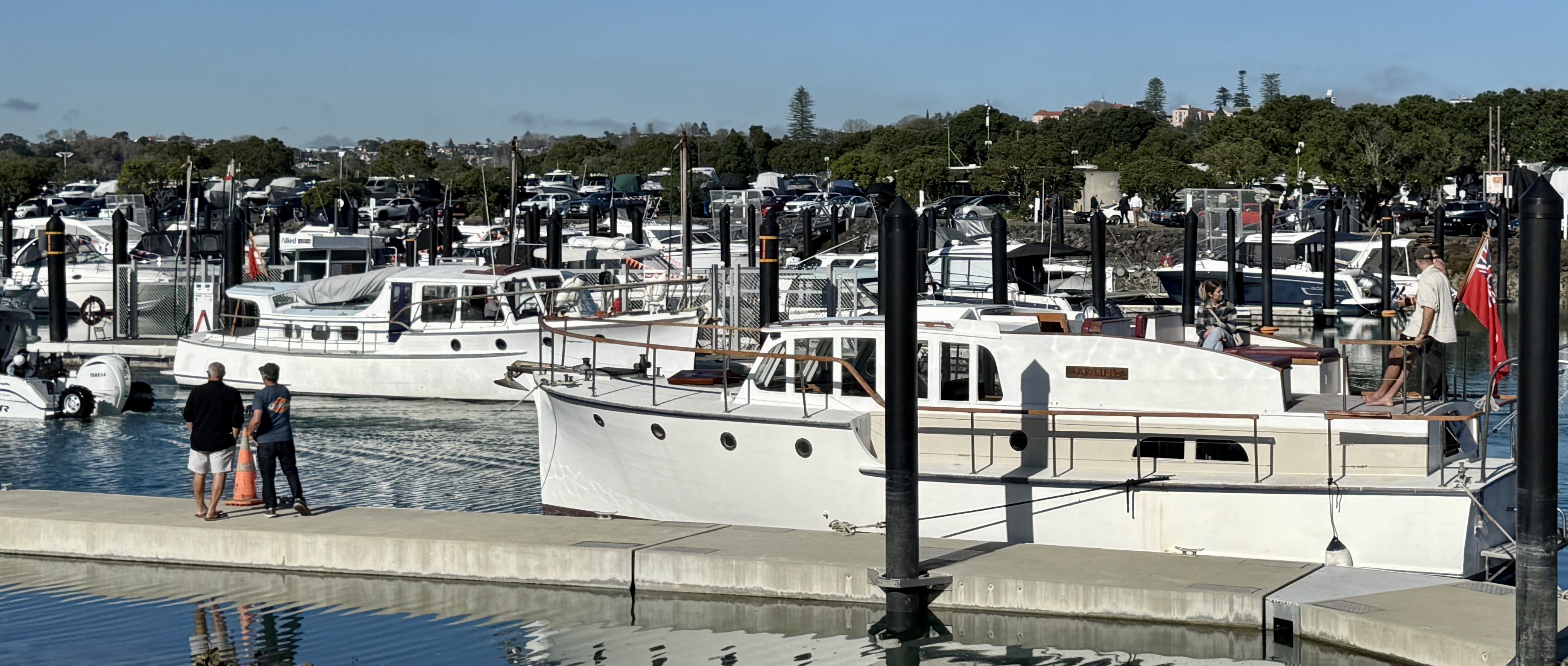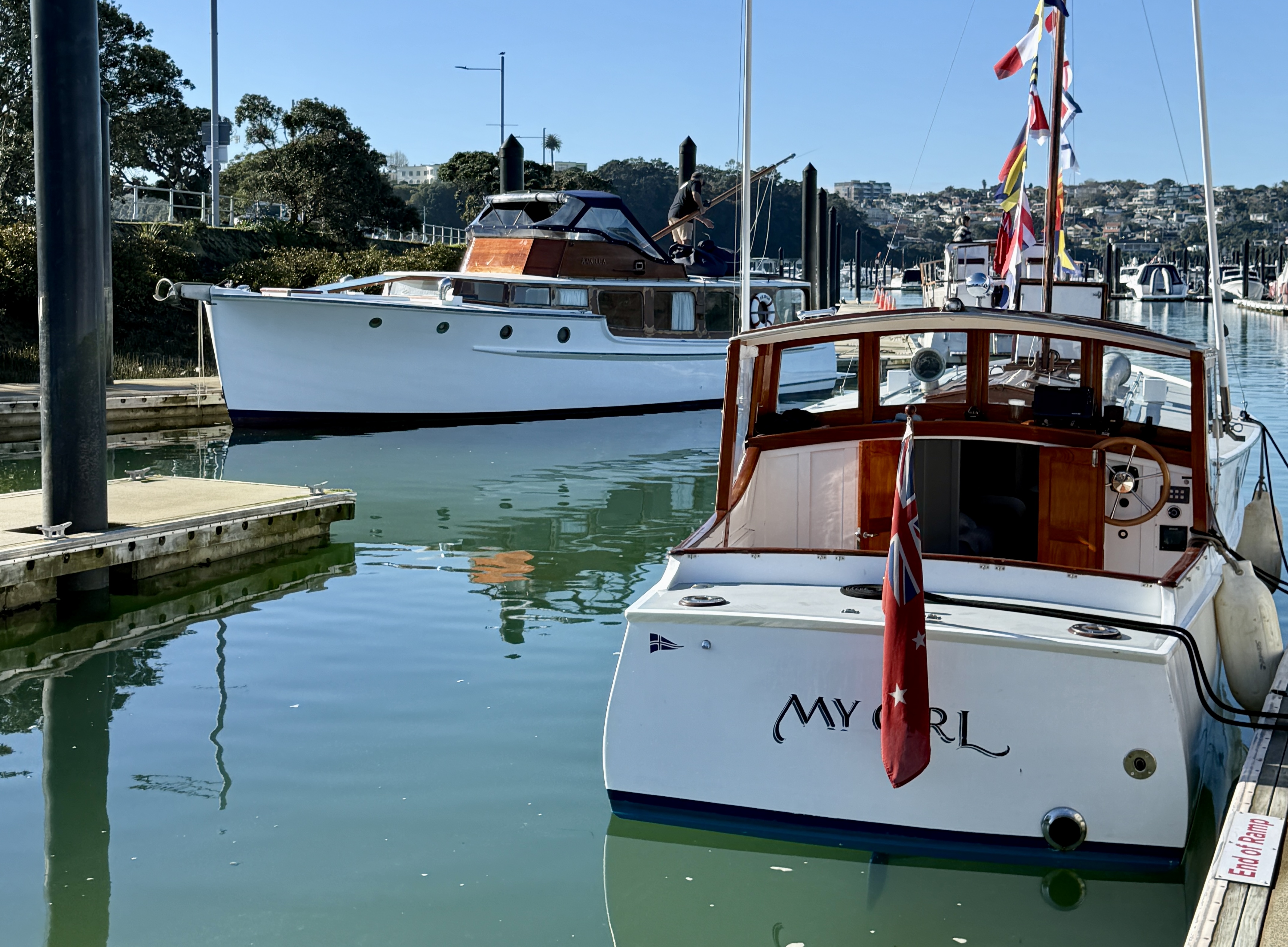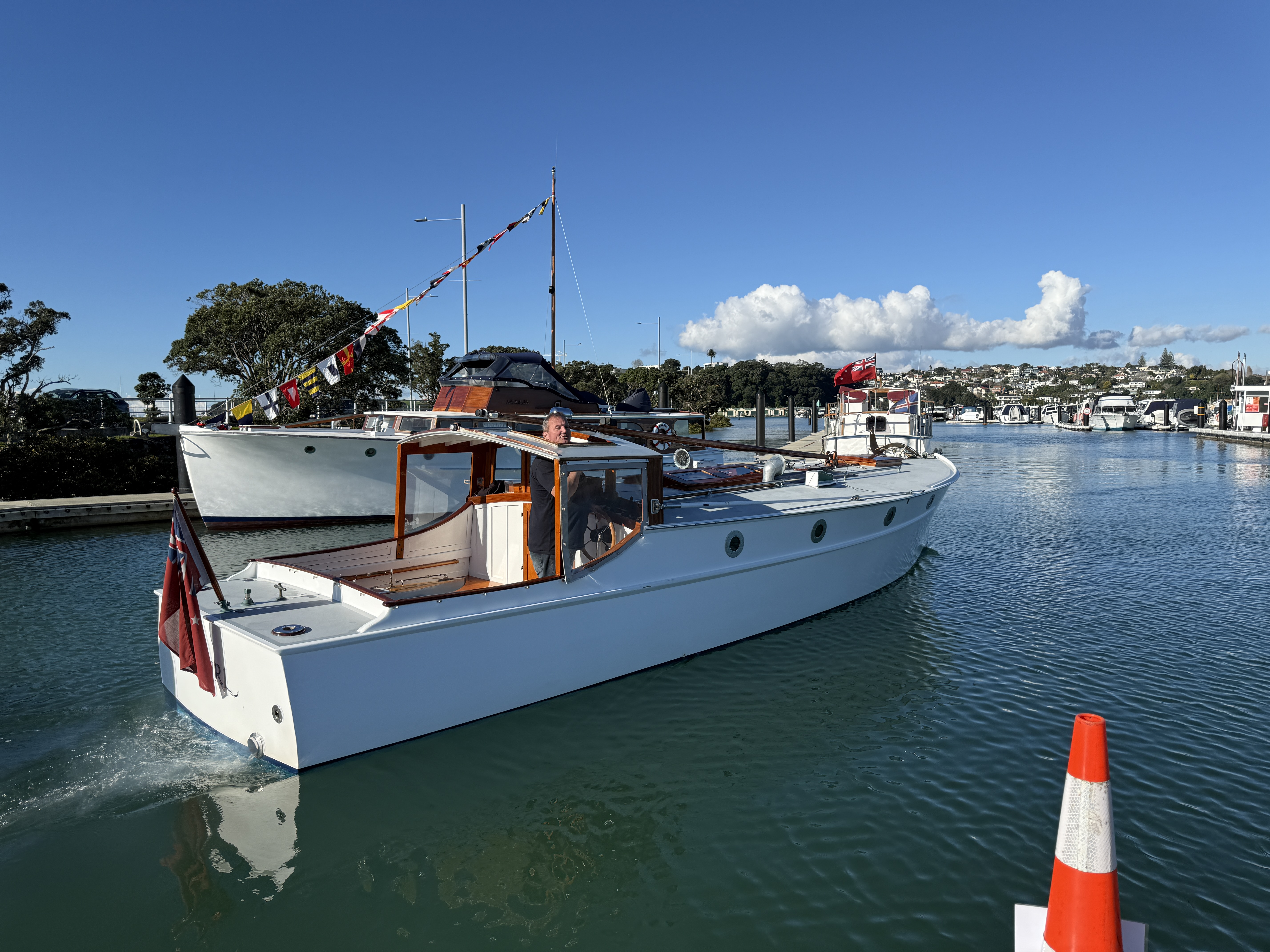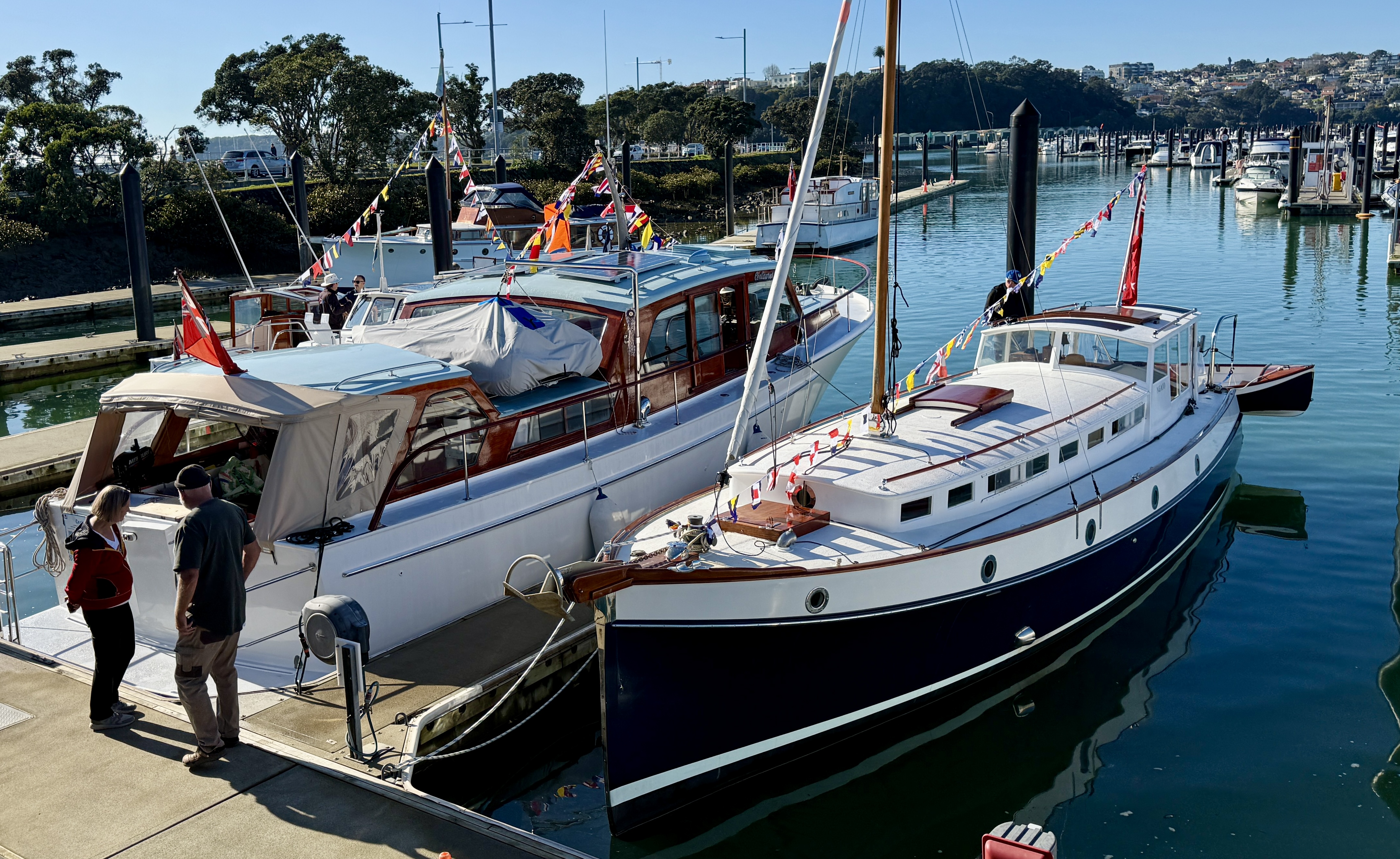 Sunday’s Woodys Classic Parade was the visual highlight of the weekend, showcasing a handsome flotilla of 17 classic launches for all those anchored in Bon Accord Harbour and watching from waterfront properties. Aside from a brief 10-minute burst of H₂O at the start, the weather came right and the parade looked spectacular.