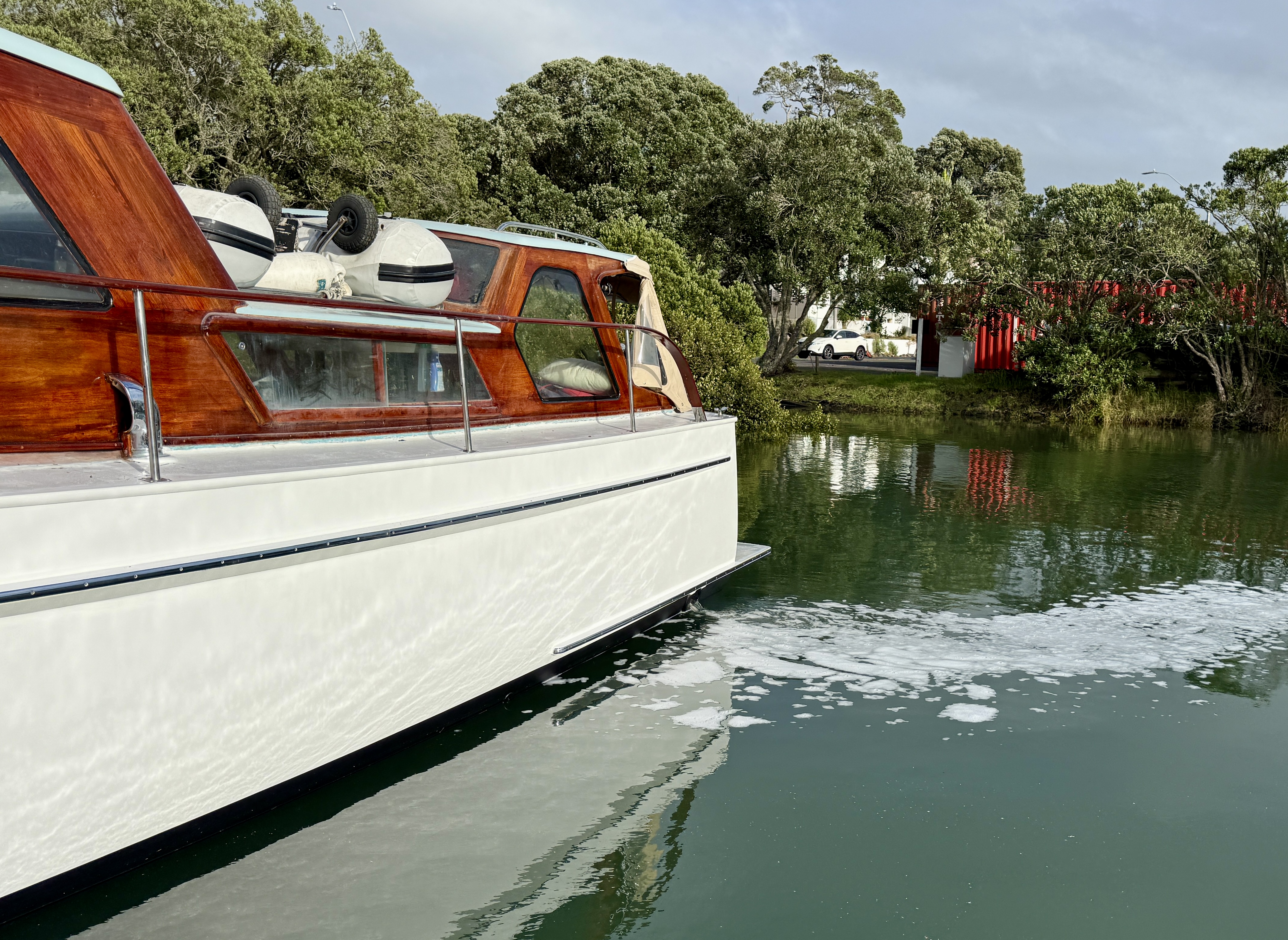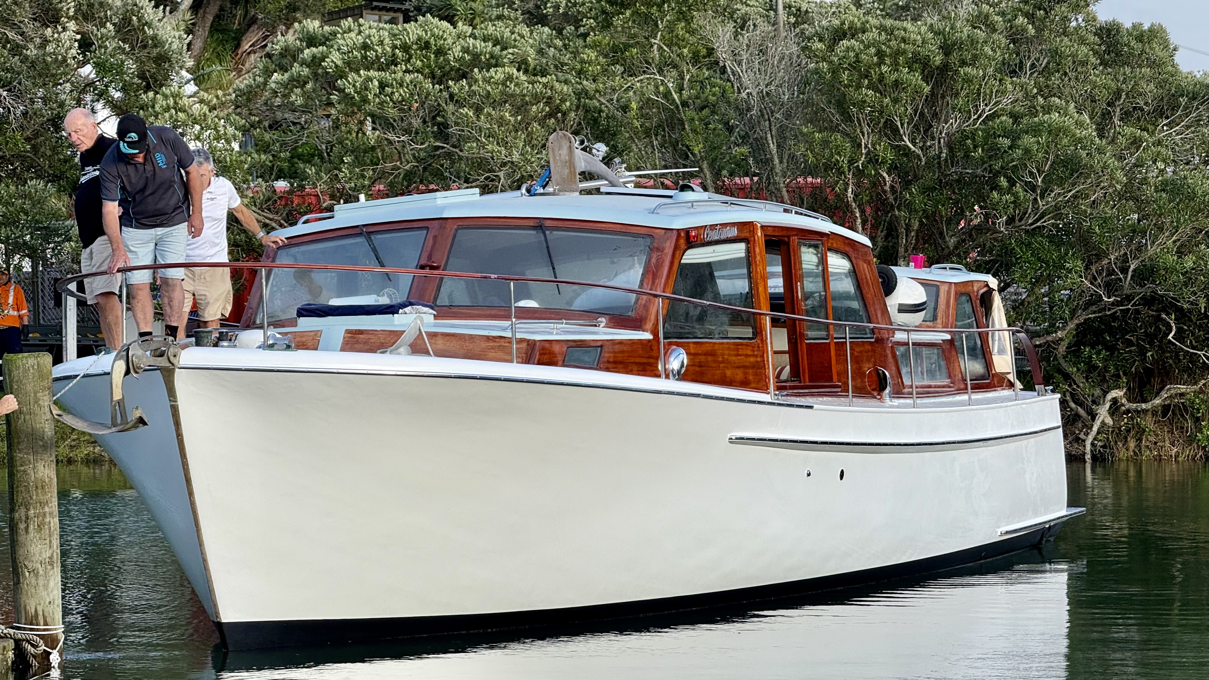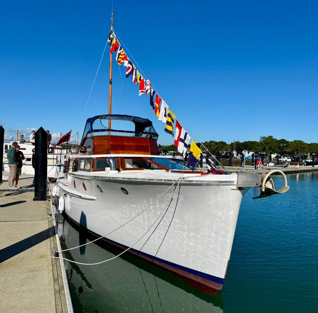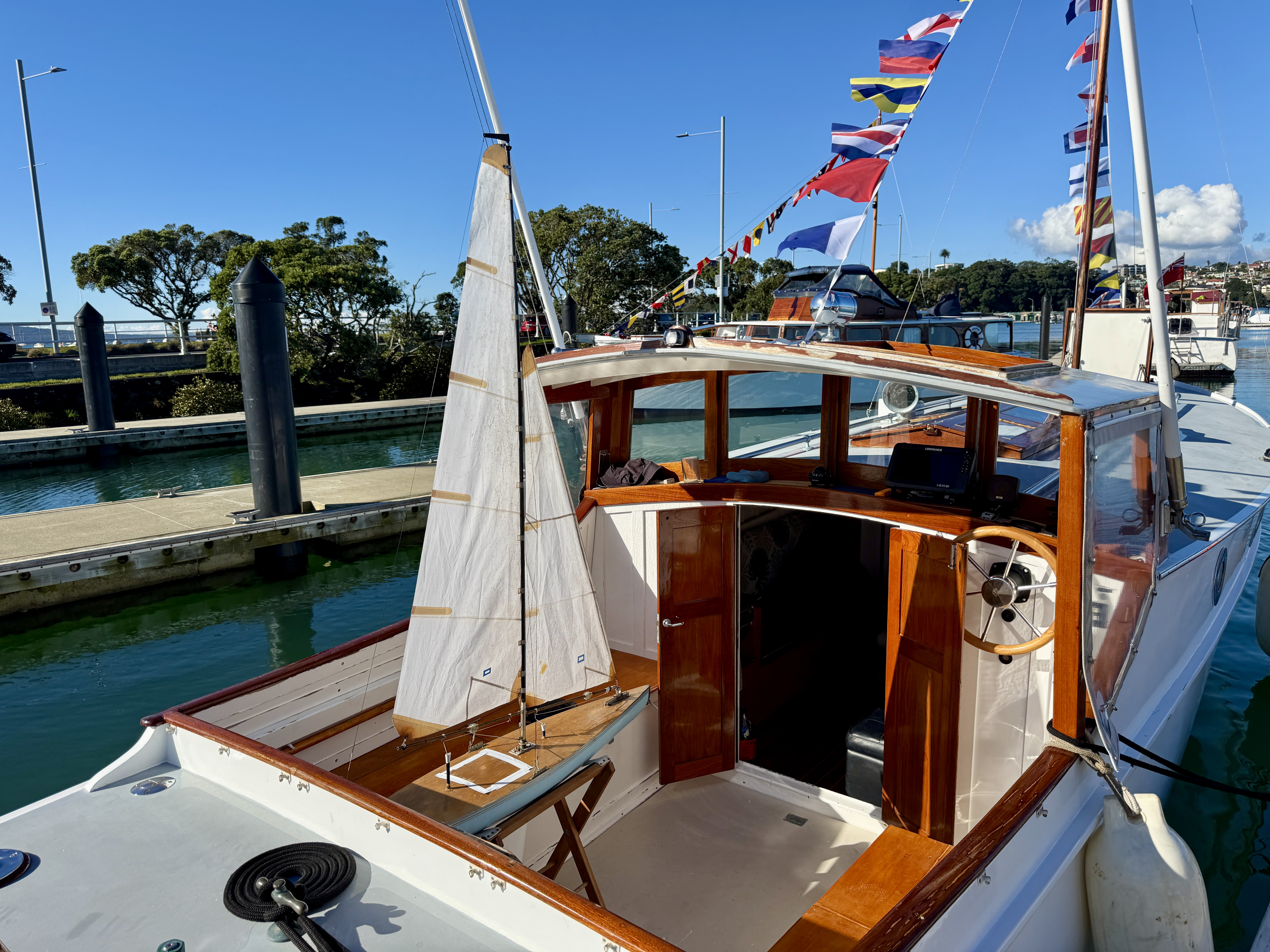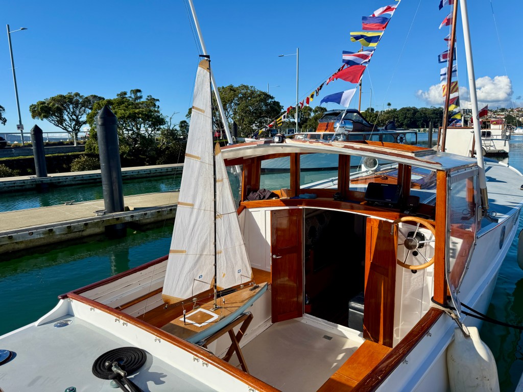 Sunday’s Woodys Classic Parade was the visual highlight of the weekend, showcasing a handsome flotilla of 17 classic launches for all those anchored in Bon Accord Harbour and watching from waterfront properties. Aside from a brief 10-minute burst of H₂O at the start, the weather came right and the parade looked spectacular.