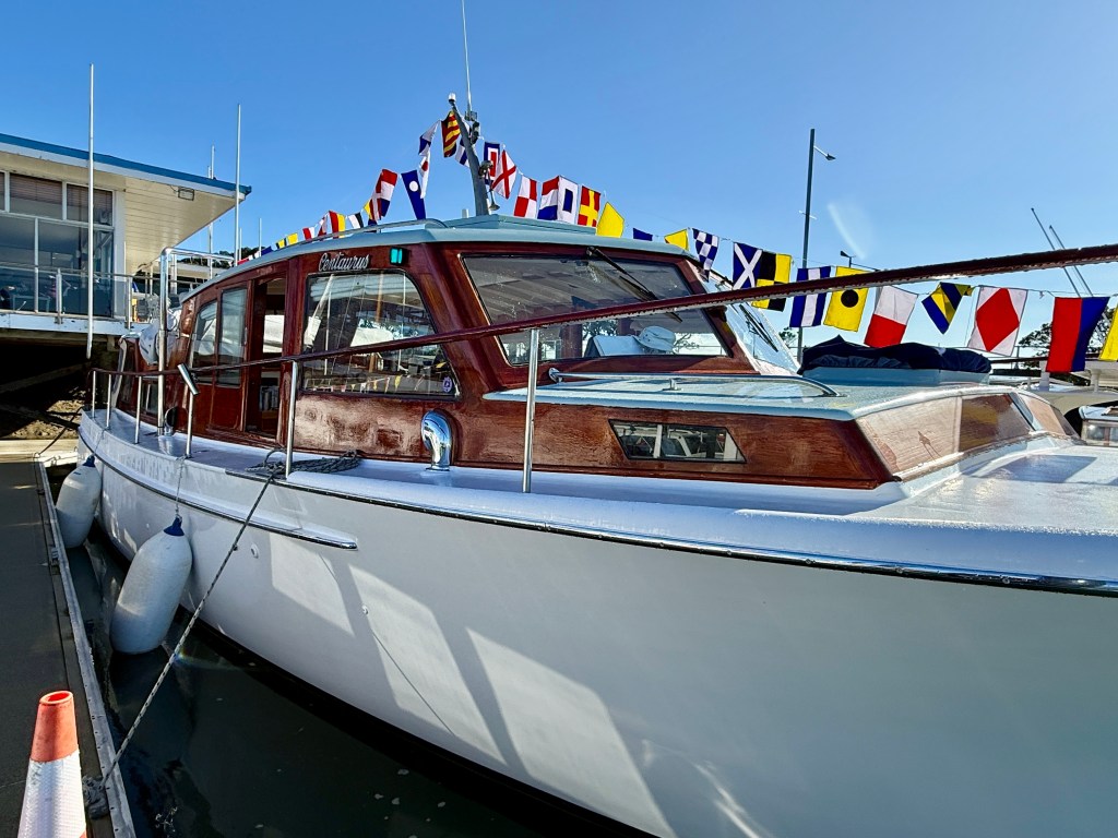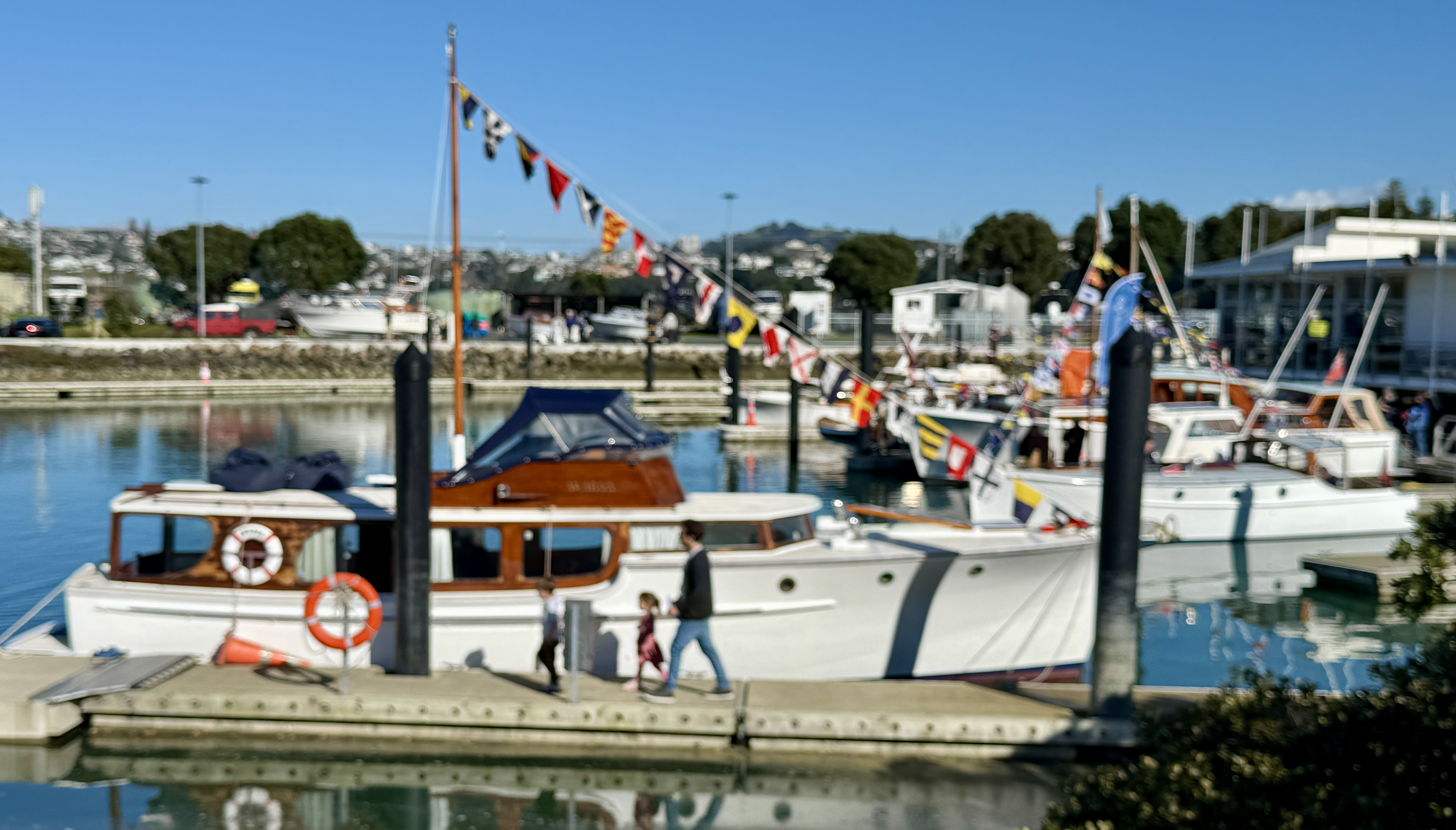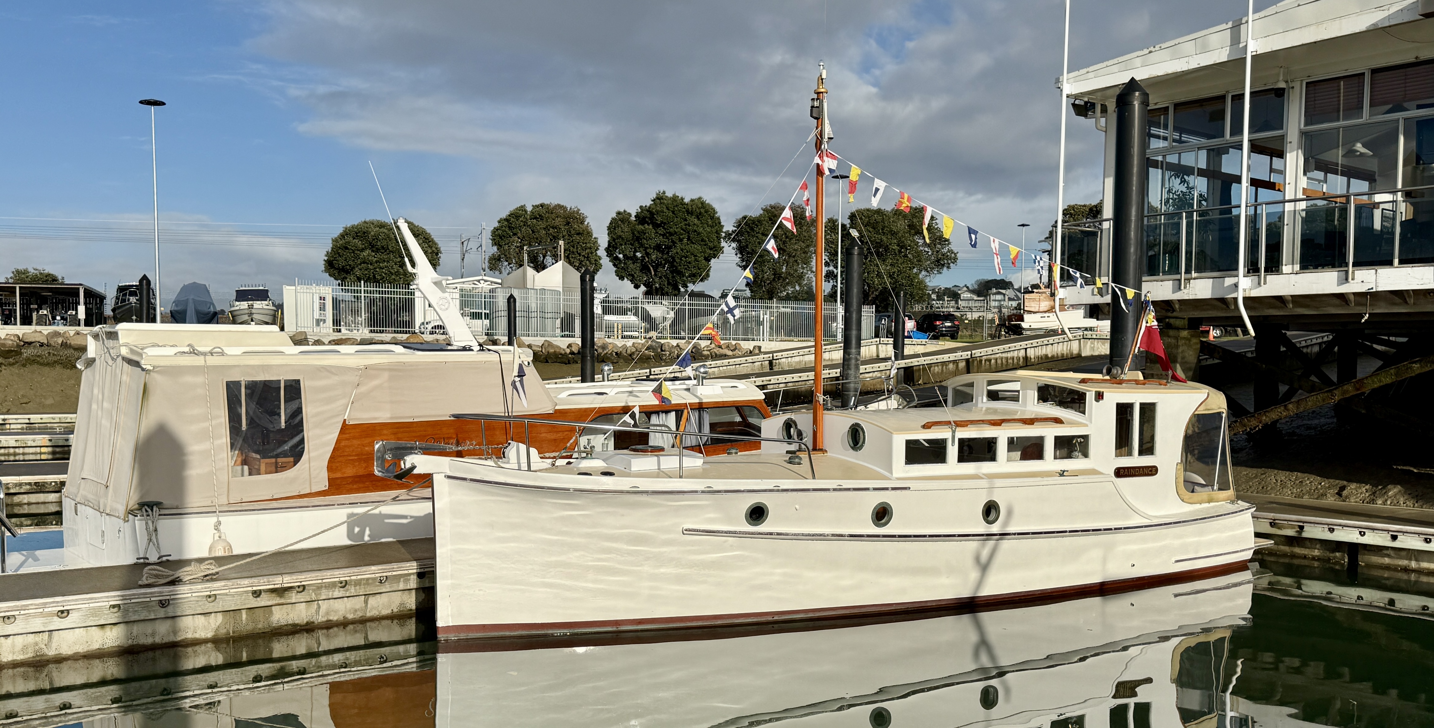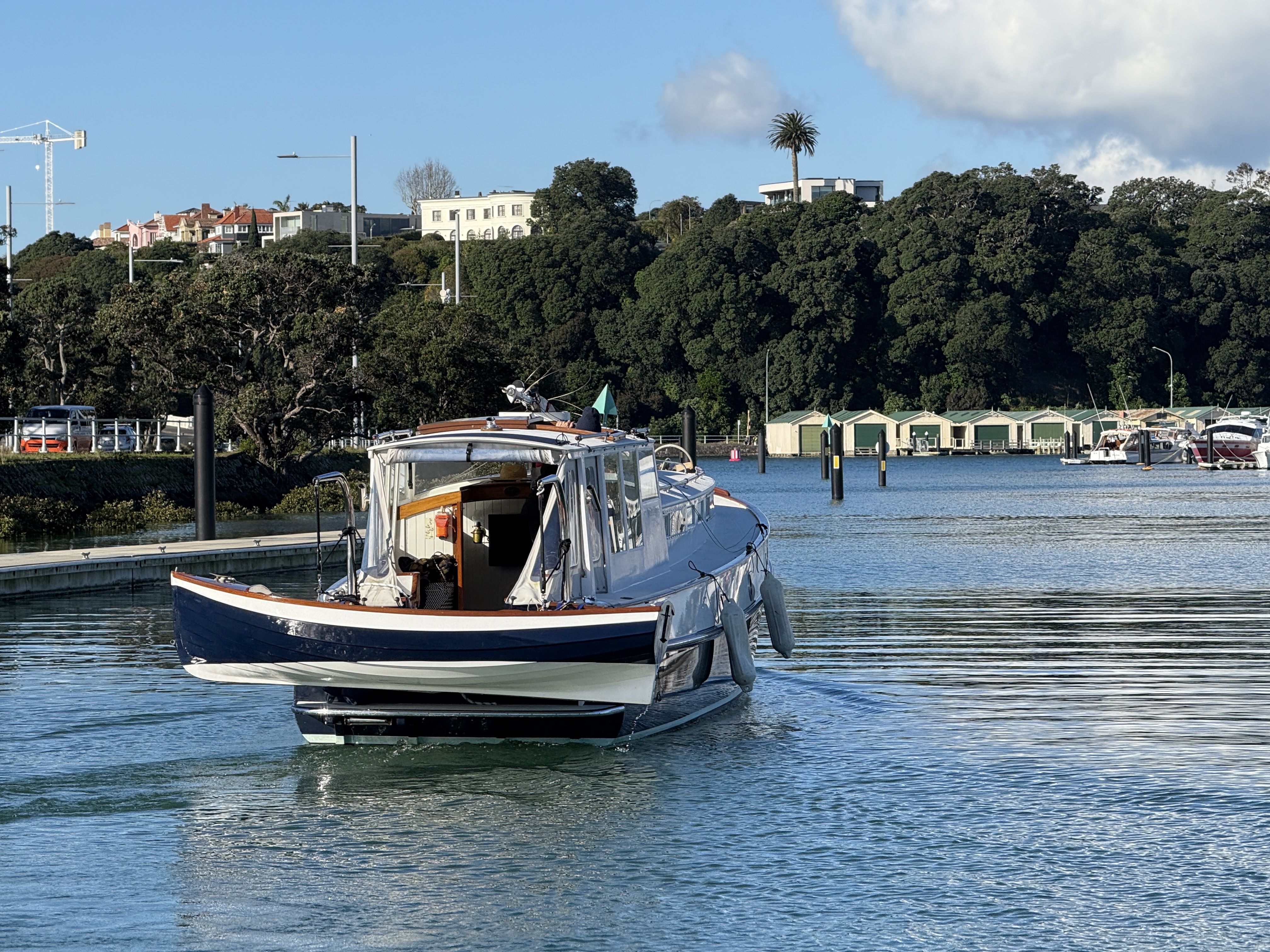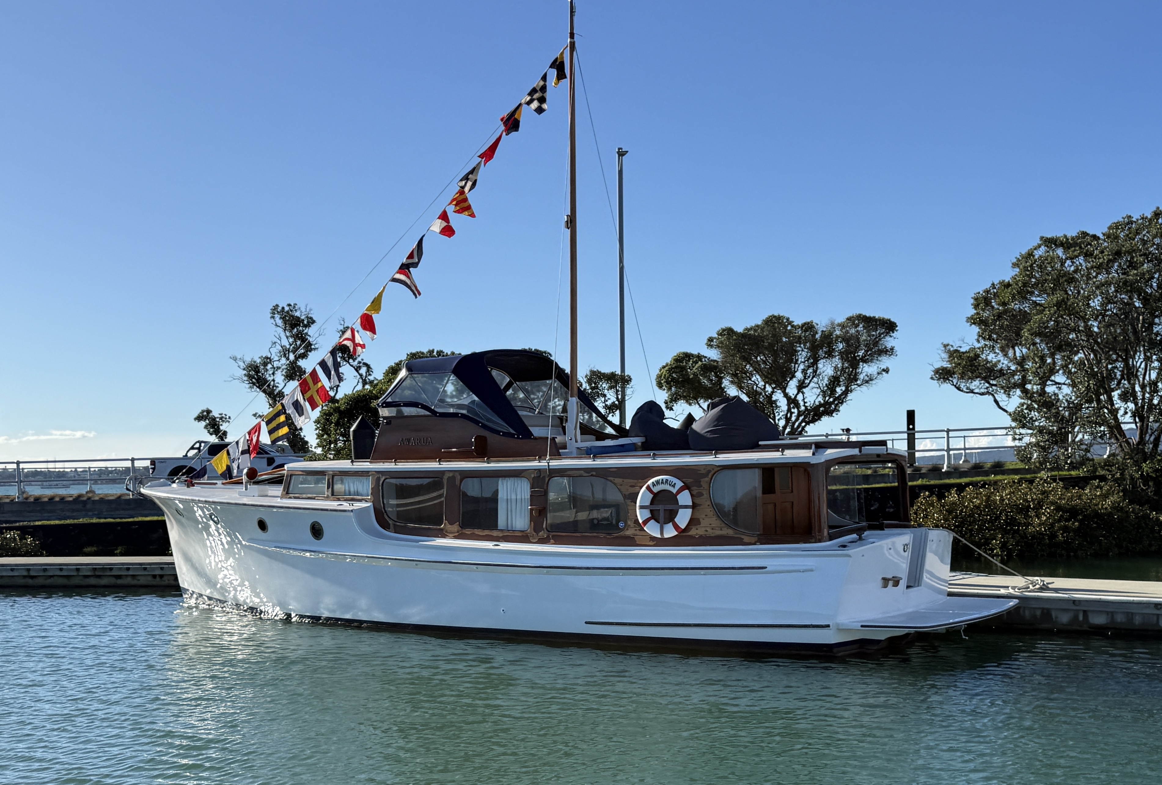 Sunday’s Woodys Classic Parade was the visual highlight of the weekend, showcasing a handsome flotilla of 17 classic launches for all those anchored in Bon Accord Harbour and watching from waterfront properties. Aside from a brief 10-minute burst of H₂O at the start, the weather came right and the parade looked spectacular.