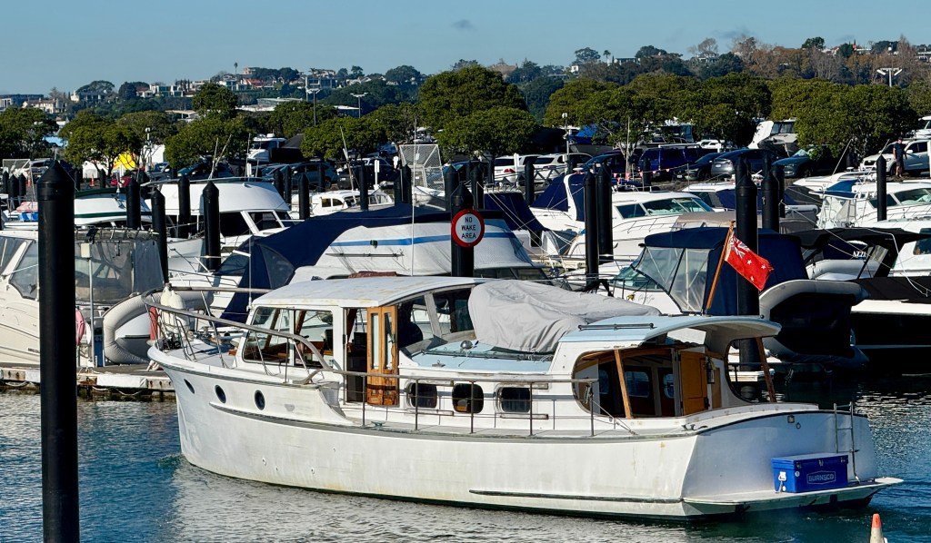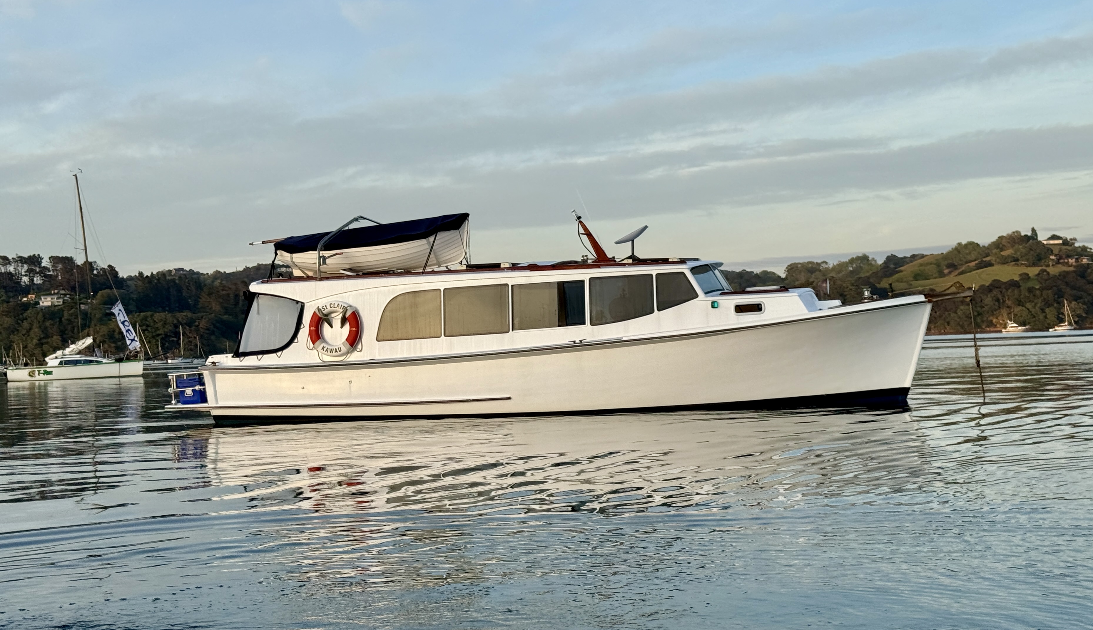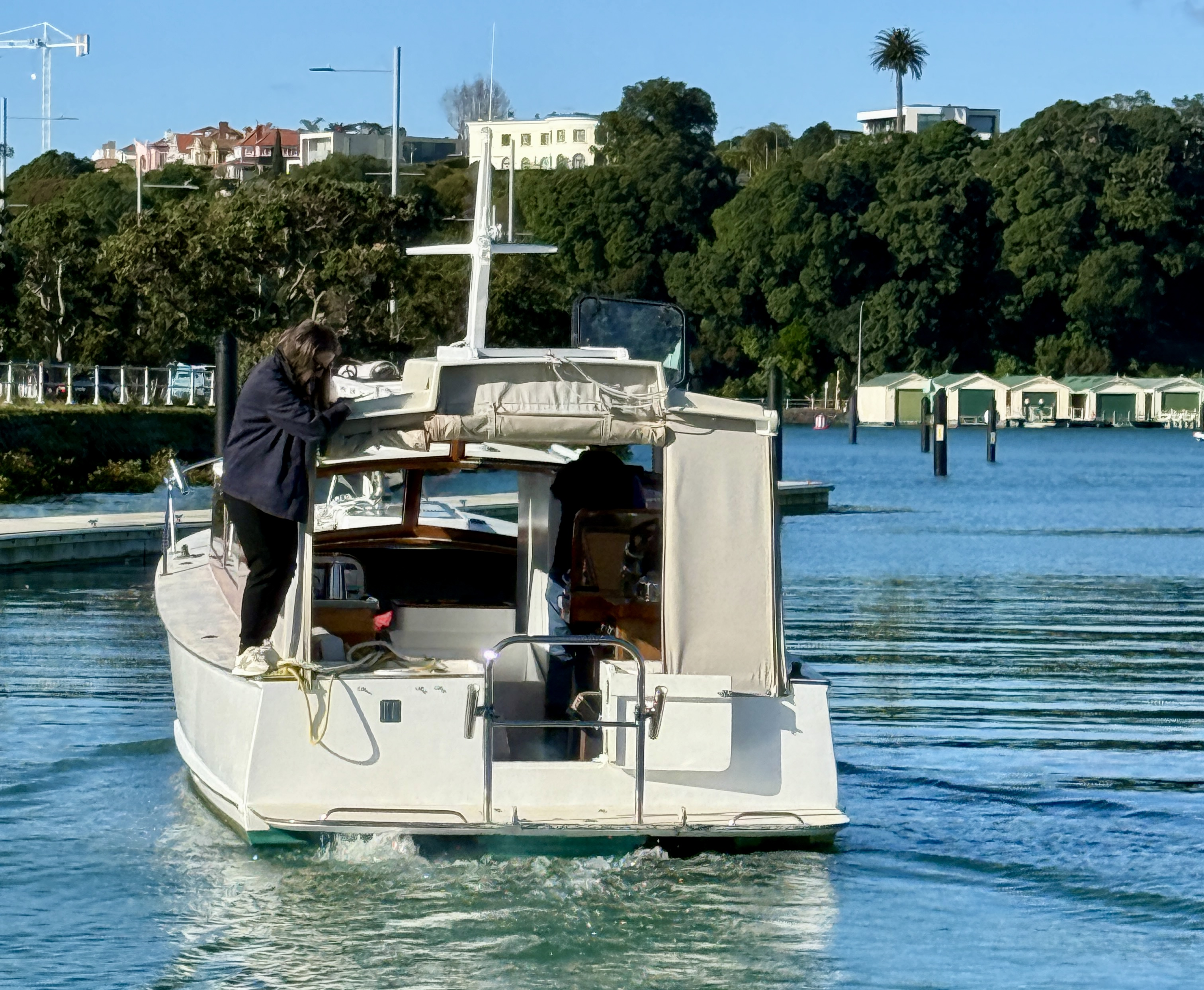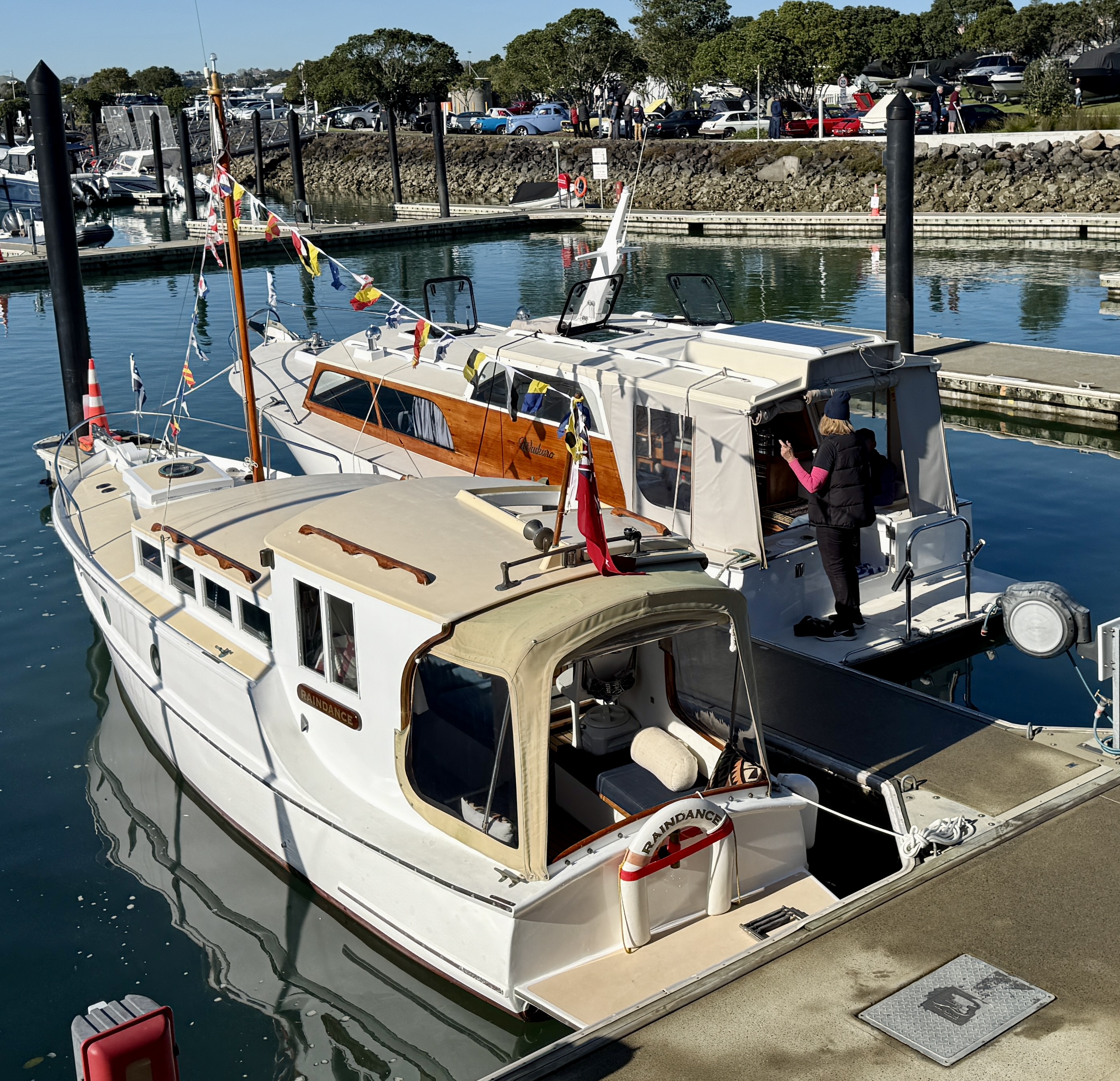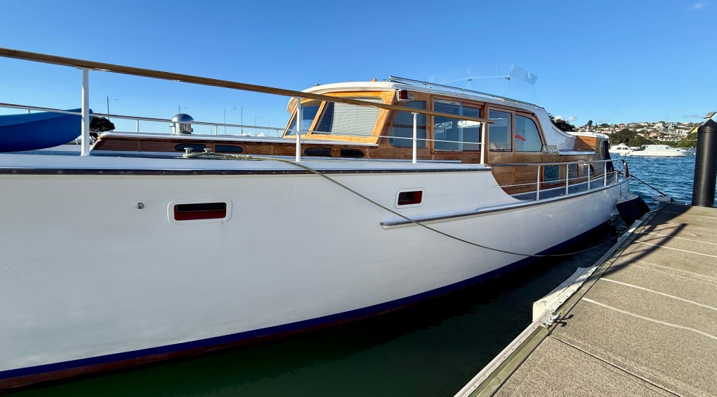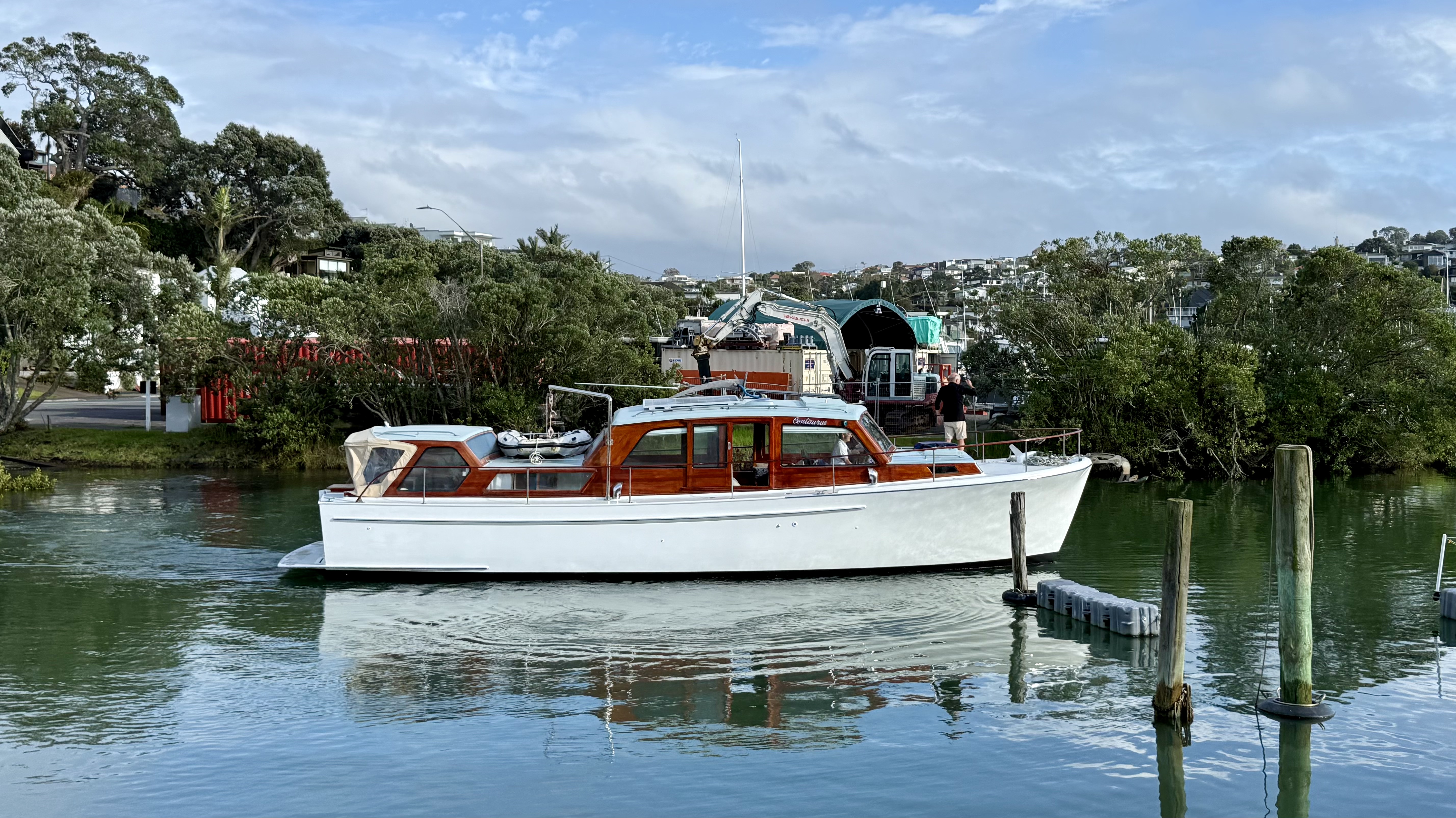 Sunday’s Woodys Classic Parade was the visual highlight of the weekend, showcasing a handsome flotilla of 17 classic launches for all those anchored in Bon Accord Harbour and watching from waterfront properties. Aside from a brief 10-minute burst of H₂O at the start, the weather came right and the parade looked spectacular.