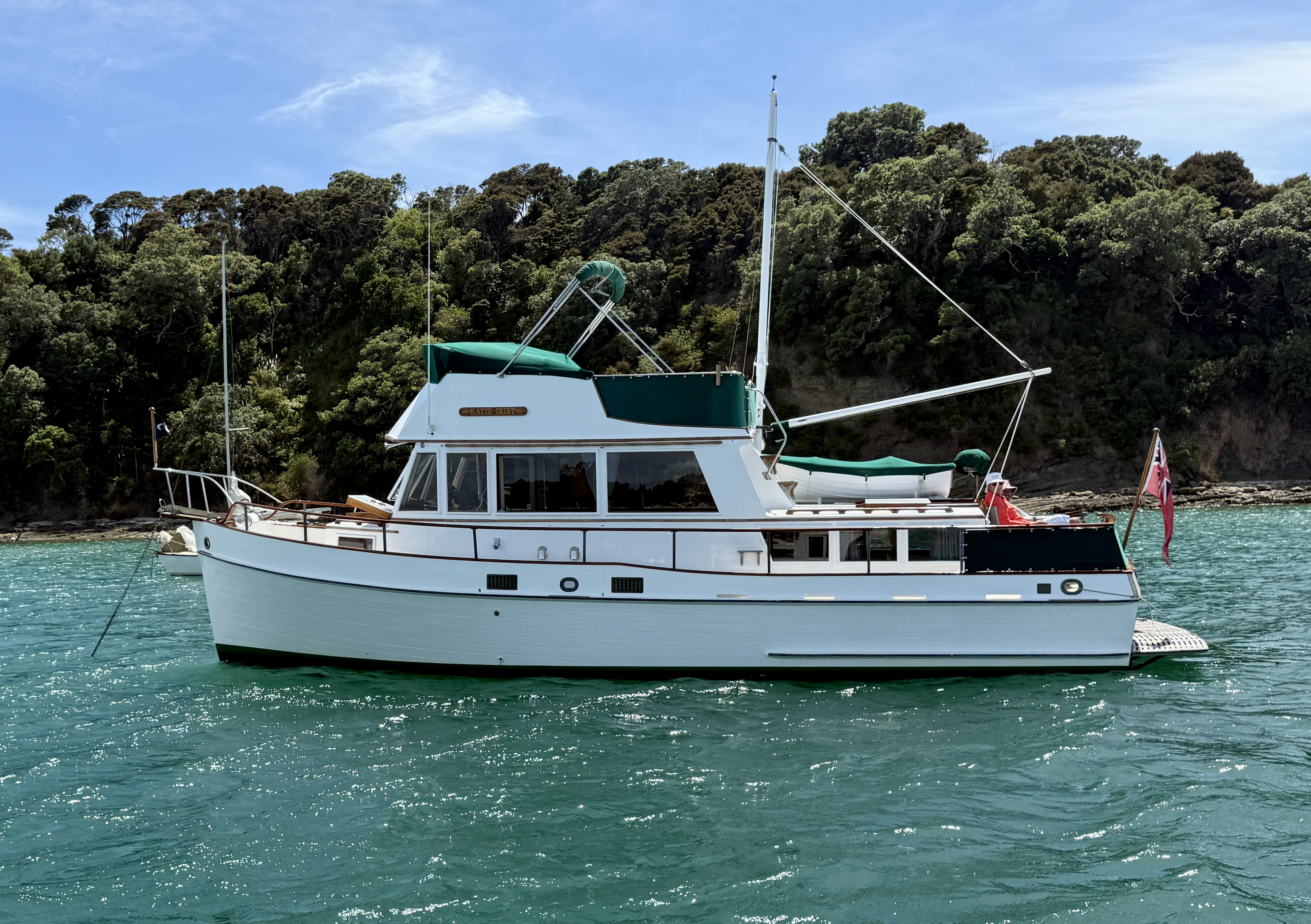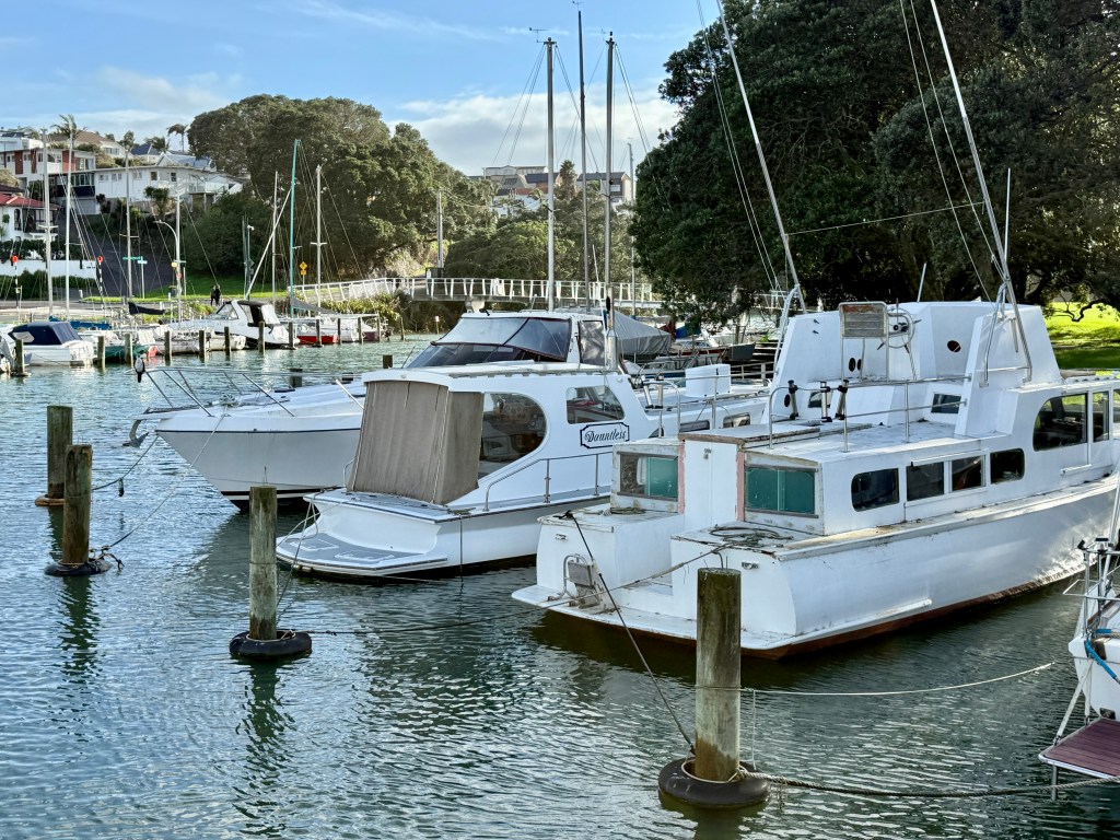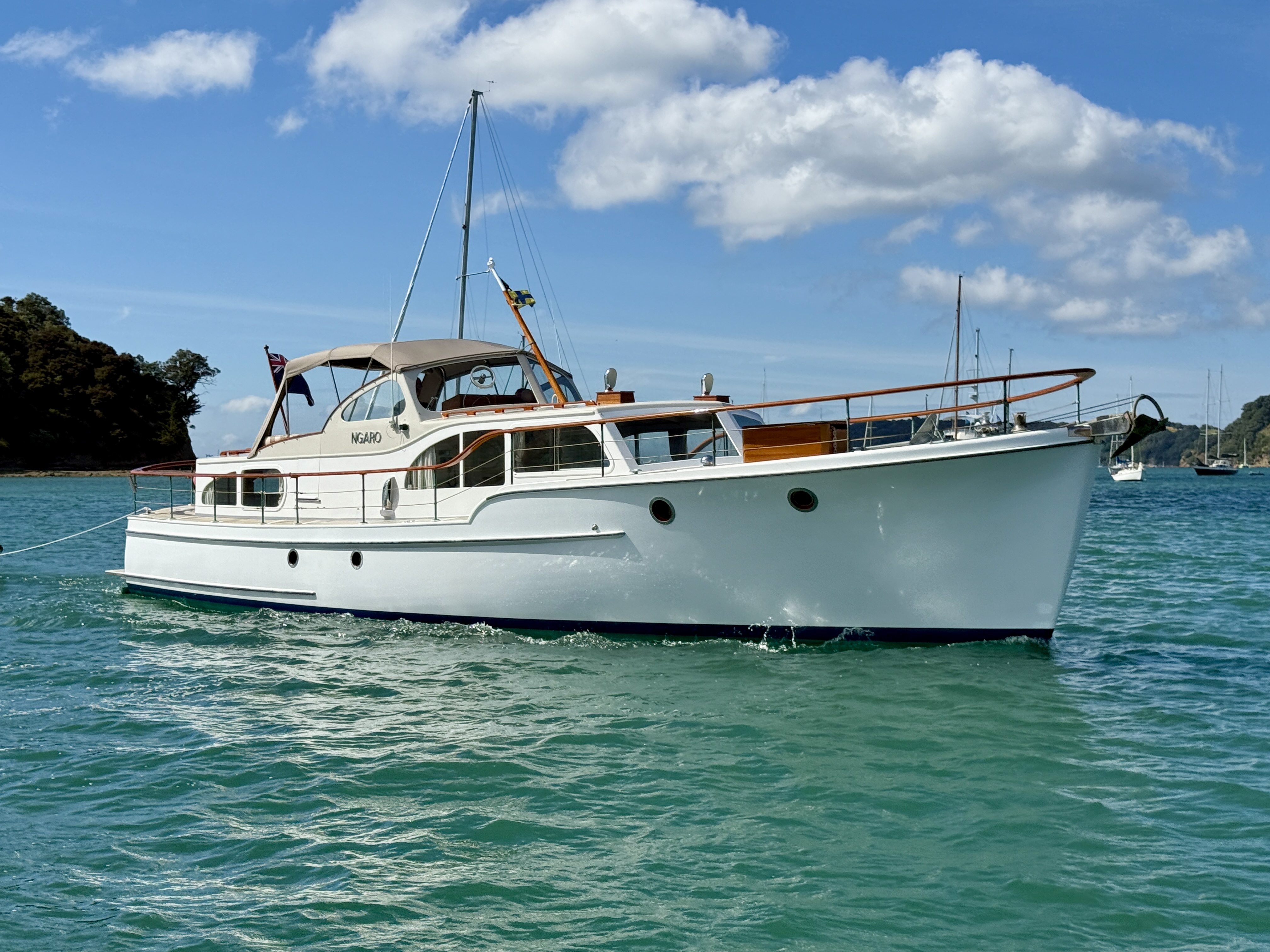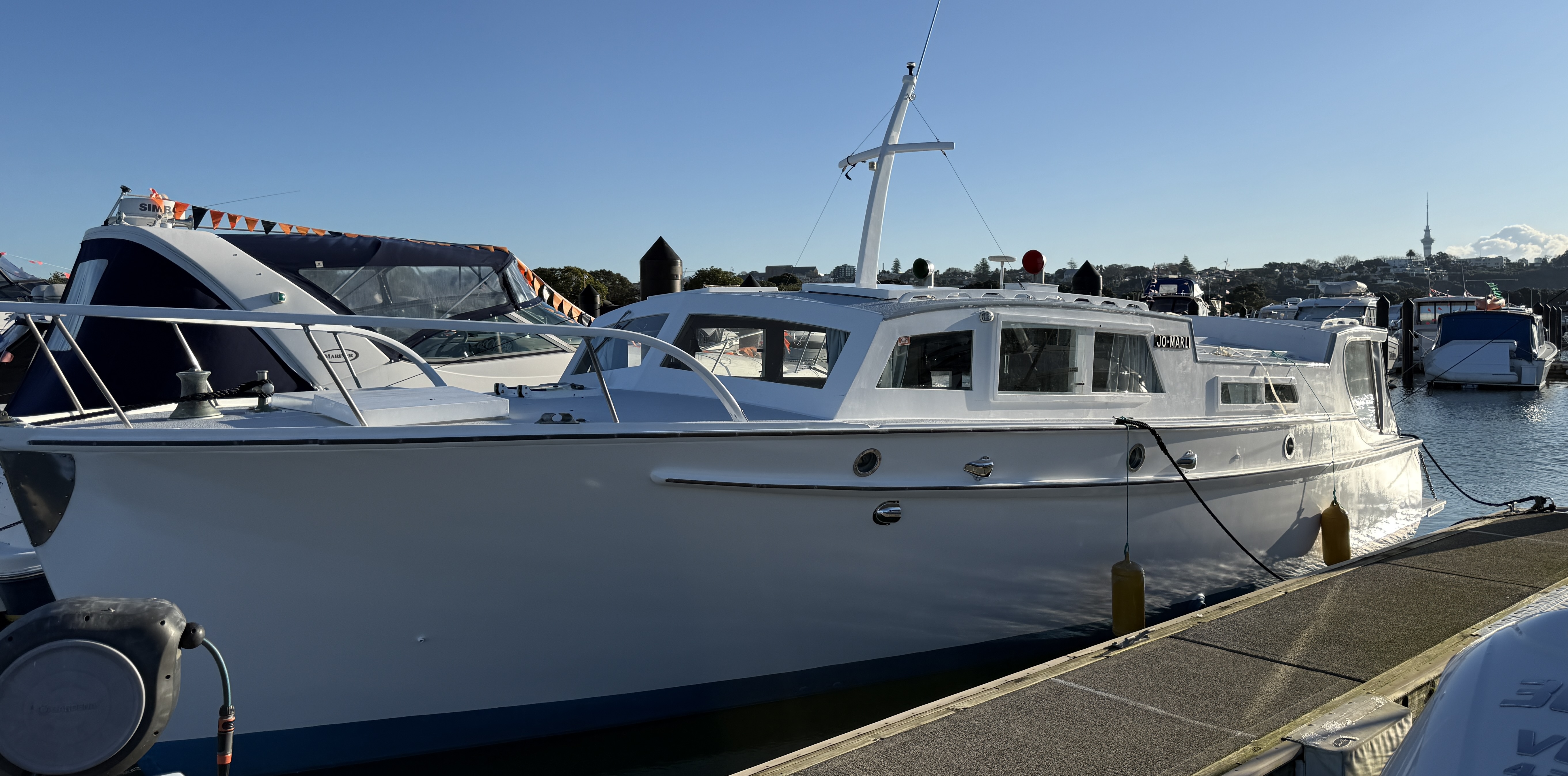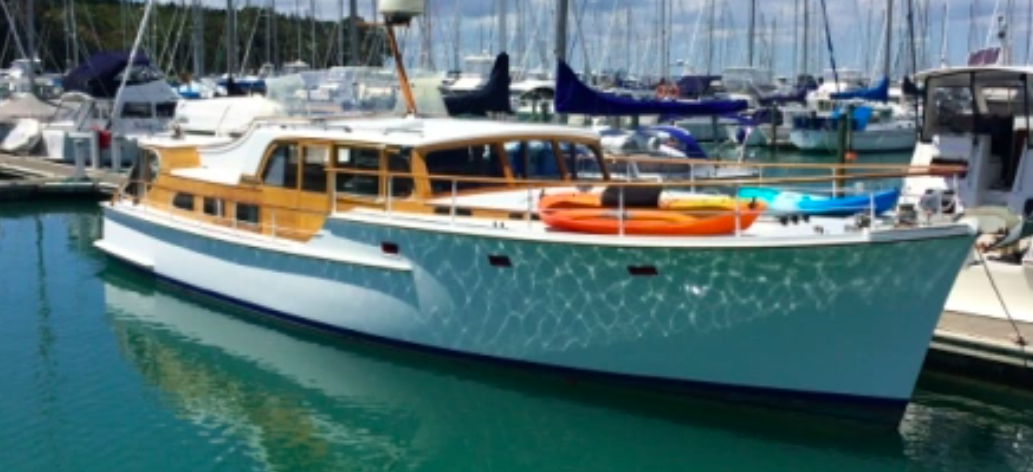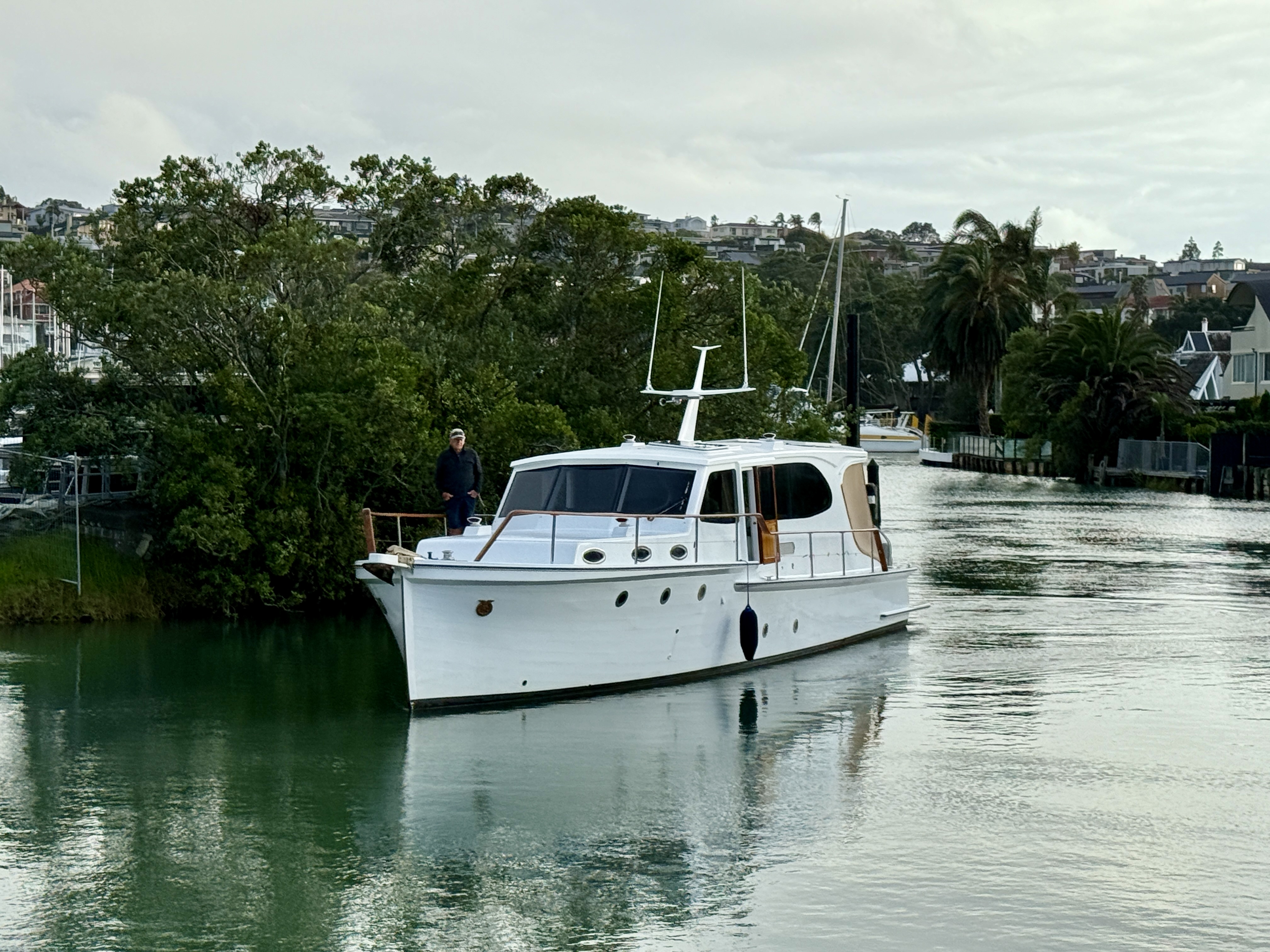Sunday’s Woodys Classic Parade was the visual highlight of the weekend, showcasing a handsome flotilla of 17 classic launches for all those anchored in Bon Accord Harbour and watching from waterfront properties. Aside from a brief 10-minute burst of H₂O at the start, the weather came right and the parade looked spectacular.