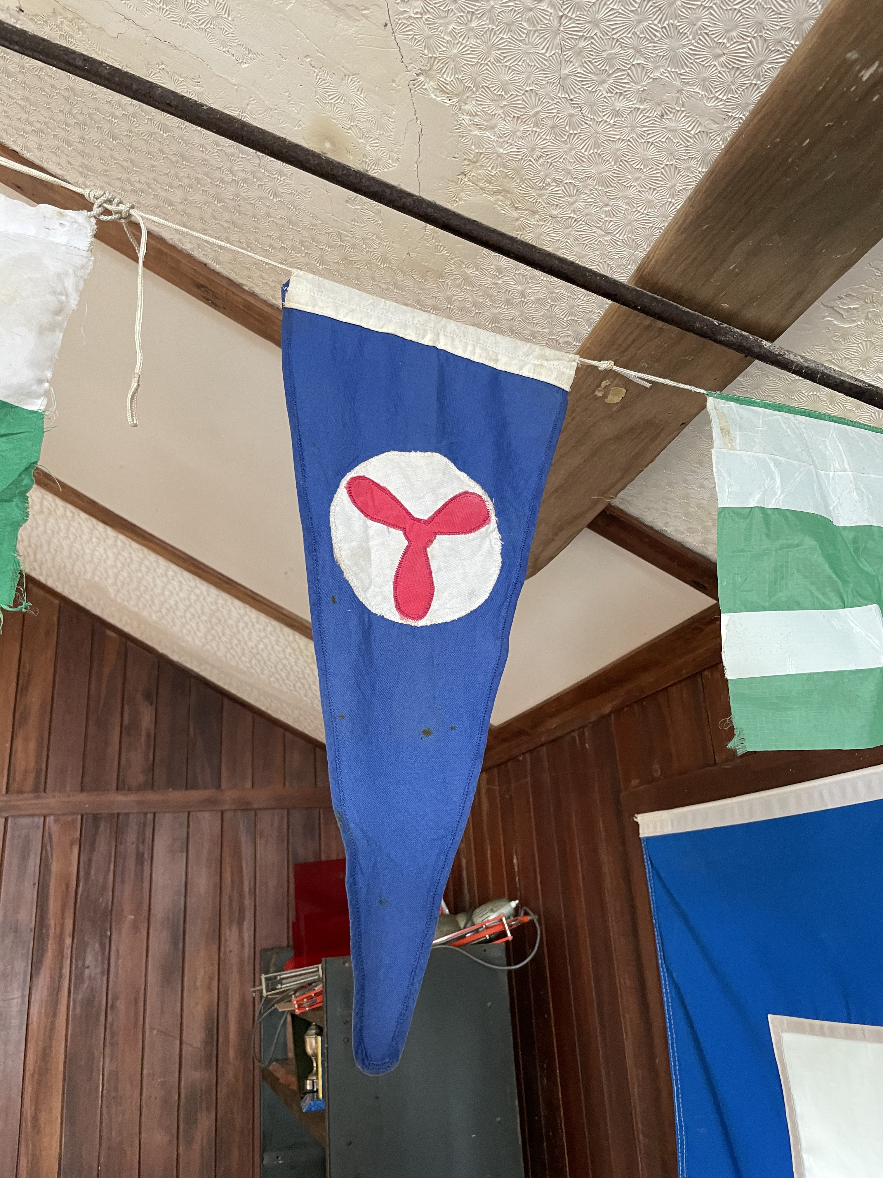 I had a full dance card yesterday, so only stayed for the start of the ‘bigger’ boats race. A little overcast but as I was leaving the sun came out and the wind picked up.Spotted an original burgee from the Auckland Motorboat Club handing from the rafters – you do not see many of those around these days.