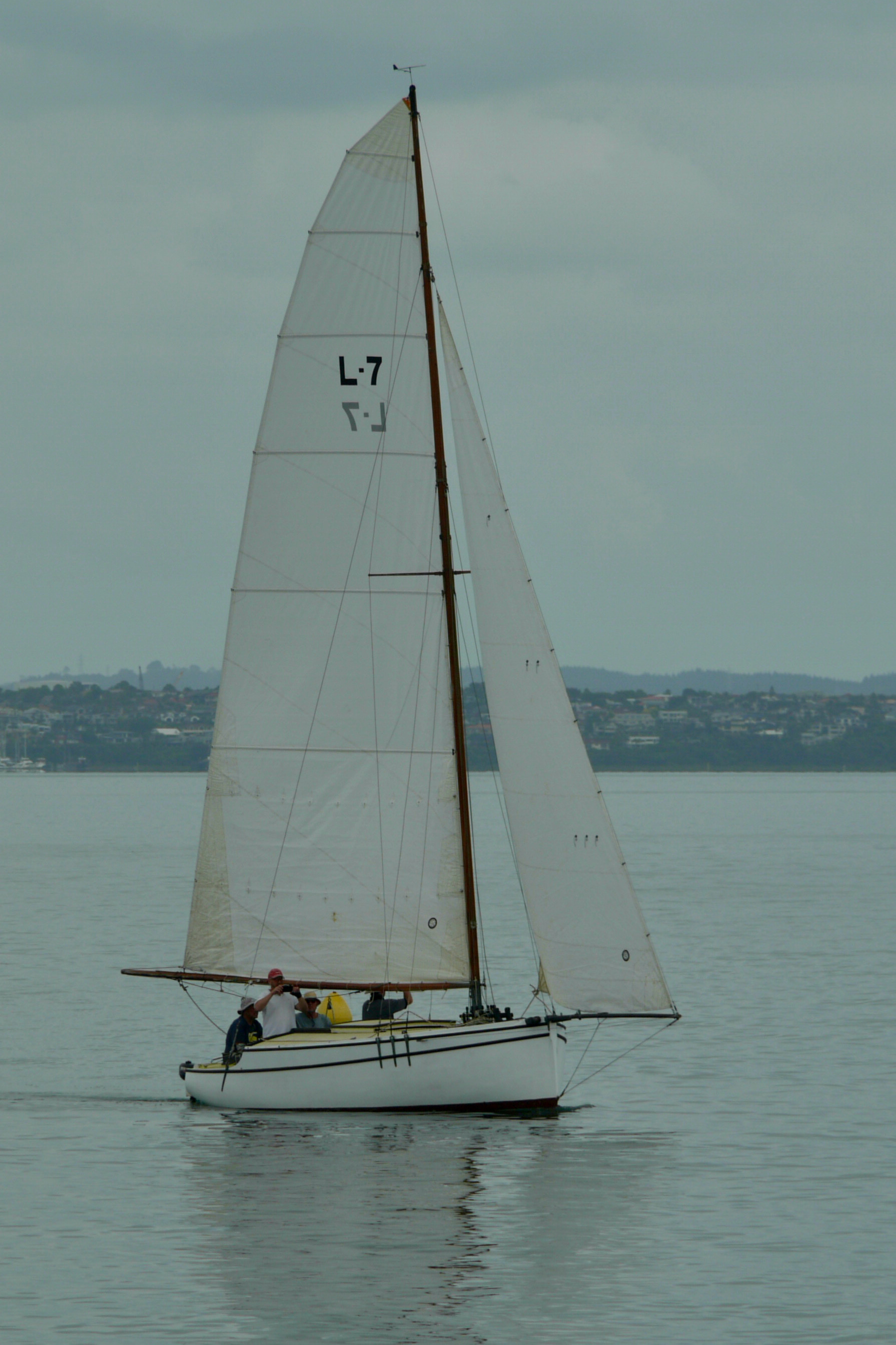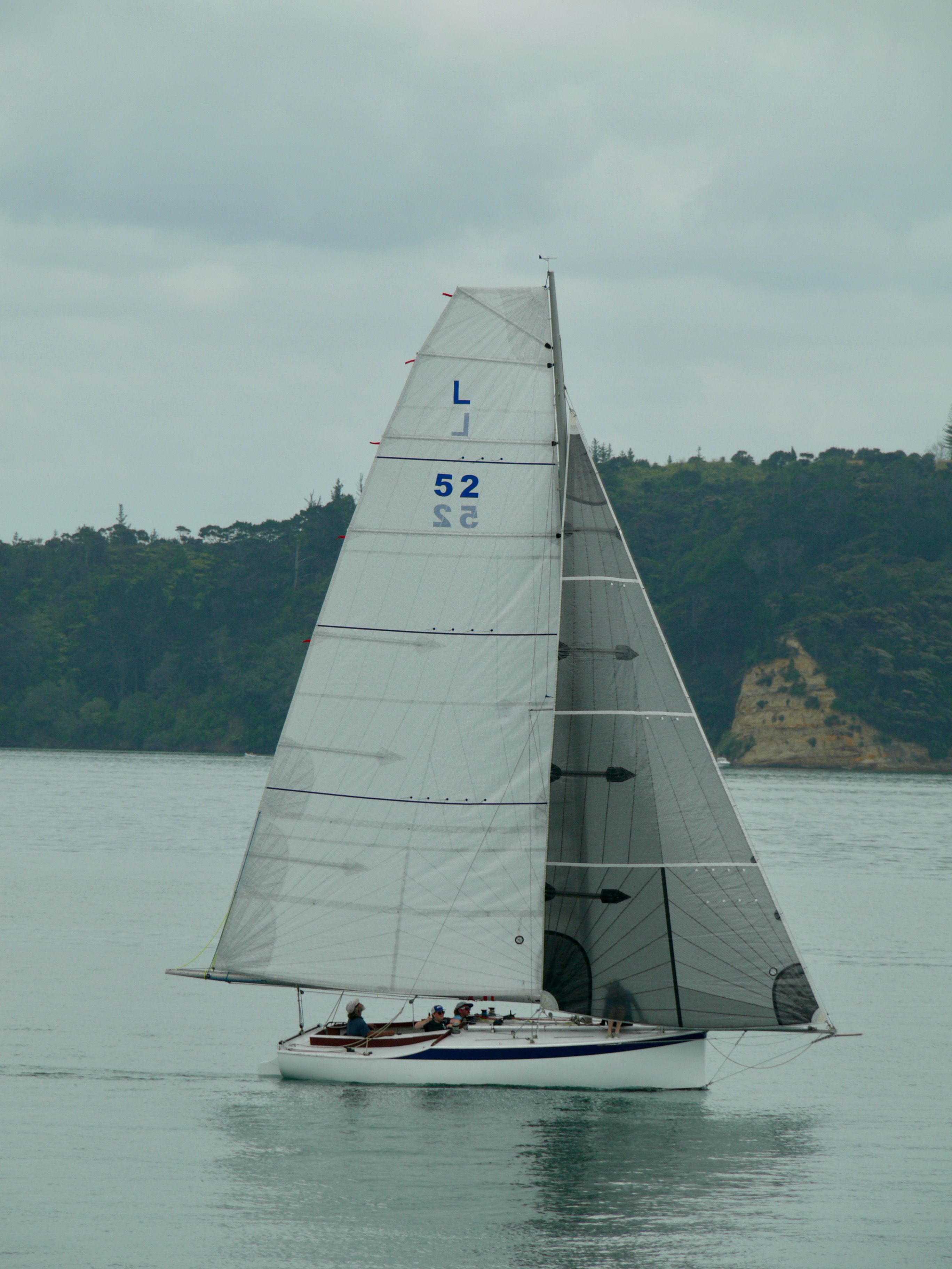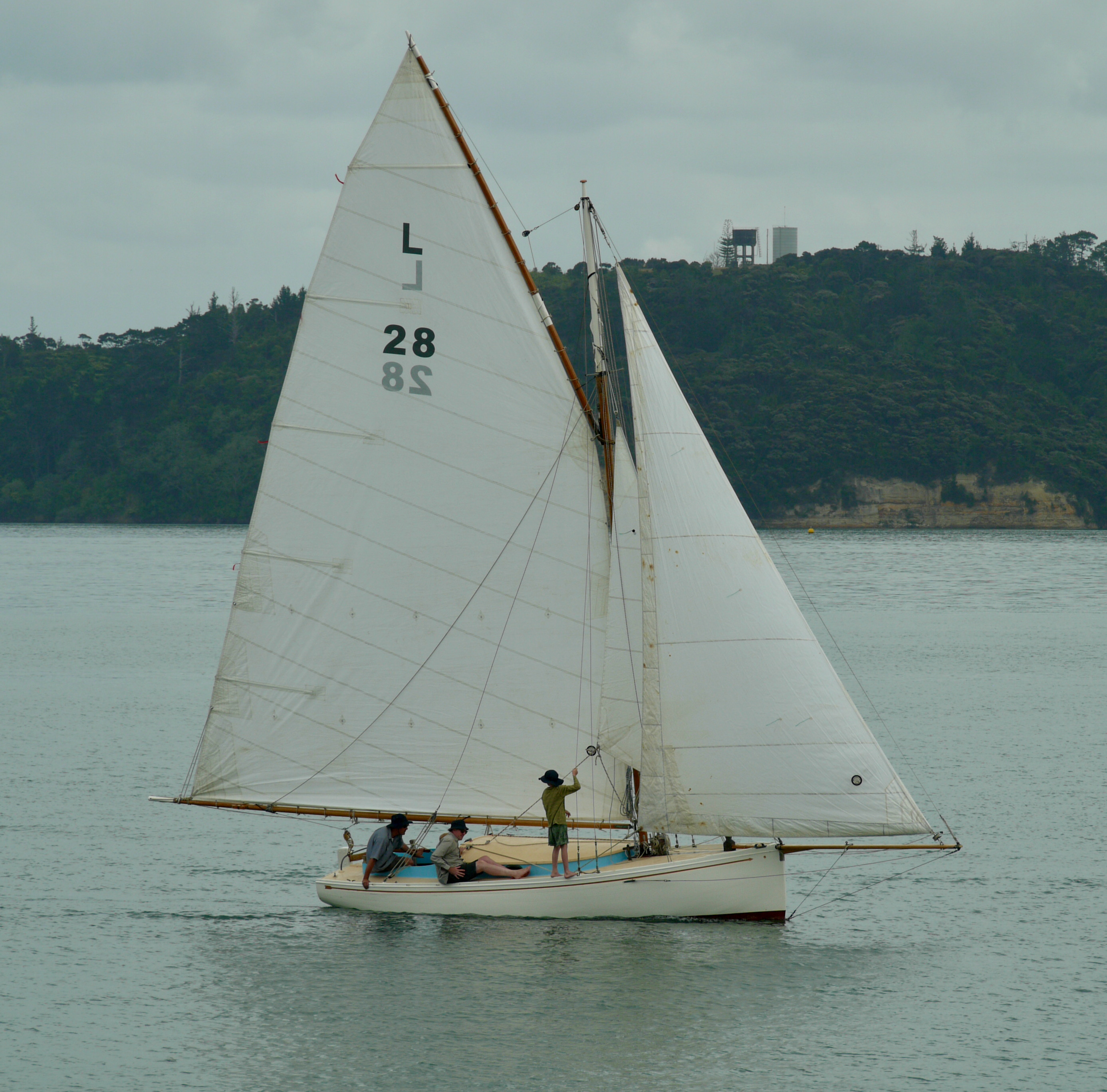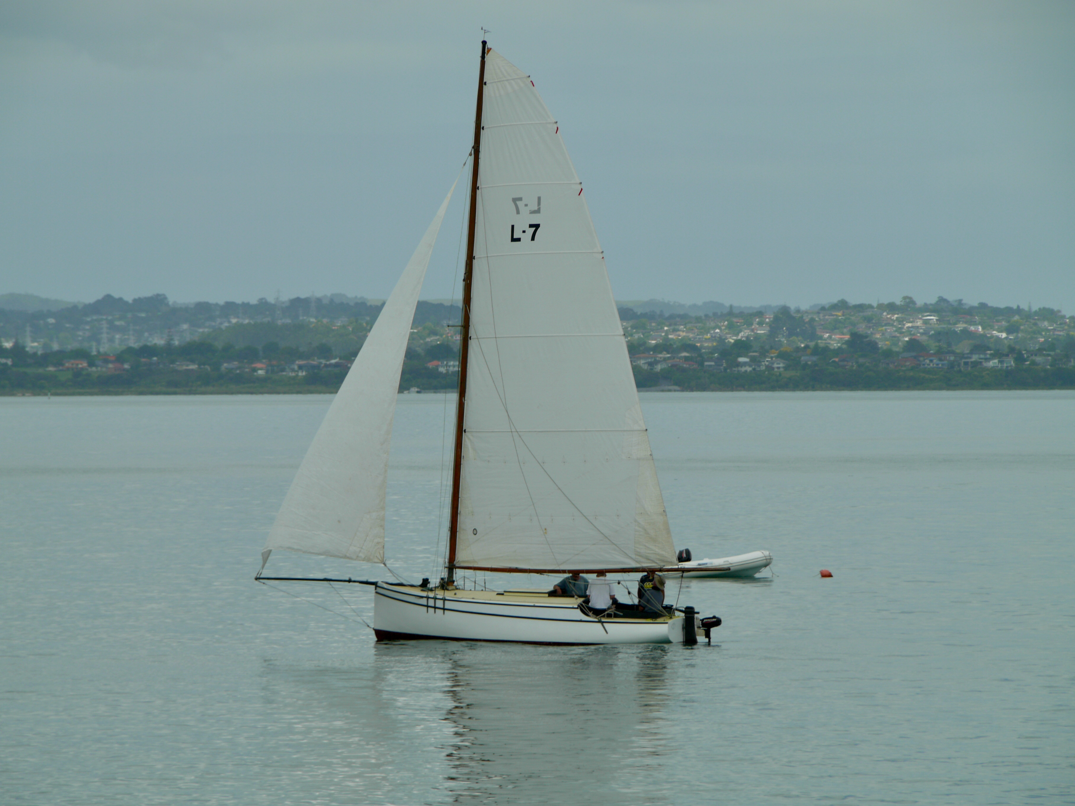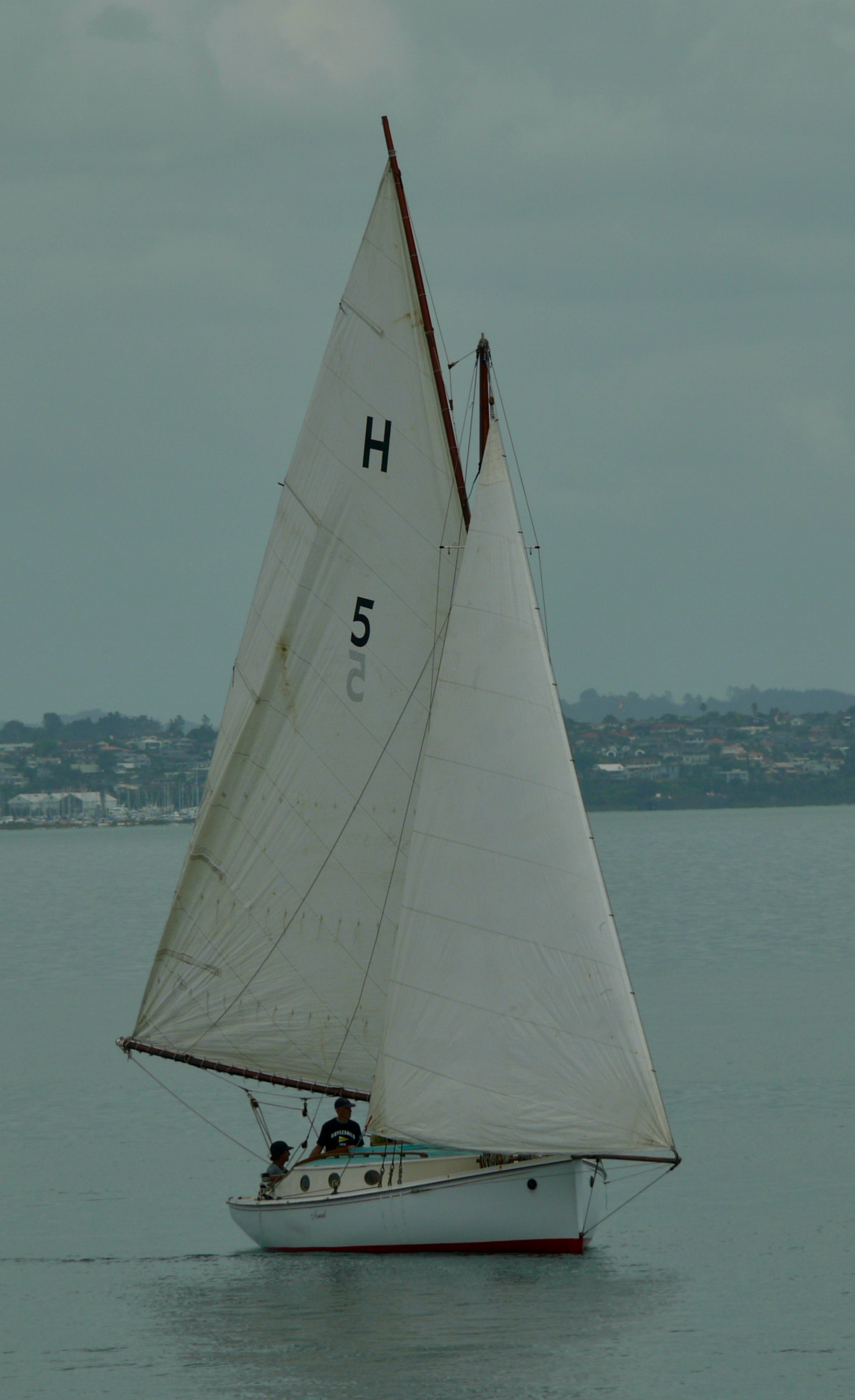 Peter had had her hull restored professionally in Christchurch some time previously, but the earthquakes and his ultimate death intervened. Andrew completed the job, rigged her and commissioned a trailer for her locally. So she’s now, home from the sea in her retirement – converted for use as a ‘trailer-sailor’ and lives protected from the elements in a boat shed at Lake Hood (just east of Ashburton) – where Andrew sails her when time allows.