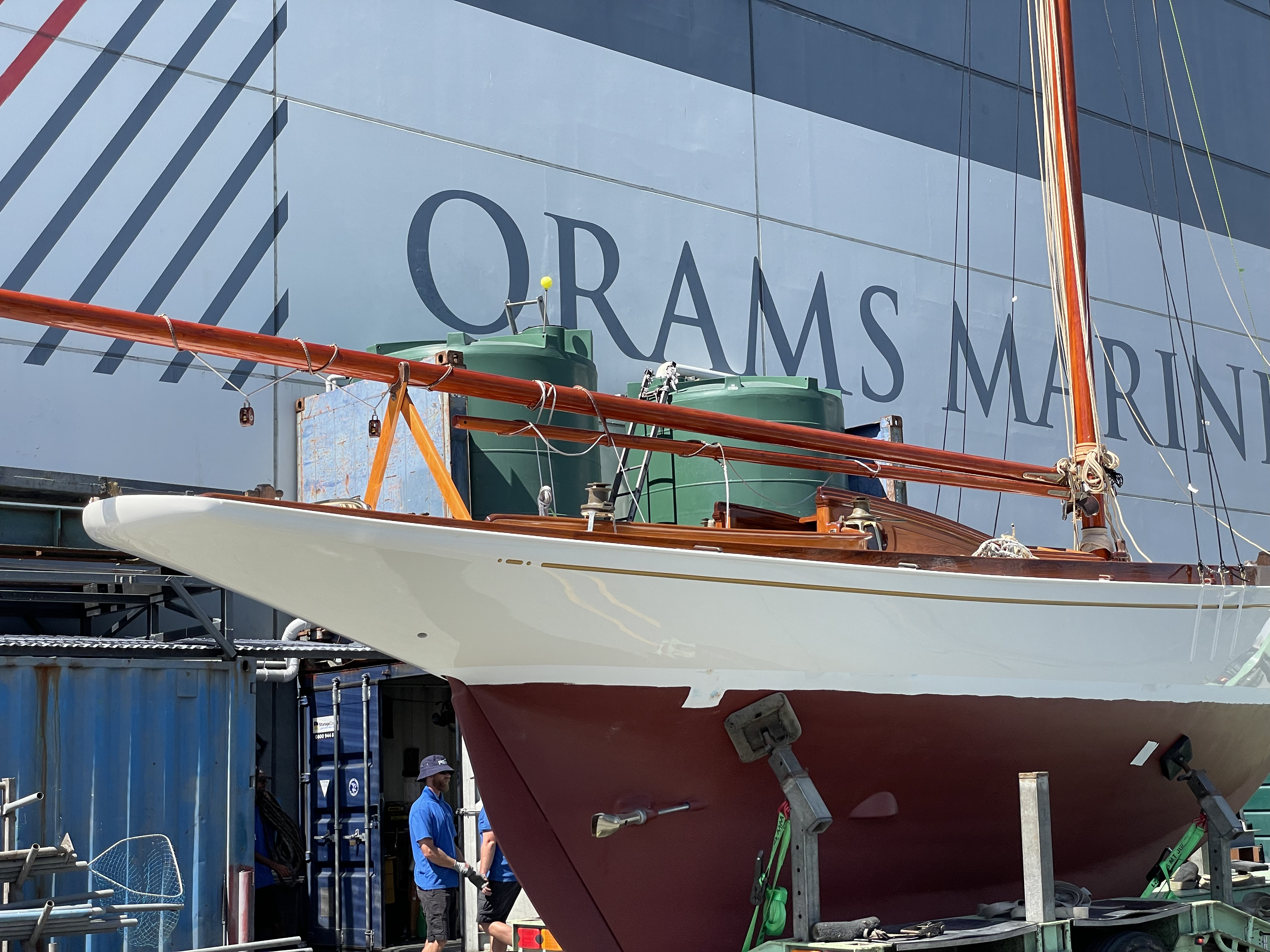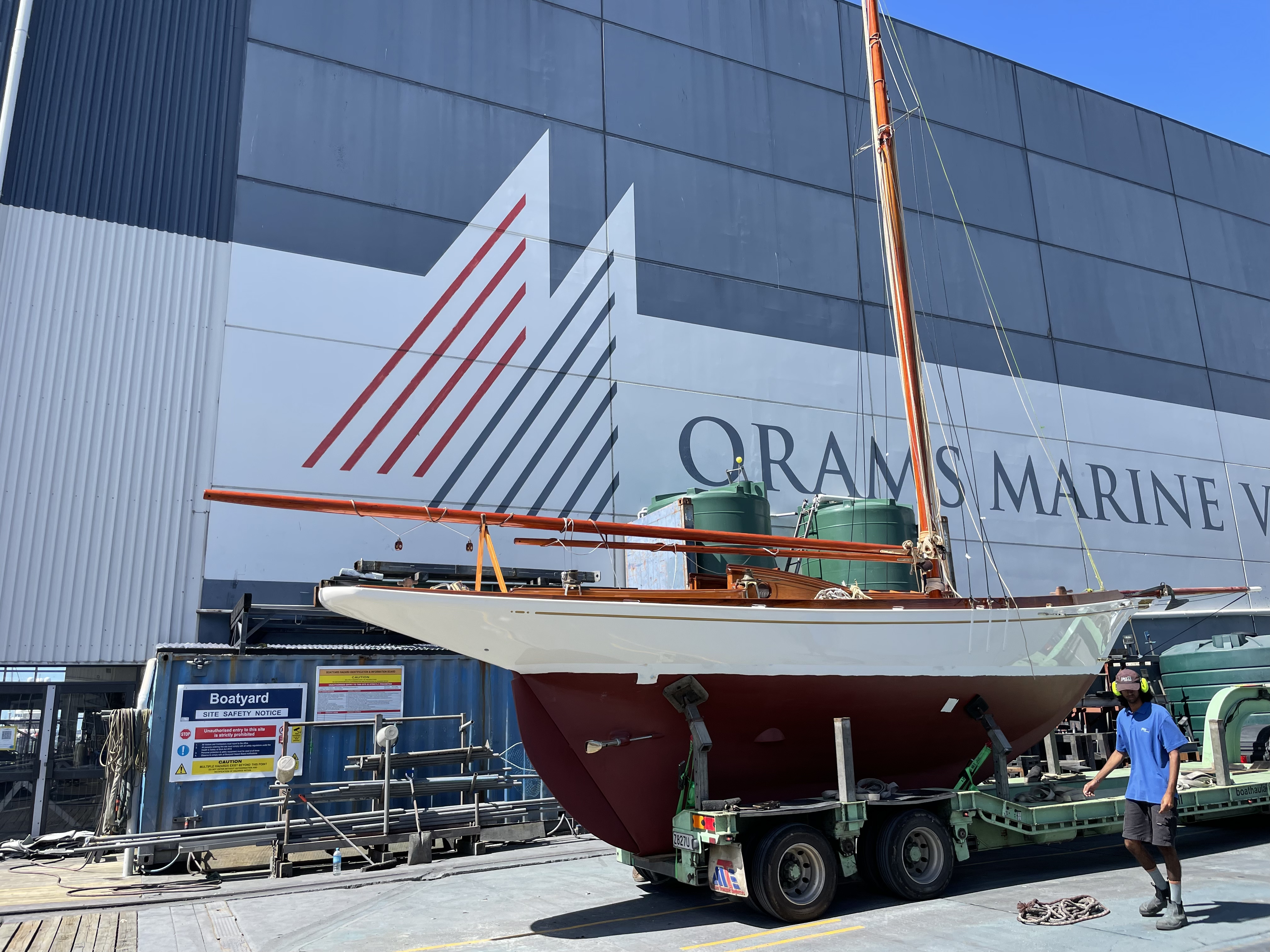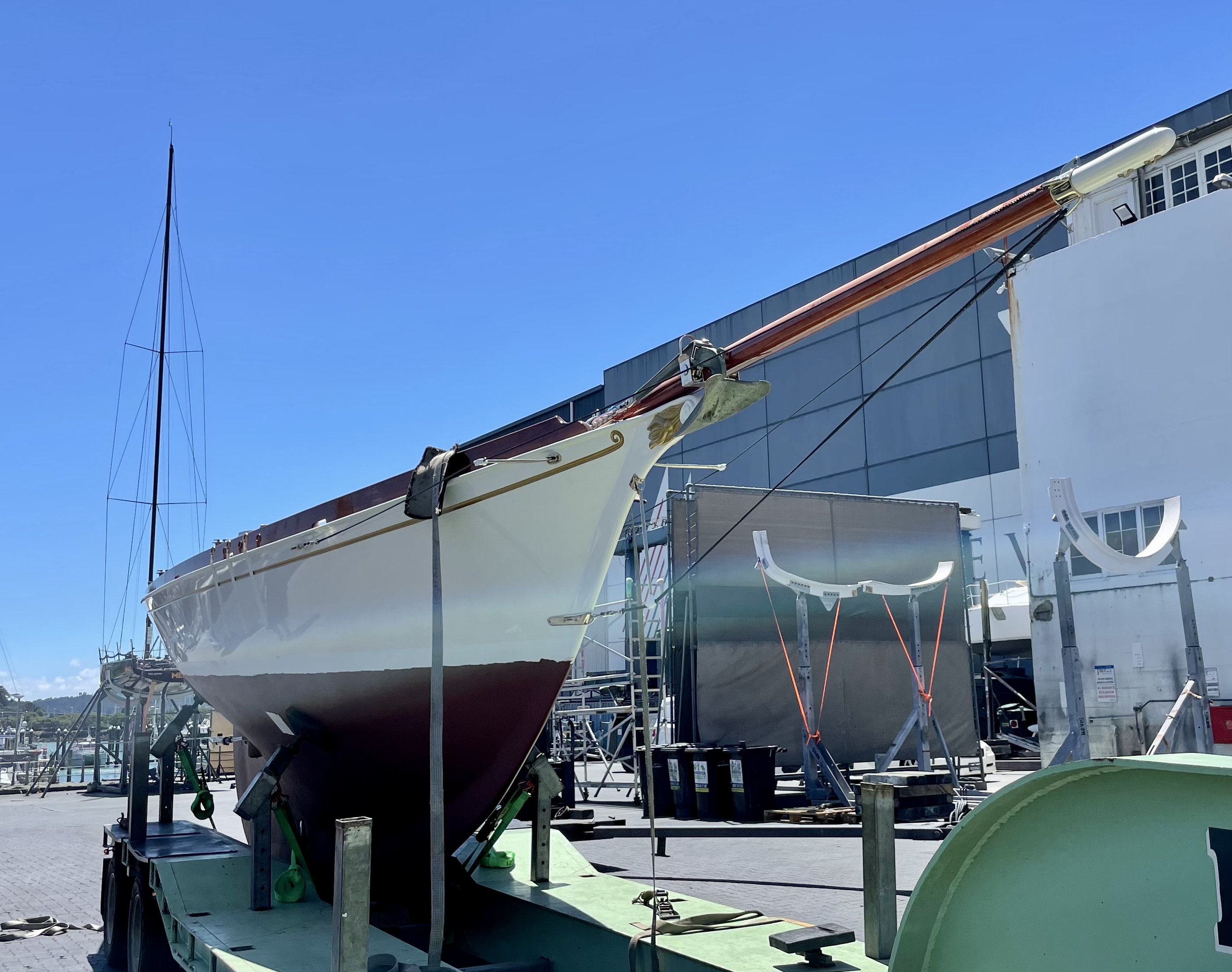 Rather a special afternoon yesterday, got to have a sneak peek at Rogue, the 1892 Chas Bailey Jnr. built gaffer. She slipped out of Wayne Olsen’s shed and headed to the Pier 21 yard at Westhaven, with the intention being to step the mast and do a quick waterline sighting before hauling out for the final coats of paint and commissioning.