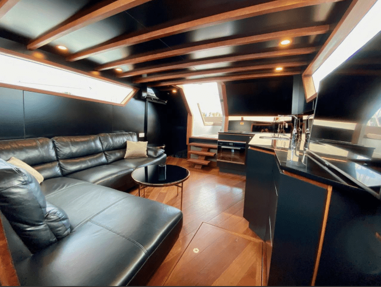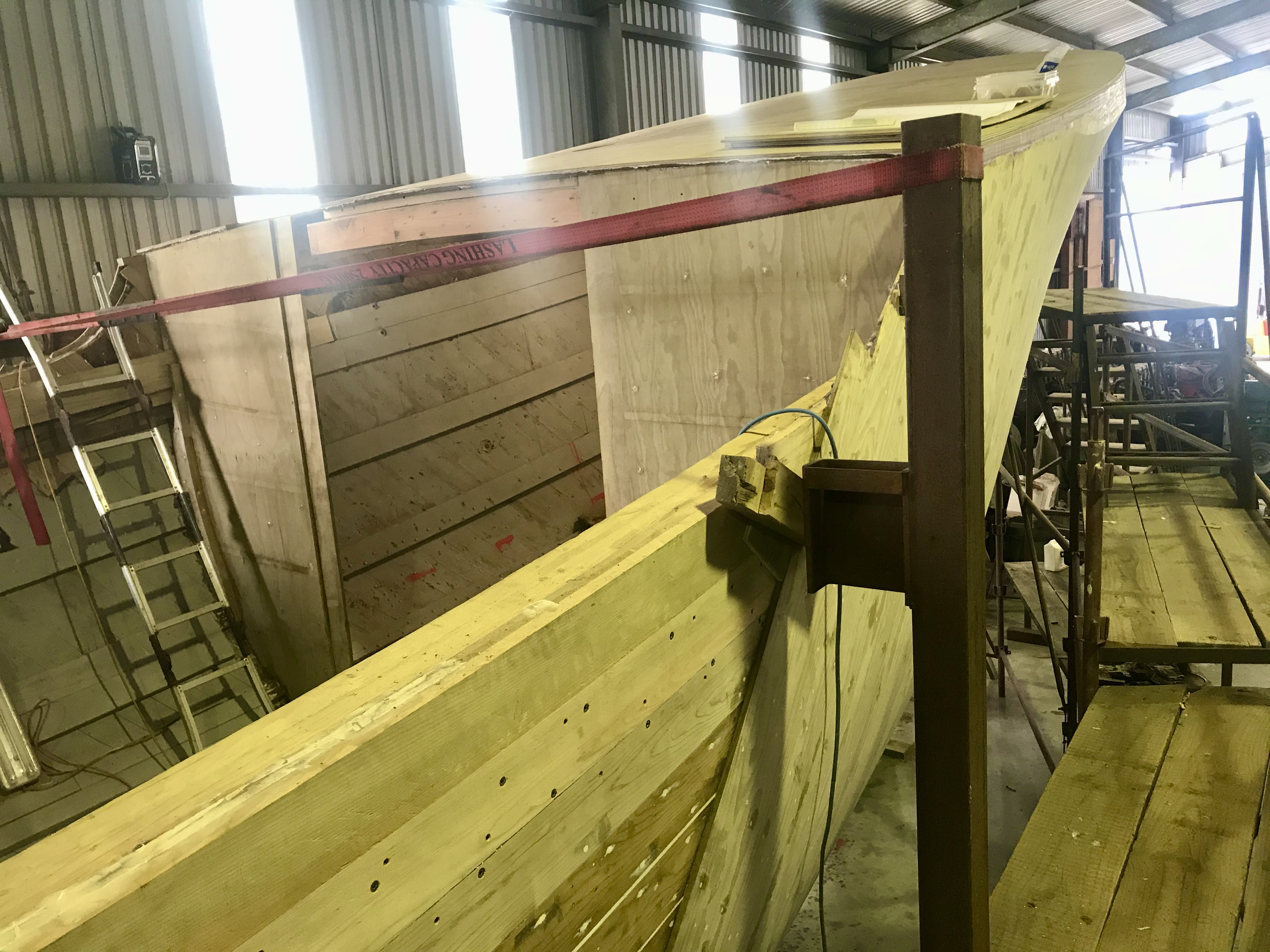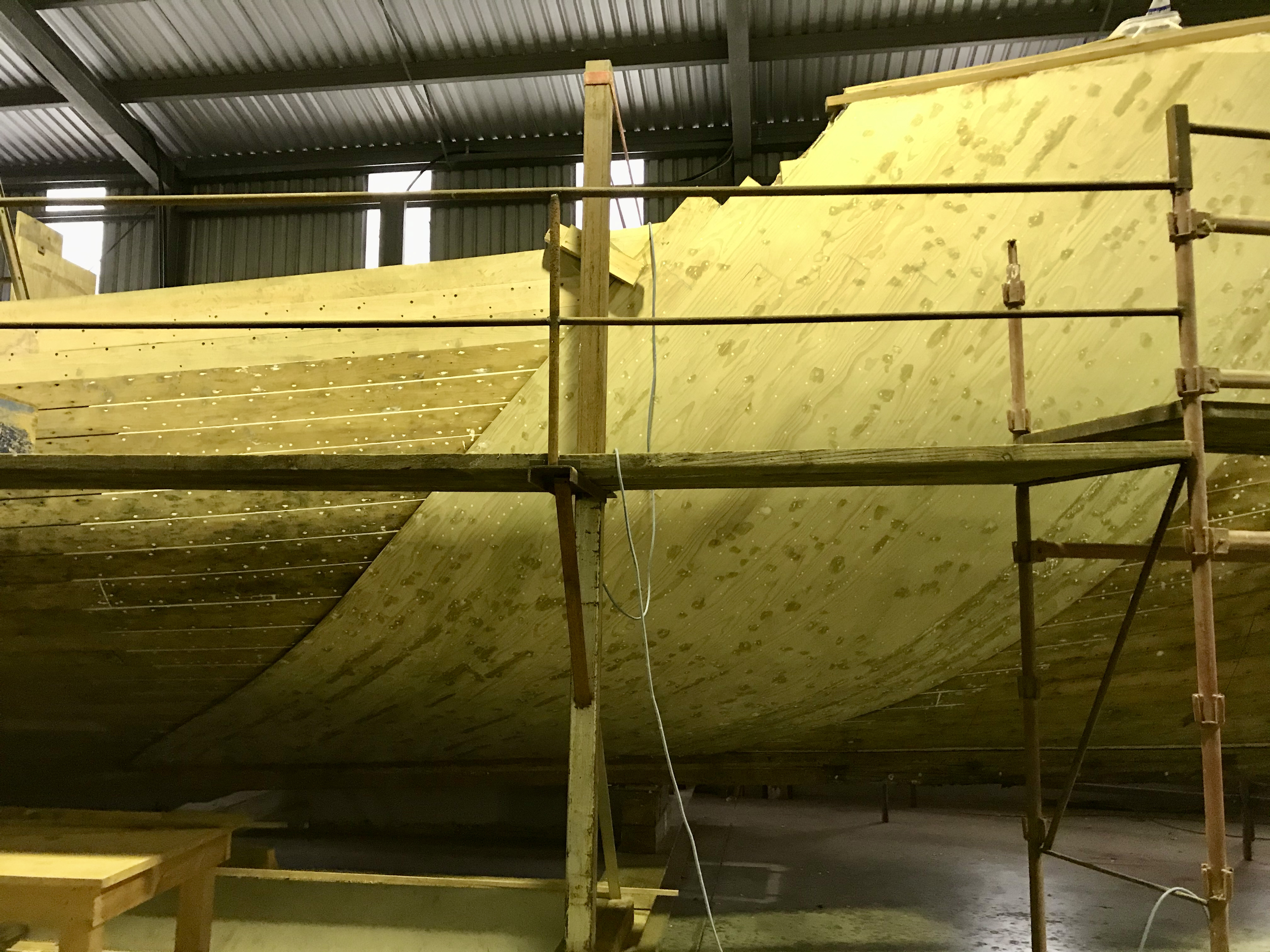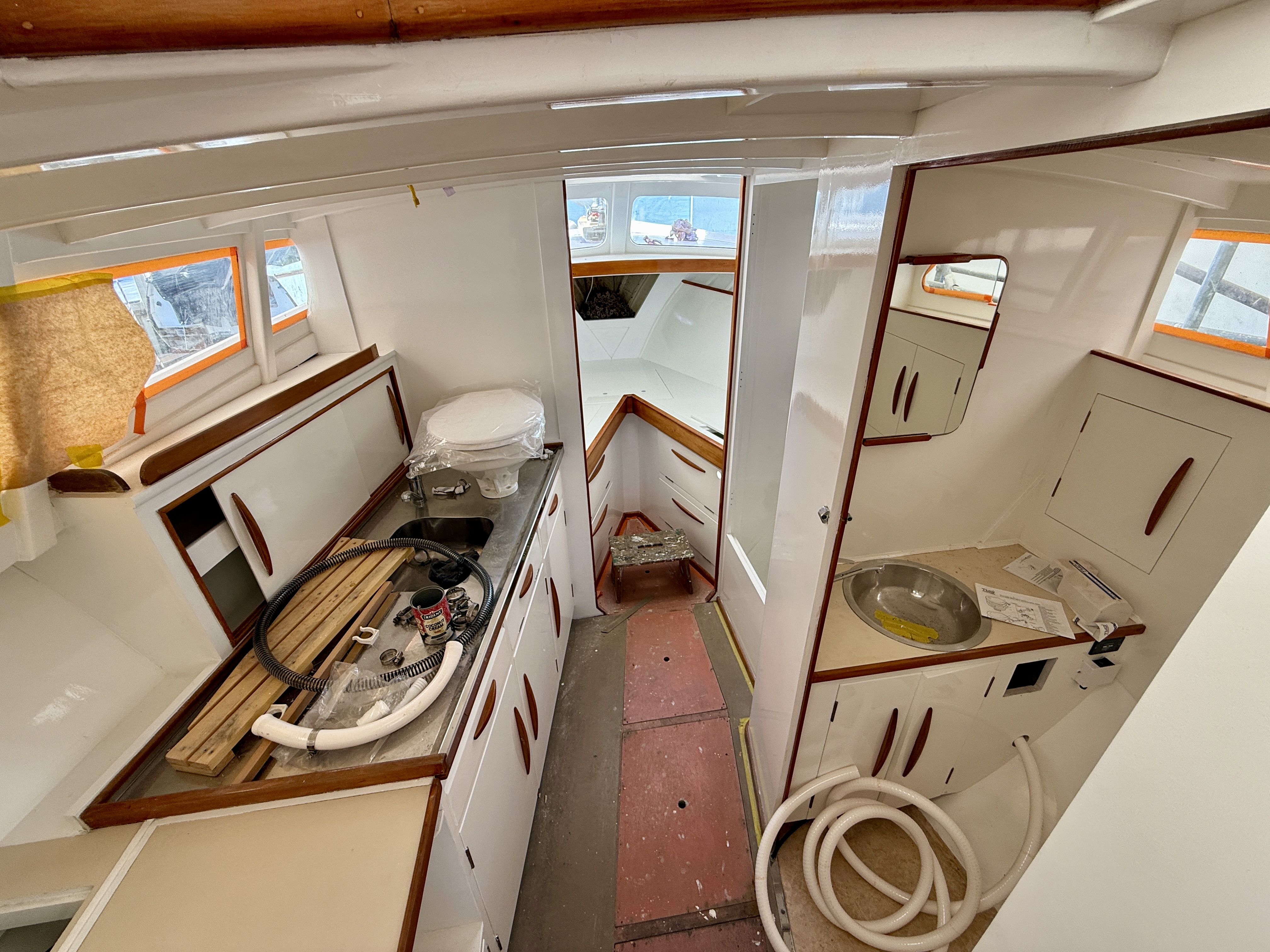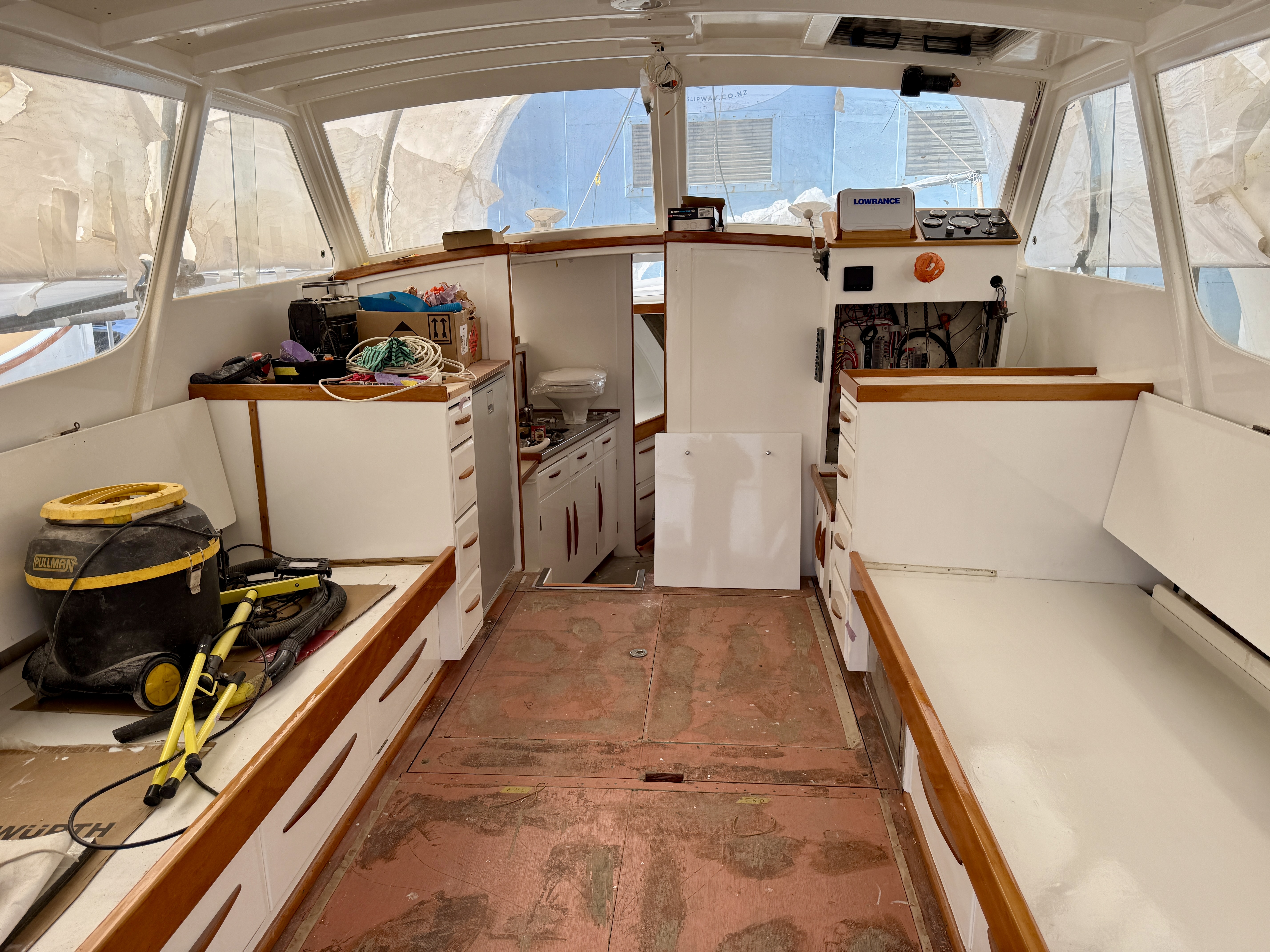 16-05-2025 YARD UPDATE – work continues on AWARIKI, interior looking very sharp + the new varnished coamings are a game changer – love it.