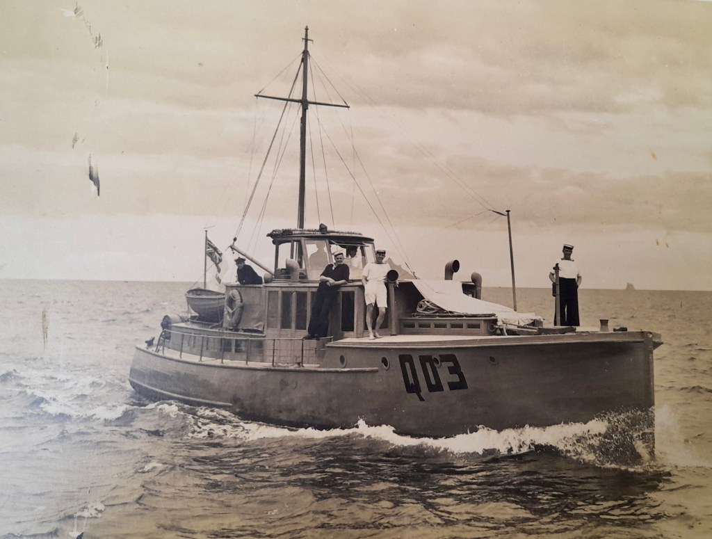 INPUT ex ROBIN ELLIOTT – Queen March, sailed by Billy Rogers on that day, was owned by Eliot Davis, brother of Sir Ernest Davis, and named after Eliot Davis’ champion racehorse. The race was won on a resail because it was later revealed that the skipper of Joan, winner of the first race, was 2 days over the 21 years limit. Three medals were presented to each of the crew Billy Rogers, Doug Rogers and D. MacKay