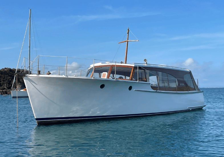 INPUT EX DENNIS MCNAUGHTON – Hi,I am Noel McNaughton’s son, Dennis, pleased to see the article about Dads boat. He sold it in 1976 to Bill Subritsky- he only wanted it for the marina- it was on sold to a captain of a deep-sea fishing trawler and it was relocated from Auckland to Picton. The name was then changed to St Tropez( I think it was ).