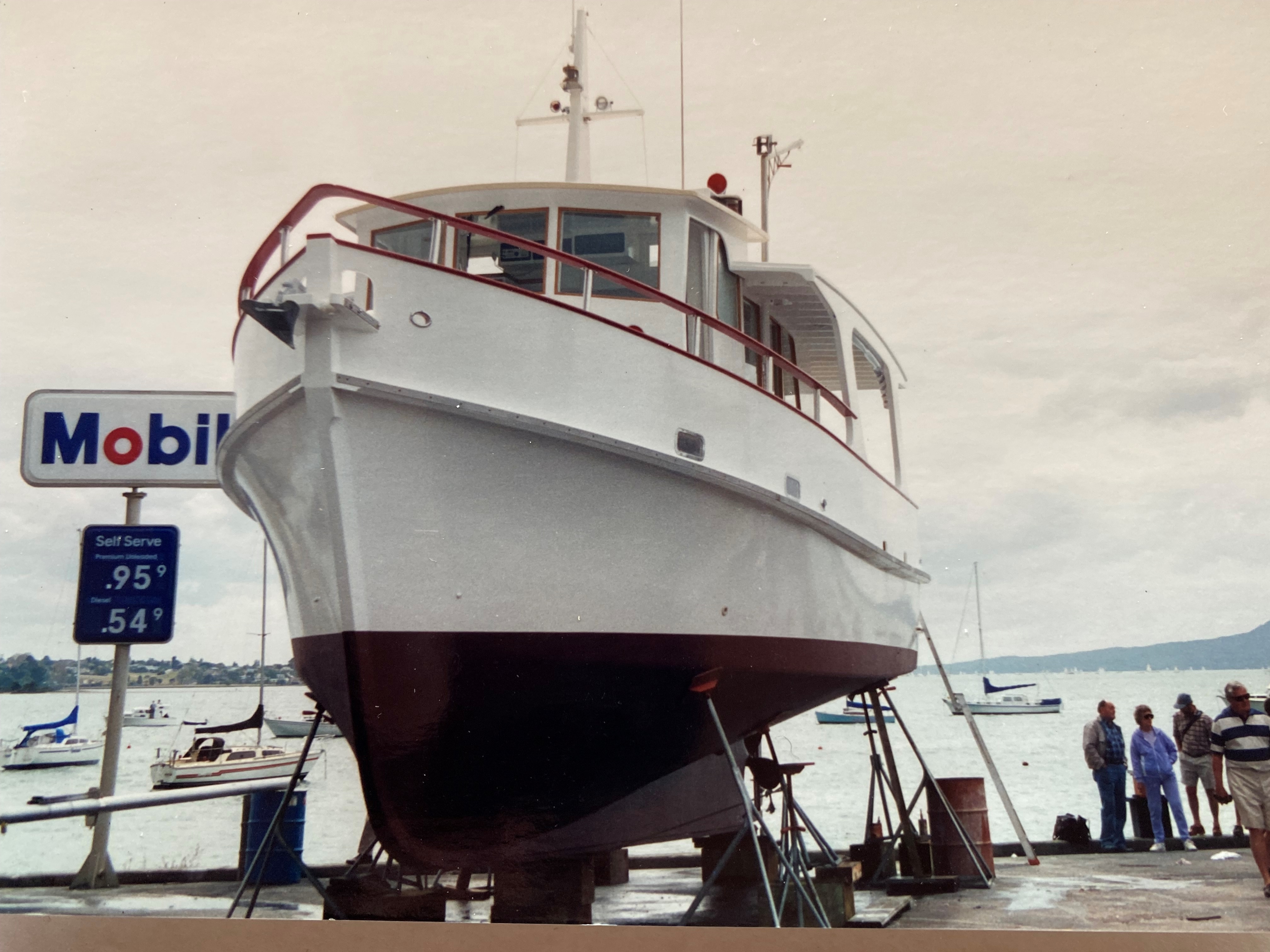 My pick of the boat I’d most like tied up at my imaginary lake jetty is – ELLEN (#14), 26’ in length, built in 2004 in strip planked cedar from a plug taken off an old abandoned hull found in Kopu. Thought to be a ‘Milkmaid’ design by Bailey & Lowe. Powered by a 29hp diesel. In my eyes just perfect. Photo below