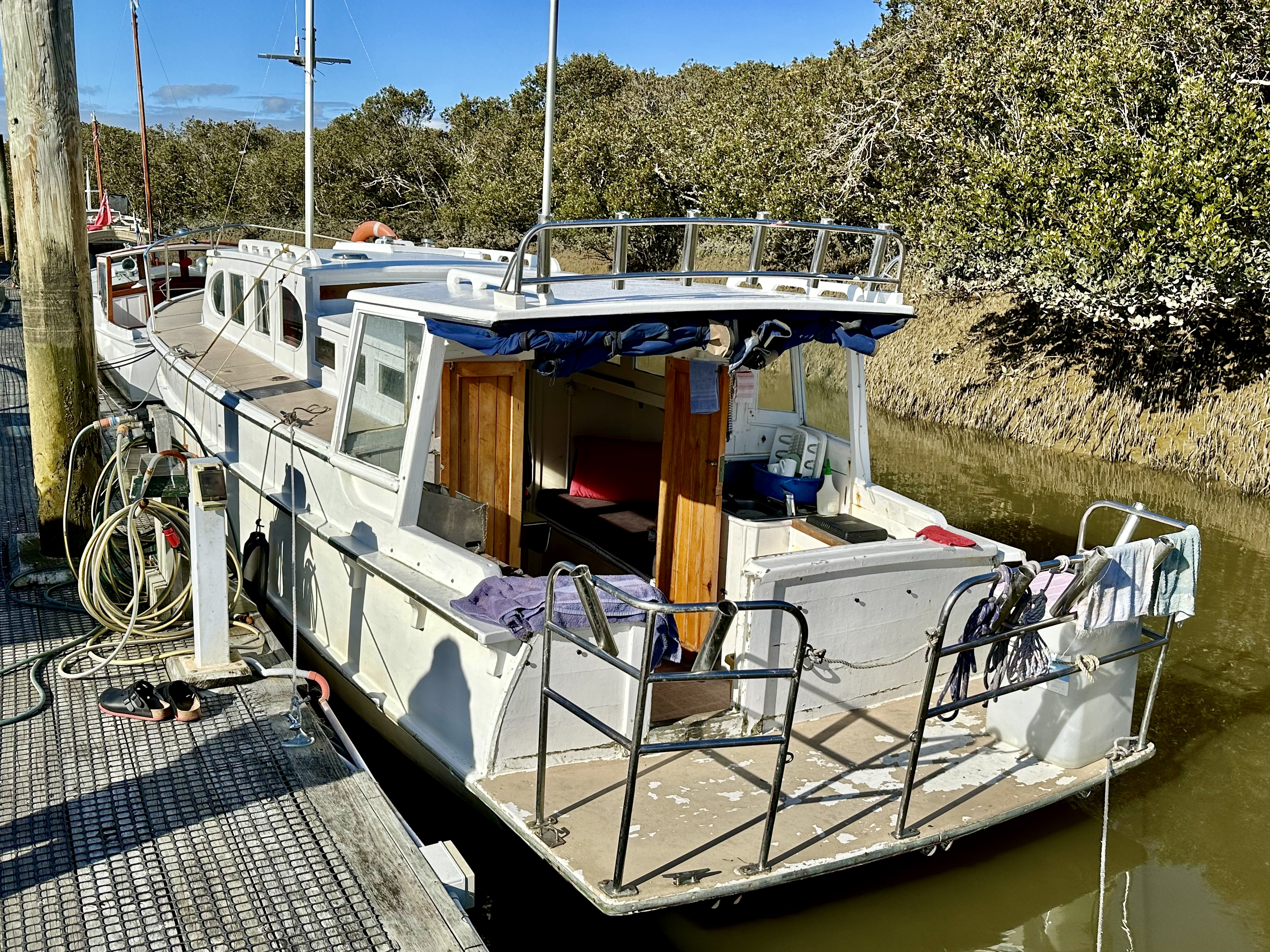Todays woody is the launch Ngarimu from Thames, been owned by Bruce Rowe for 10+ years and soon to be hauled out and taken home for some serious TLC. Bruce has made the long haul from Thames marina to attend several Woodys events – Riverhead, Clevedon and Paeroa. Each trip the experience helps him get closer to starting the big project.