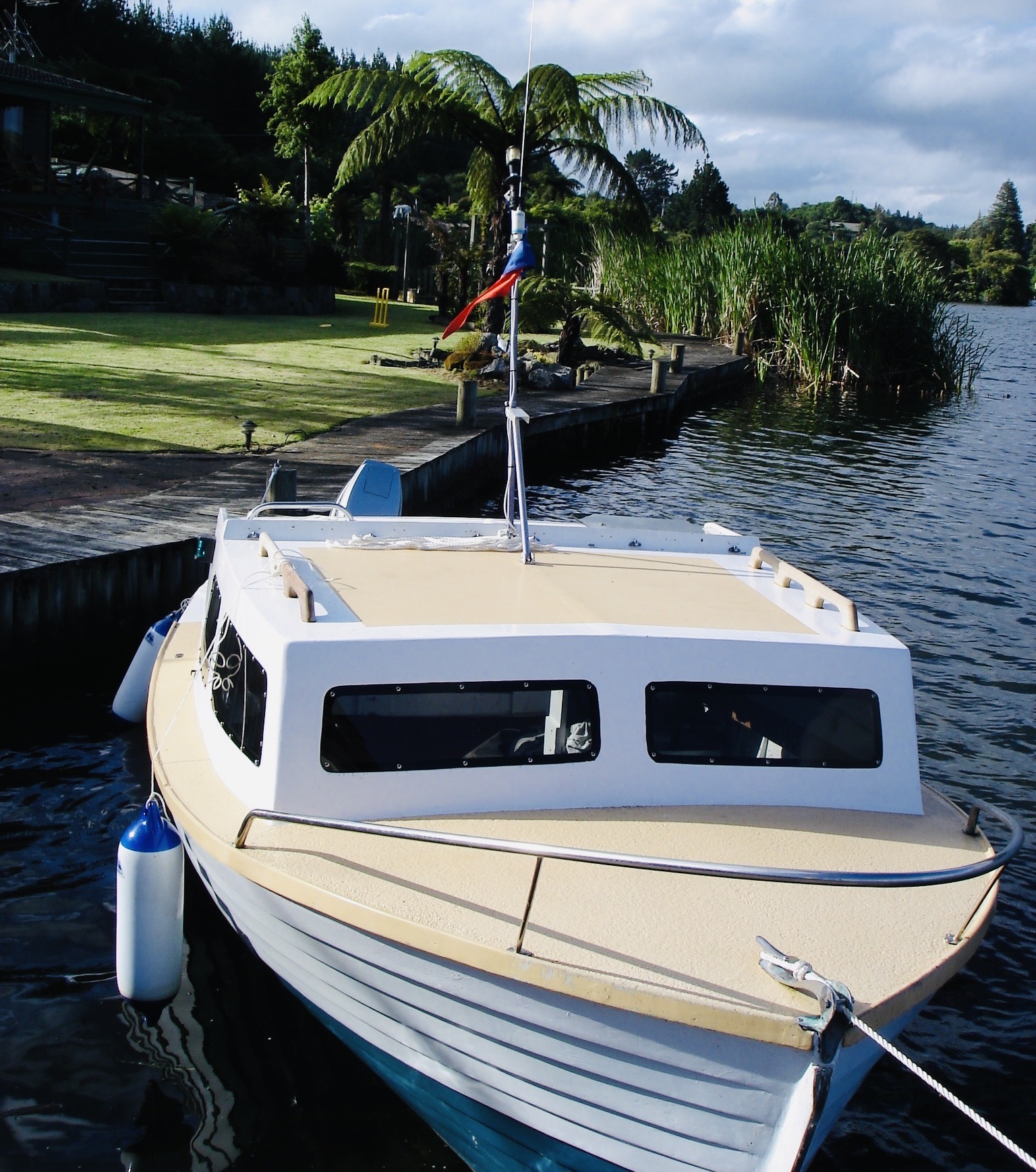 The photos above are recent ex Rob and are a vast improvement on what we saw back in 2022, those photos are below – the first one dated c.2015, shows the boat as purchased by the previous owner (who was based in Rotoiti, Lake Rotorua). They removed the cabin and hot-house.