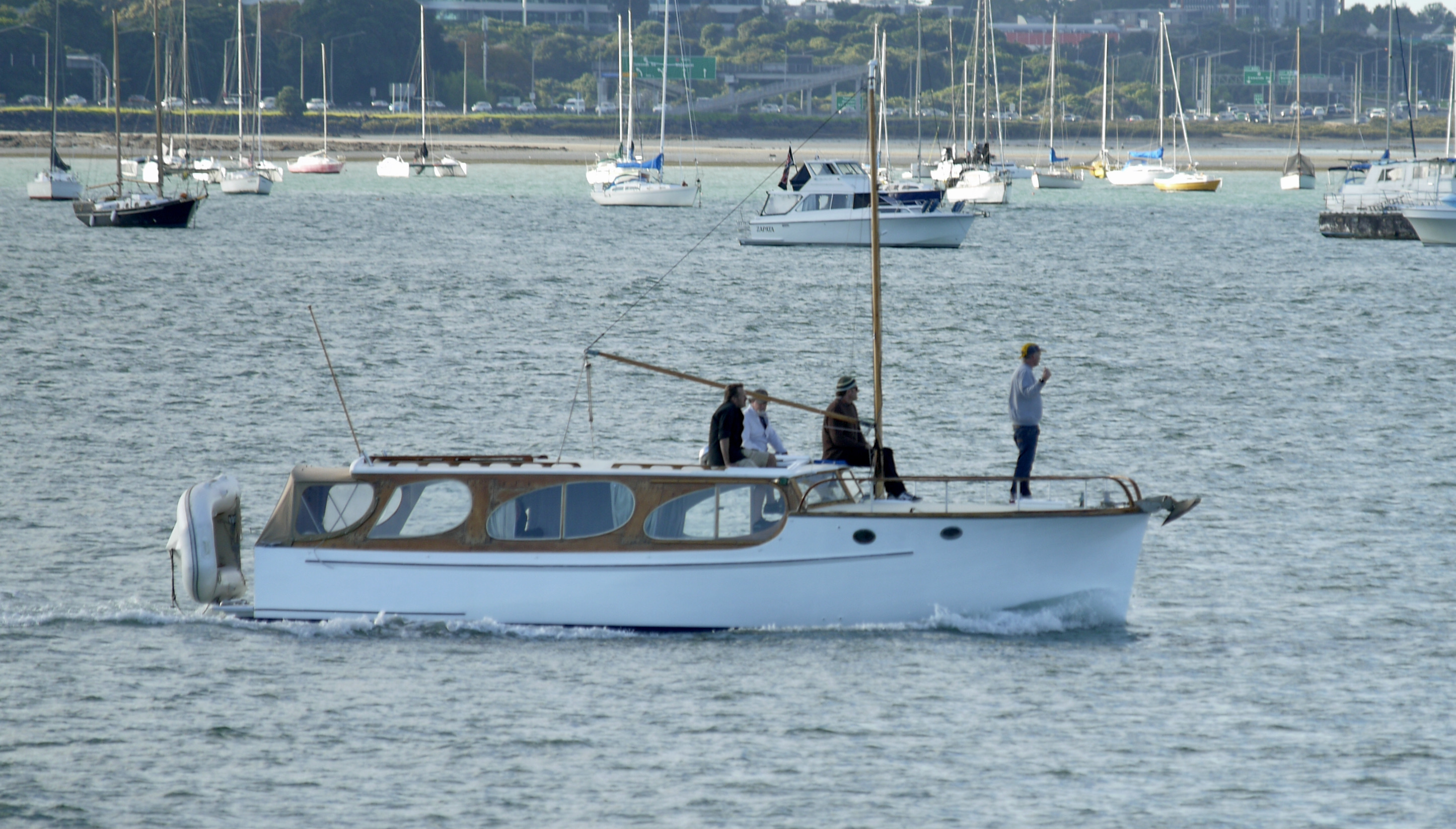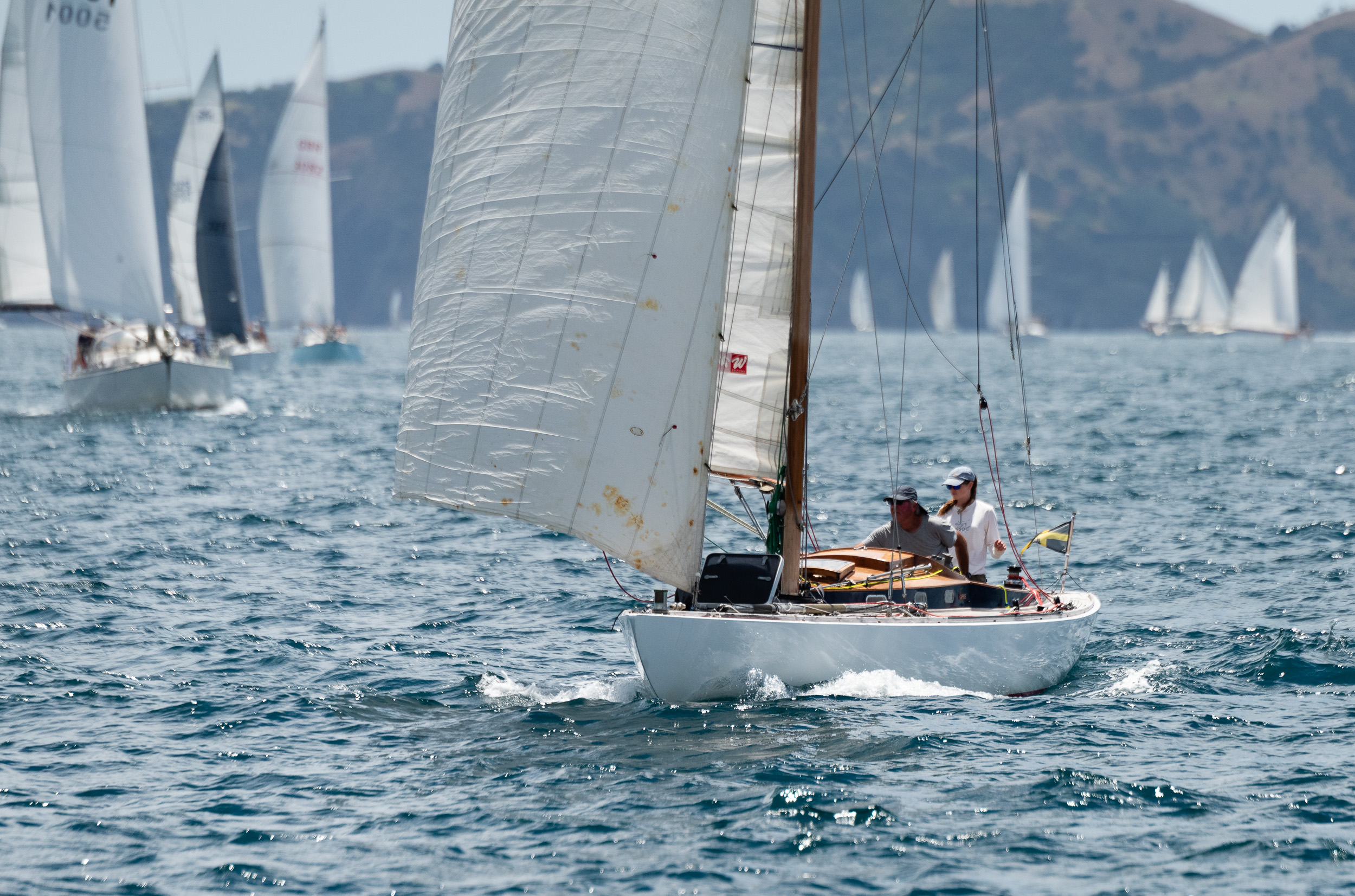 Then it went down hill on Saturday morning – confusion around the start time for the launch parade – 1/2 the boats thought 10am, now I’m told it did say 9.30 in the classic yacht club newsletter, but……. the % of launches there that were members would have been less than 20%, so the parade was very patchy with skippers joining at different times. Numbers were down and the loop of Sullivan’s Bay was embarrassing- less than 20 people on the beach and I suspect they had no idea what was going on. BUT – still good to get together. Parade aside there was an impressive number of classic wooden launches in the harbour, in terms of pure classic craft , launches would have out numbered yachts by 4:1Most turning up to just enjoy the weekends activity on the water.