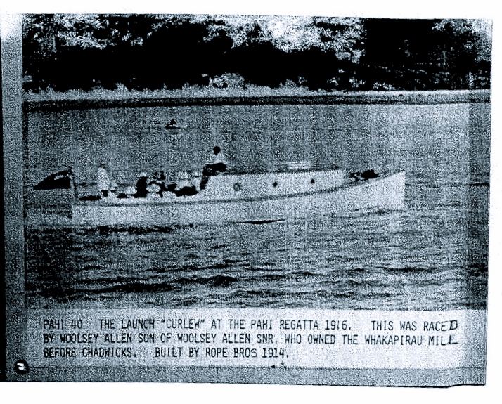 Curlew had a 4hp Auckland-built Kapai auxiliary from new and was a centre boarder. Dufaur sold her to W. Abbott in 1914 and he sold her to H E Chamberlin of Ponui Island in 1918.