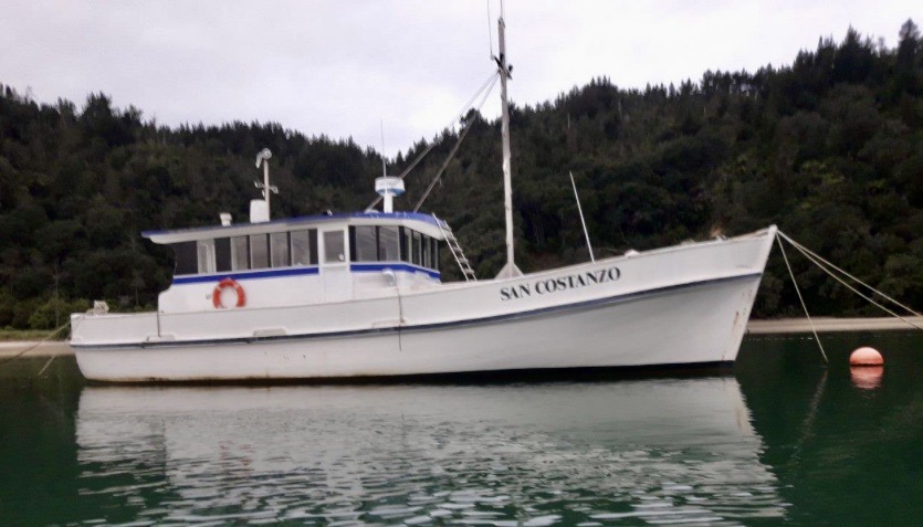 This Jack Guard designed double ender was launched at the end of July 1965 for Mr Salvi Rocco of Wellington. It was built for crayfishing and longlining out of Island Bay. St Costanzo is the patron saint of Capri from where the Rocco family come from. While Rocco’s had her, they took the aft wheel house off and had a new one built forward by a Wellington boat builder. Rocco’s sold her to a Chinese chap in Auckland who used her for catching blind eels out of Tauranga. He only owned her for approximately two years before selling her to Tom Fishburn who then set her up for trawling. He fished her for ten to twelve years with his nephew Marcus Fishburn. By the time Tom bought her she had had an engine change from a Gardiner to a Cummins NH250 which is still in her. It is said that she is a good sea boat and fairly dry on deck which is a credit to her designer. Guard’s of Nelson were unable to build her at the time. Her stern is very tight and bluff double ended, almost a ‘transom’ a credit to her builders. Not the only Guard design like it. The Marconi being another that comes to mind. At some stage the ‘St’ in her name was changed to San Costanzo. There was an article in the local newspaper, Nelson Evening Mail, at the time of launching. Other names San Costanzo