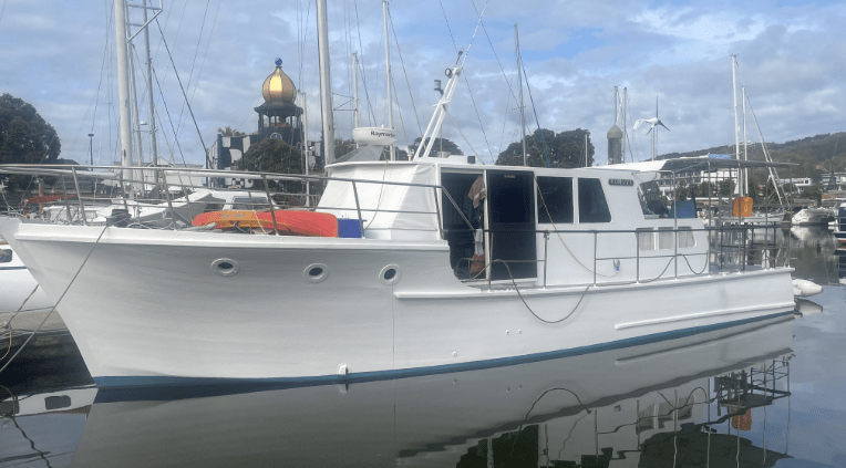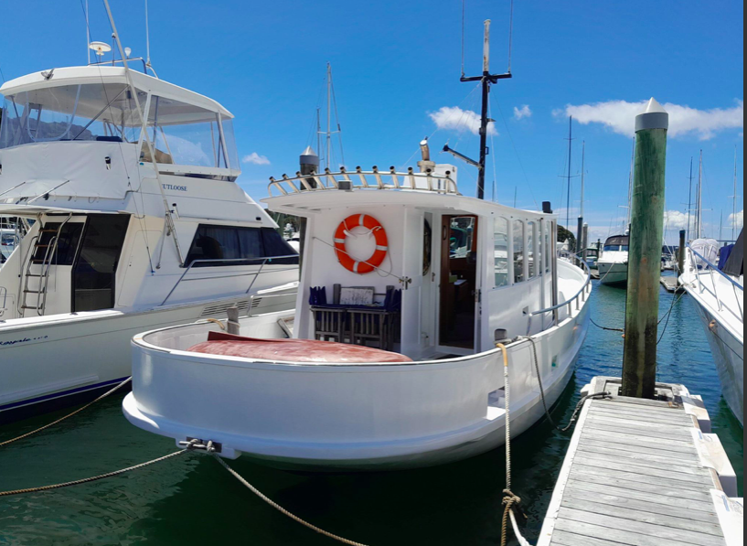 1956/7 Built Curnow and Wilton, Nelson for Tony Bonica, Island Bay Wellington as a day fisher. Launched as “SAN GUISEPPE”. Powered by a Lister JP3 (tbc) 1974 Ian Boyce went to Napier as she was for sale as “MARY LW”. Owned by Willy Watson. Had a Fordson (6?) and the Capital 3:1 1974 Late 80’s in Port Chalmers. 1978 Big NE blow (see newspapers) and 8 boats caught off the Nuggets, Otago bar closed “SEAWITCH” (sistership to DORADE) lost with 2 crew, Warren Wilson skipper & Les Walker (leadboots) MASON BAY all ok. ( Not sure if those 2 guys were on Mason Bay or Seawitch) 1985 Big refit at Miller and Tunnage. new bulwarks, and the 6BD1 Isuzu was installed with the 3:1 Capitol box. Then sold to a Mr. Hall in Nelson/Motueka. He also had “PEARLY SHELL” I believe 1993 Bought by Ian Boyce (from whom a lot of this info comes). Based in Tauranga with the “SEA BEE” and fished tuna off the west coast of the South IS. 1995 Sold to “Blondie”who had her for 2 years and ended up in Bluff 2001 Seen and photographed fishing in Lyttleton Hbr. 2007 Bought by Russell Keen from a finance company. 2009 Sold to Gary Underwood 2010 Motored north to Whangarei in Jan. 2010 May – hauled at Norsand boatyard for refit/rebuild and conversion to pleasure. Shipwright was Marcus Raimon 2012 Re-launched and now home port is Whangarei Town Basin.