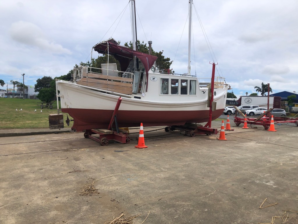 During the week to woodys Jeff Norris and Dave Stanaway sent in photos of the very salty looking woody launch – Seagull, that was hauled out at Dargarville on the West Coast of the North Island for some TLC.