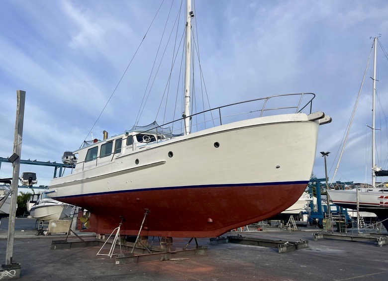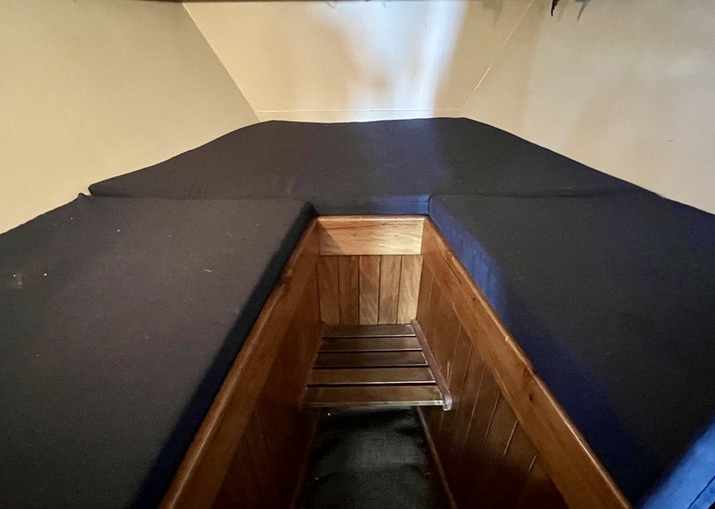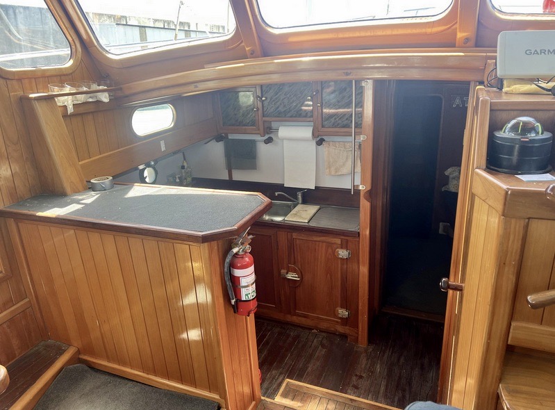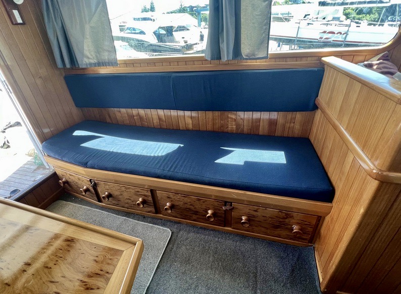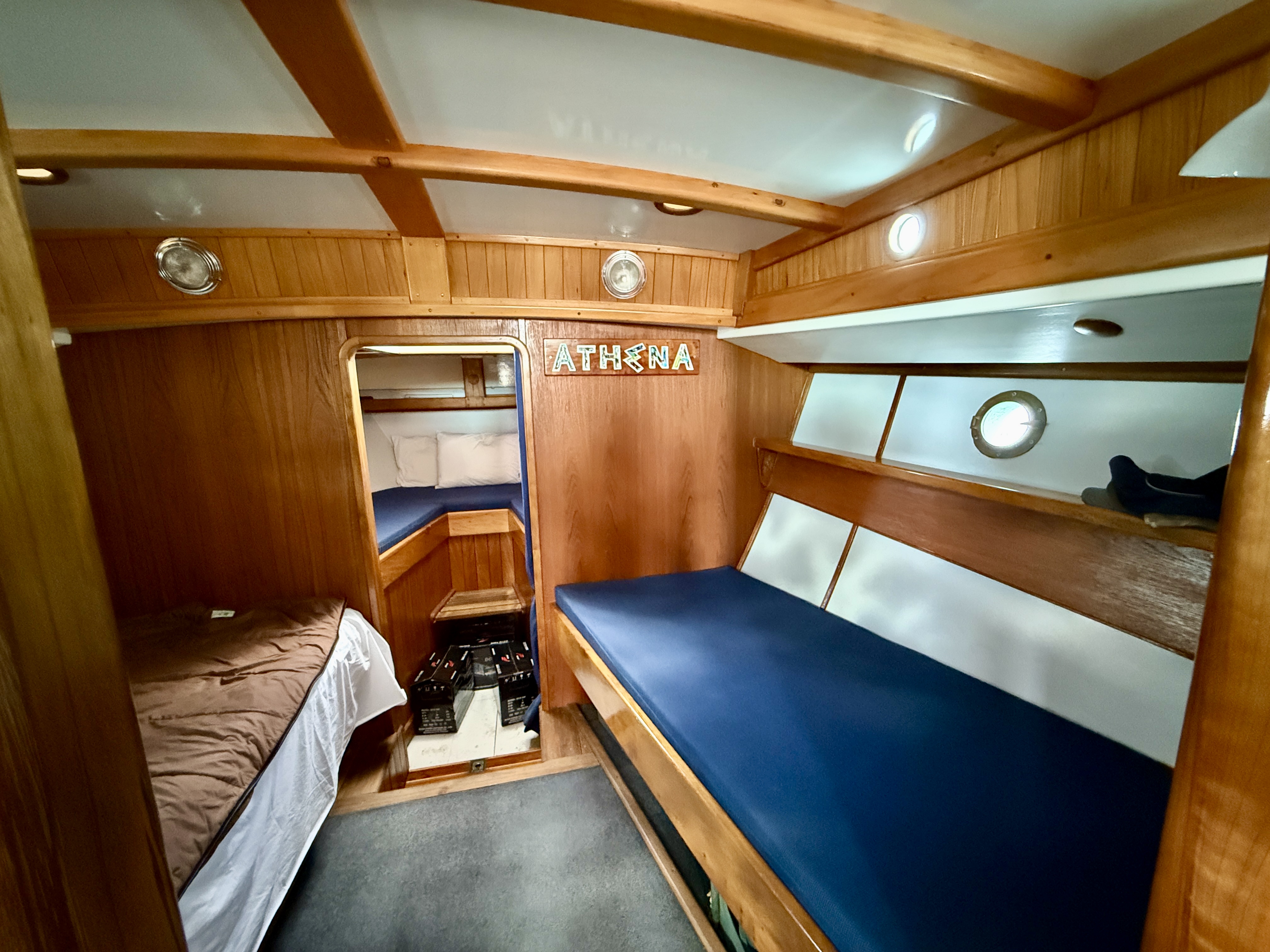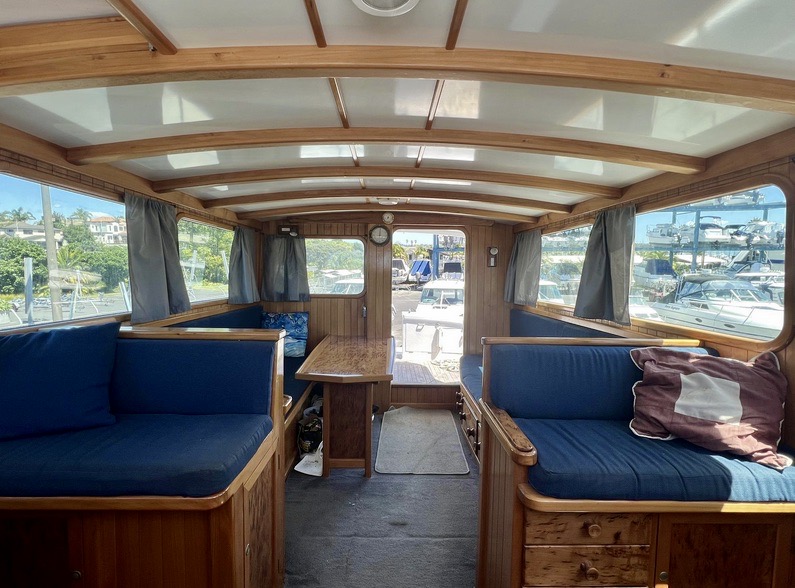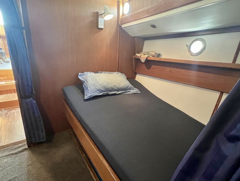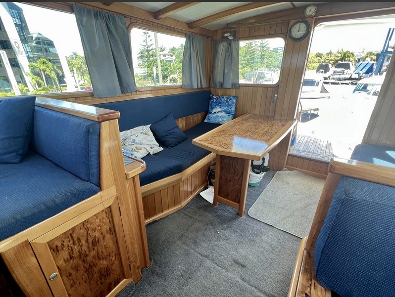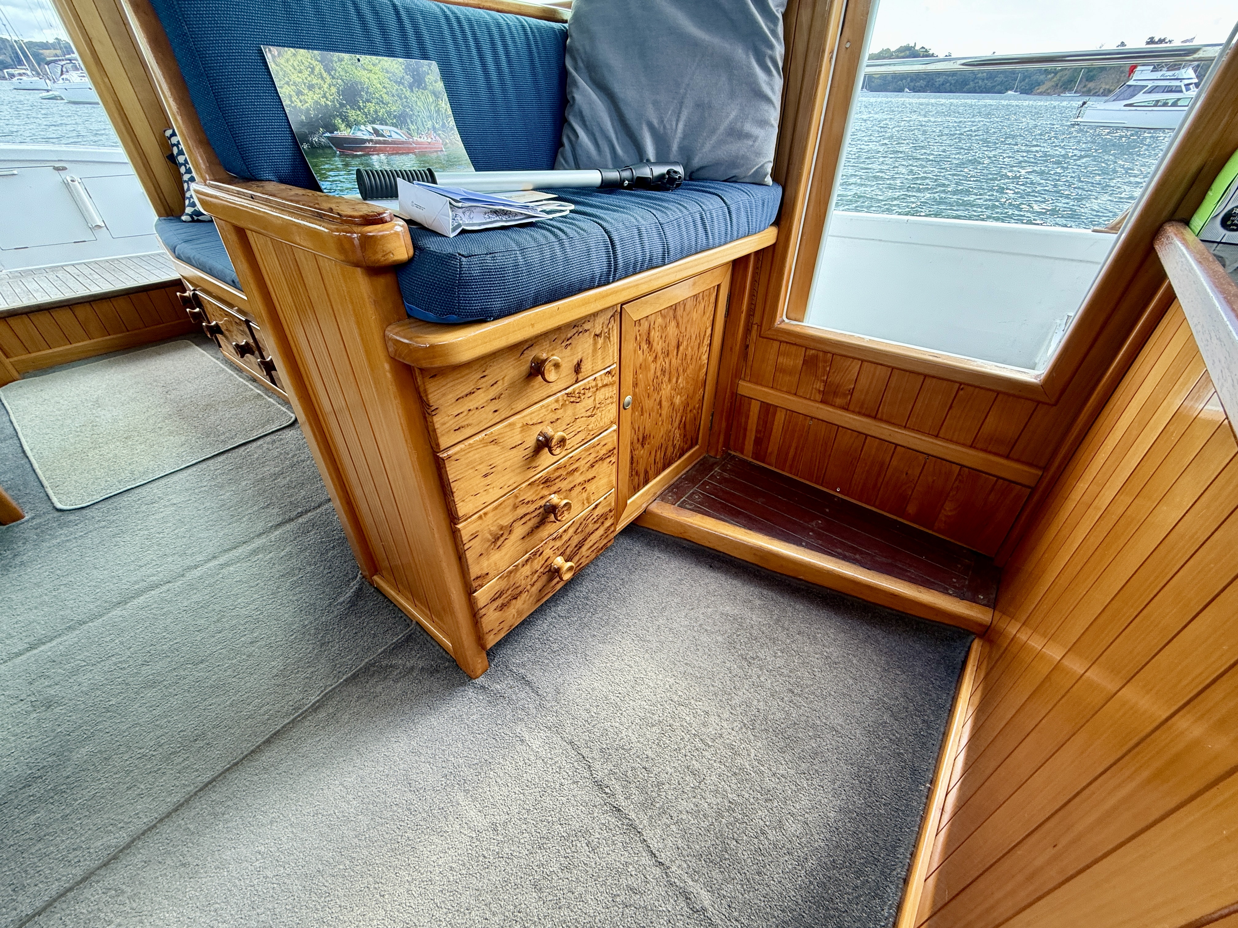 She was a very beamy boat for her time, around 14 ft 6 to 15 feet at least, with a huge volume, bridgedeck & being built in to the tuck (like REHIA as an example), with no cockpit, she was “all boat” inside, with her 2 x Ford V8s under the floor, at the tuck, with Vee drives.
