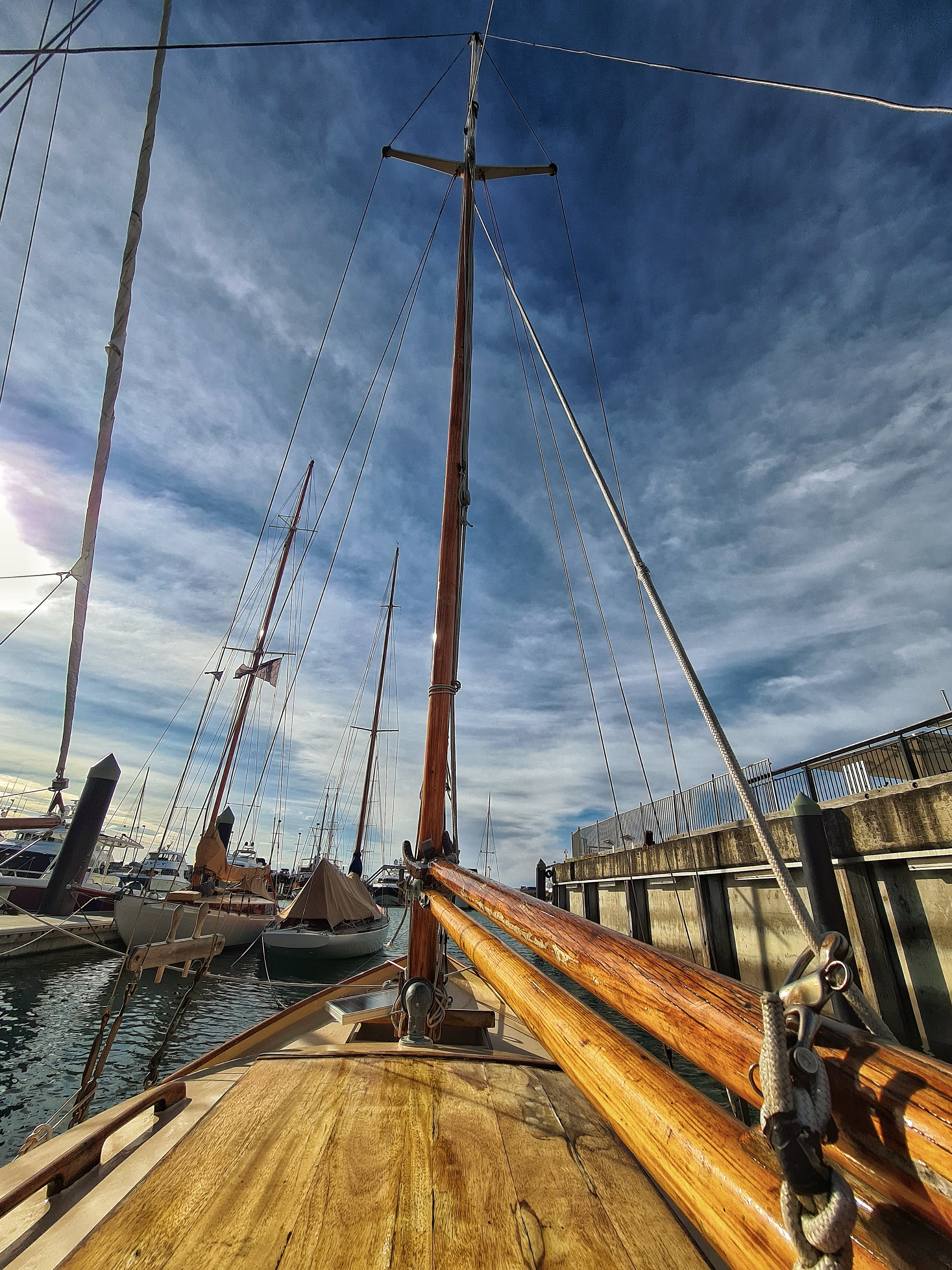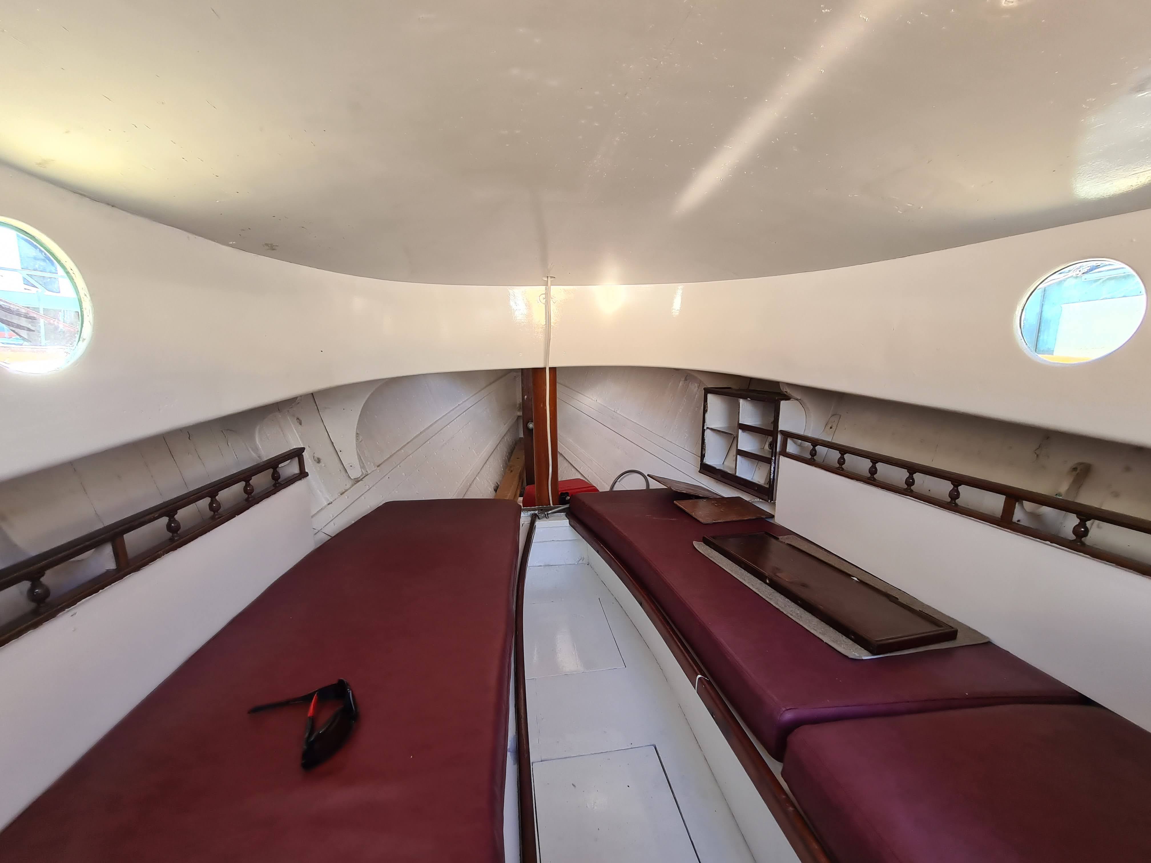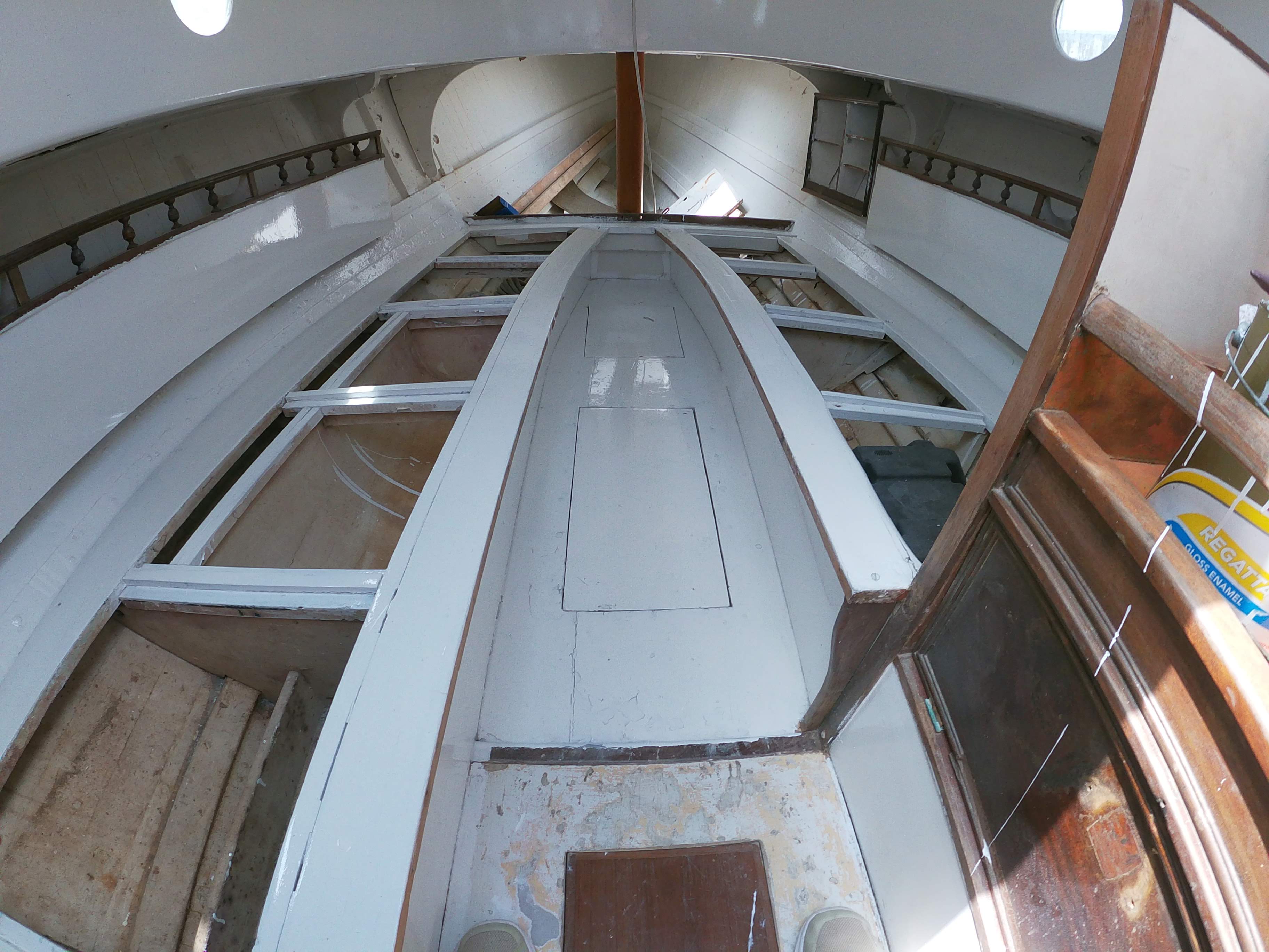 Noel was at the time working as a builder during the week, building his first home at the weekend and helping Hector with the rooving of the planks in his spare time. Frank would mark out where he wanted the copper nails driven into the planks, in a fashion that did not split or damage any of the grain. This was a slow and tedious process that was left to Hector and Noel. Frank would later inspect this process to ensure the nails were rooved perfectly smooth inside the hull. The construction took approximately 3 years, with input from Alex Baxter.