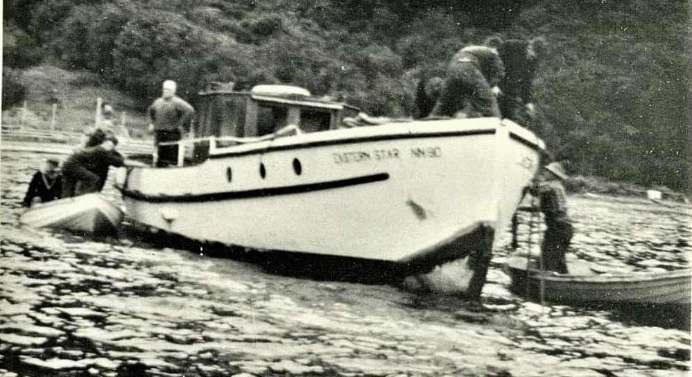 The Sandspit to Mansion House Bay Kawau ferry – MAIRE, was built by Roy Lidgard in his boat building shed at Smelting House Bay, Kawau, in the late 1940s for Allan Horsfall, owner of the Mansion House Guest House/Hotel. She was fitted with a 4-cylinder Kelvin Marine Diesel engine and was part of the ferry services to the island right up until the property was sold to the Historic Places Trust around 1977.