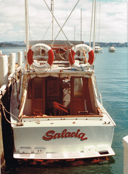 INPUT ex KEN RICKETTS – The boat is the SALACIA TOO. She lied at the Sandspit for many years & was named as she is, (or was originally), by the early owners as their first boat was called SALACIA. Photos of SALACIA TOO below (last three relate to – SALACIA)