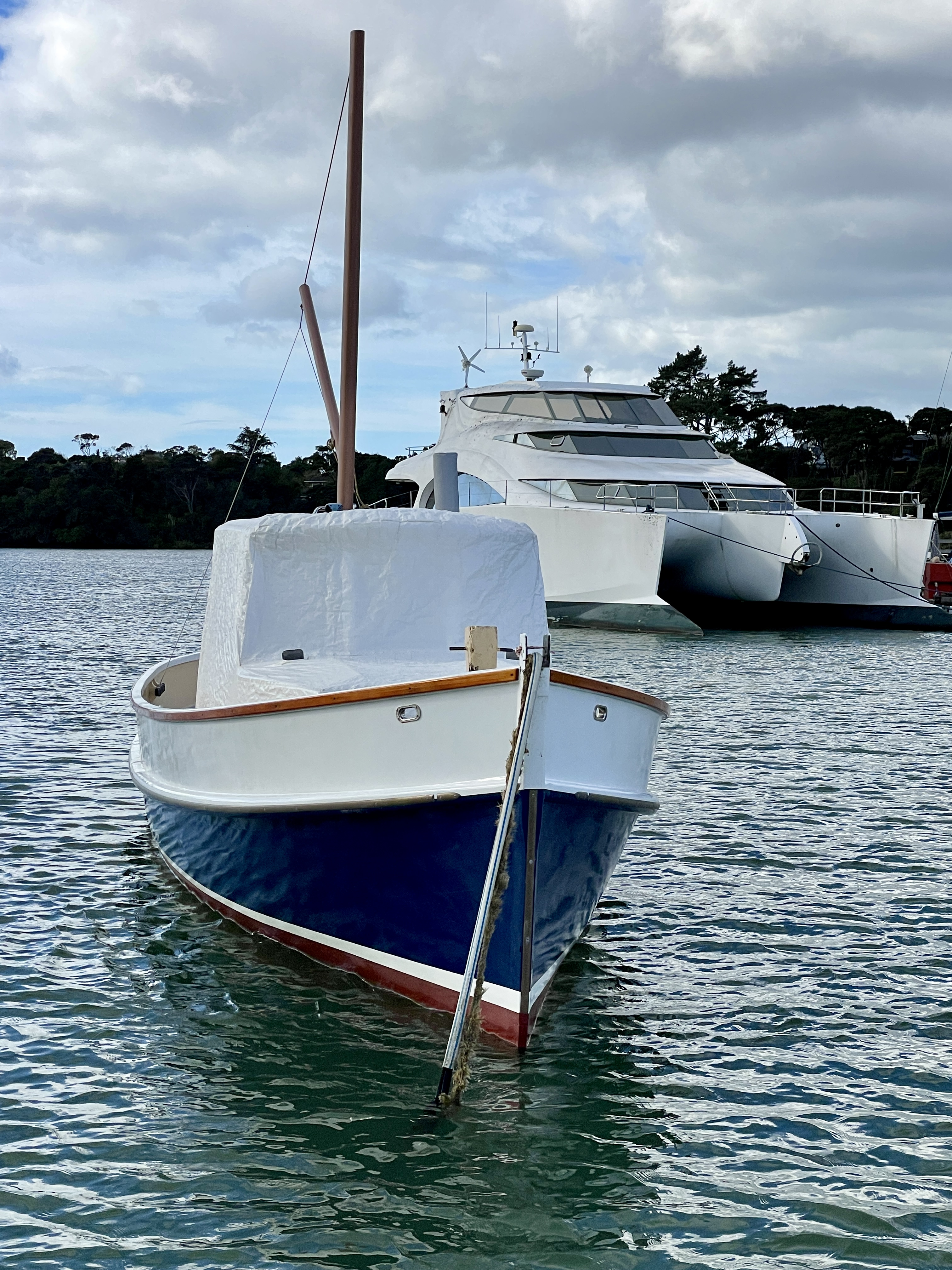 Today we get a peek down below. She is a solid old girl, 1-1/4” kauri carvel planked and powered by a 6 cyl. 100hp Ford Lees D series that give her a cruise speed of 7 knots. As Ian McDonald commented “crying out for a Gardner” 🙂