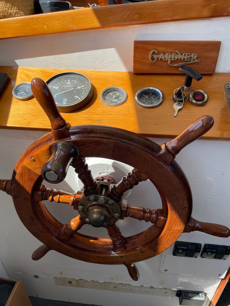 A STORY FOR THE ENGINE HEADS Over the break two diehard woodys sent in some photos of what a lot of woody boaties consider to be the holy-grail to marine propulsion – Gardner engines.The top 3 photos shows classic yachty – David Glen standing alongside the Gardner 6L3 in the ex workboat – Faith. Link below to uncover more on her. https://waitematawoodys.com/2019/04/06/faith-the-milford-slipway-opens/ In the second group of photos (ex Angus Rogers – MV Centaurus ) we see the Gardner 4LW in Dean Wright’s woody – Arethusa, nice wheelhouse too – again WW link below for an insight into the repower. Also lots more to read / view on Arethusa by using the WW search box. https://waitematawoodys.com/2017/12/31/restoring-installing-a-gardner-in-arethusa-revisited/