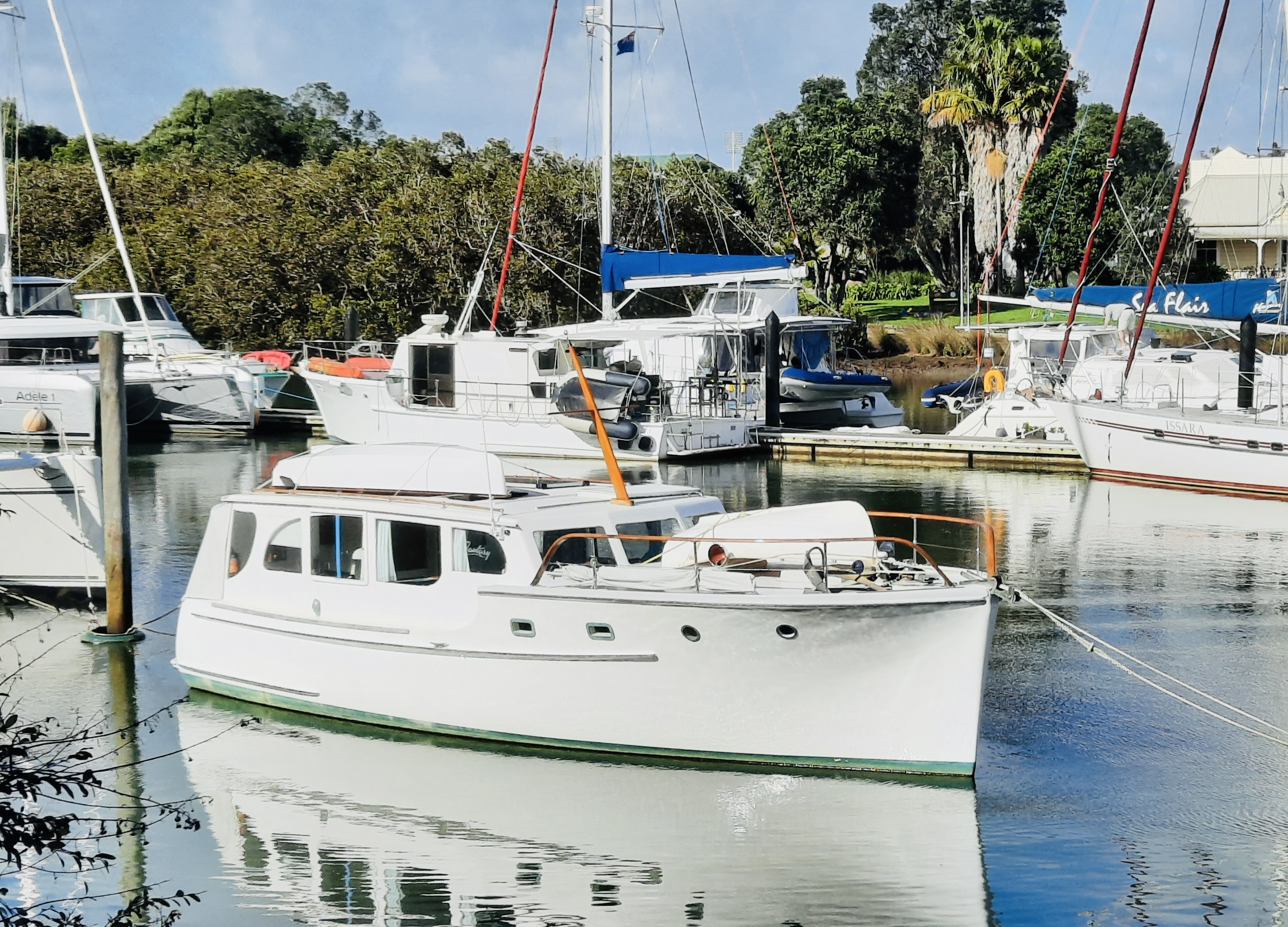 Built in 1952 by Mac McGeady for Colin Lannam. Ken believes that she was built on the basis of Lannam’s first boat, Lady Dianna e.g. McGeady built the hull & cabin then Lannam finished the interior. Ken commented that Lannam had masterful cabinet making skills.